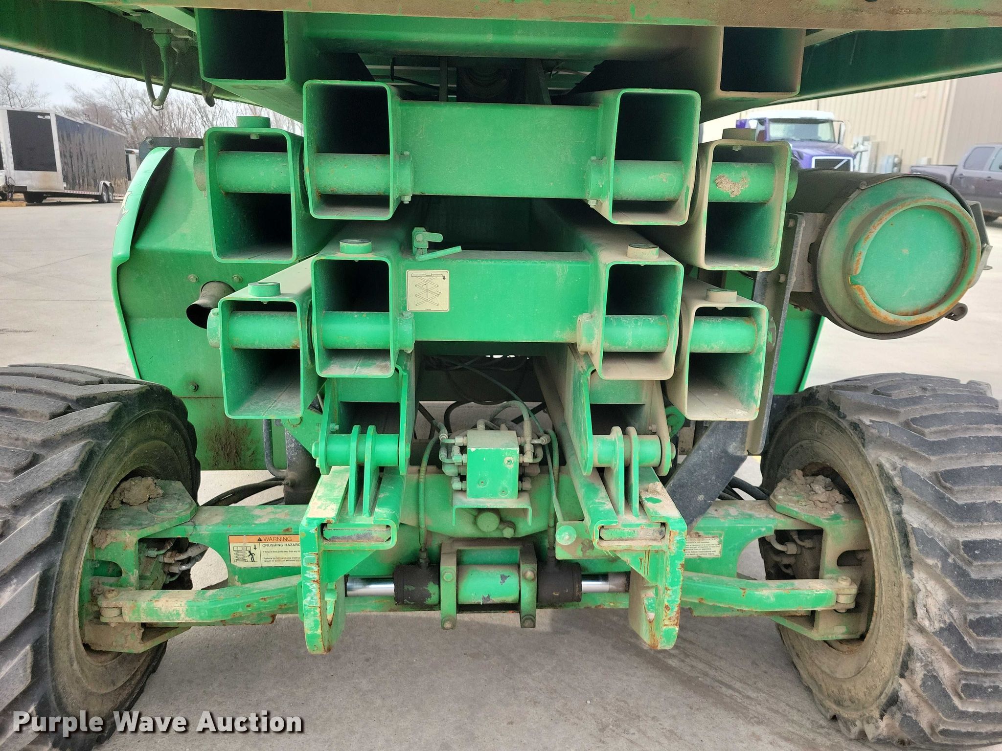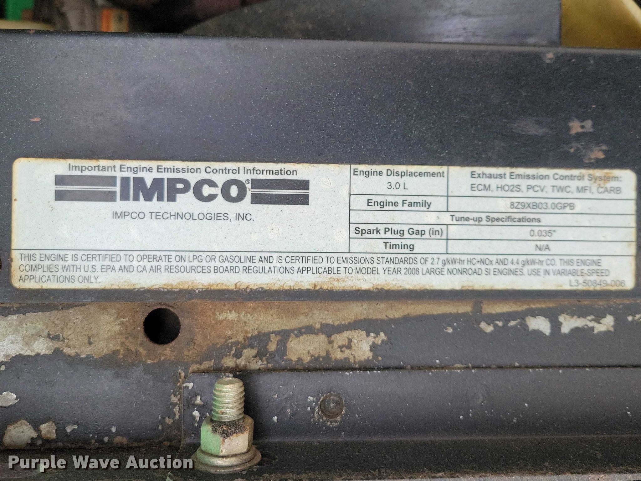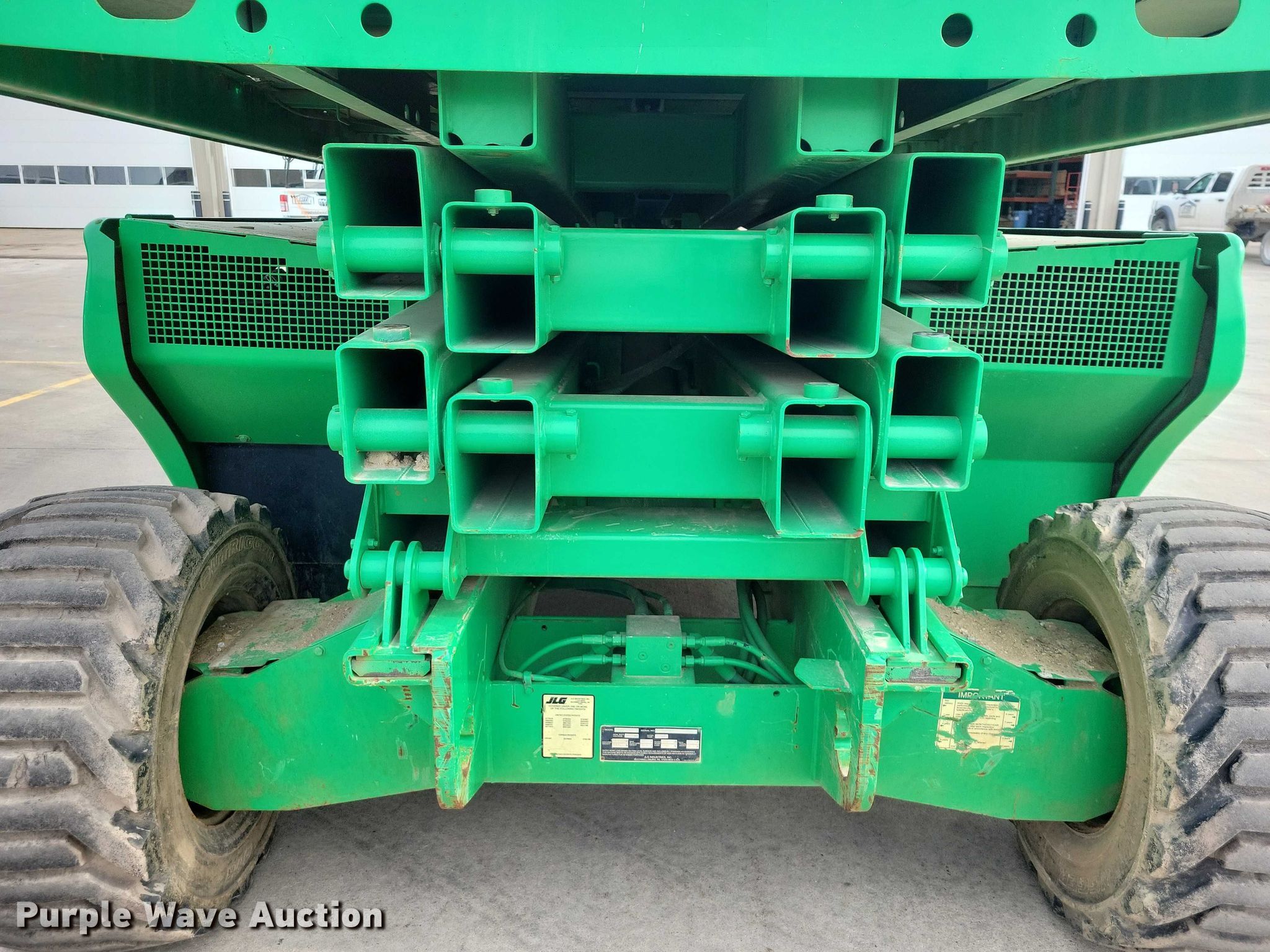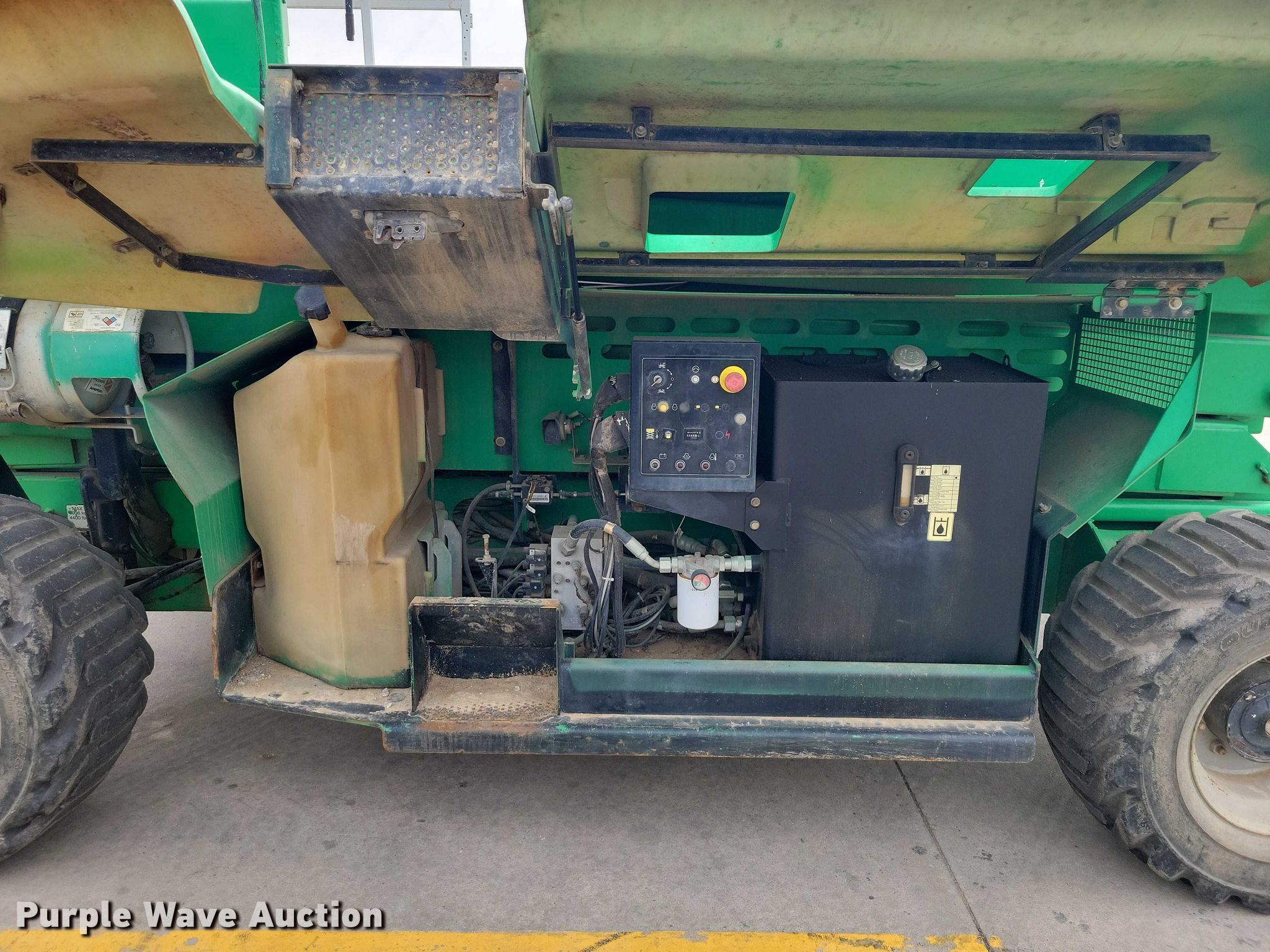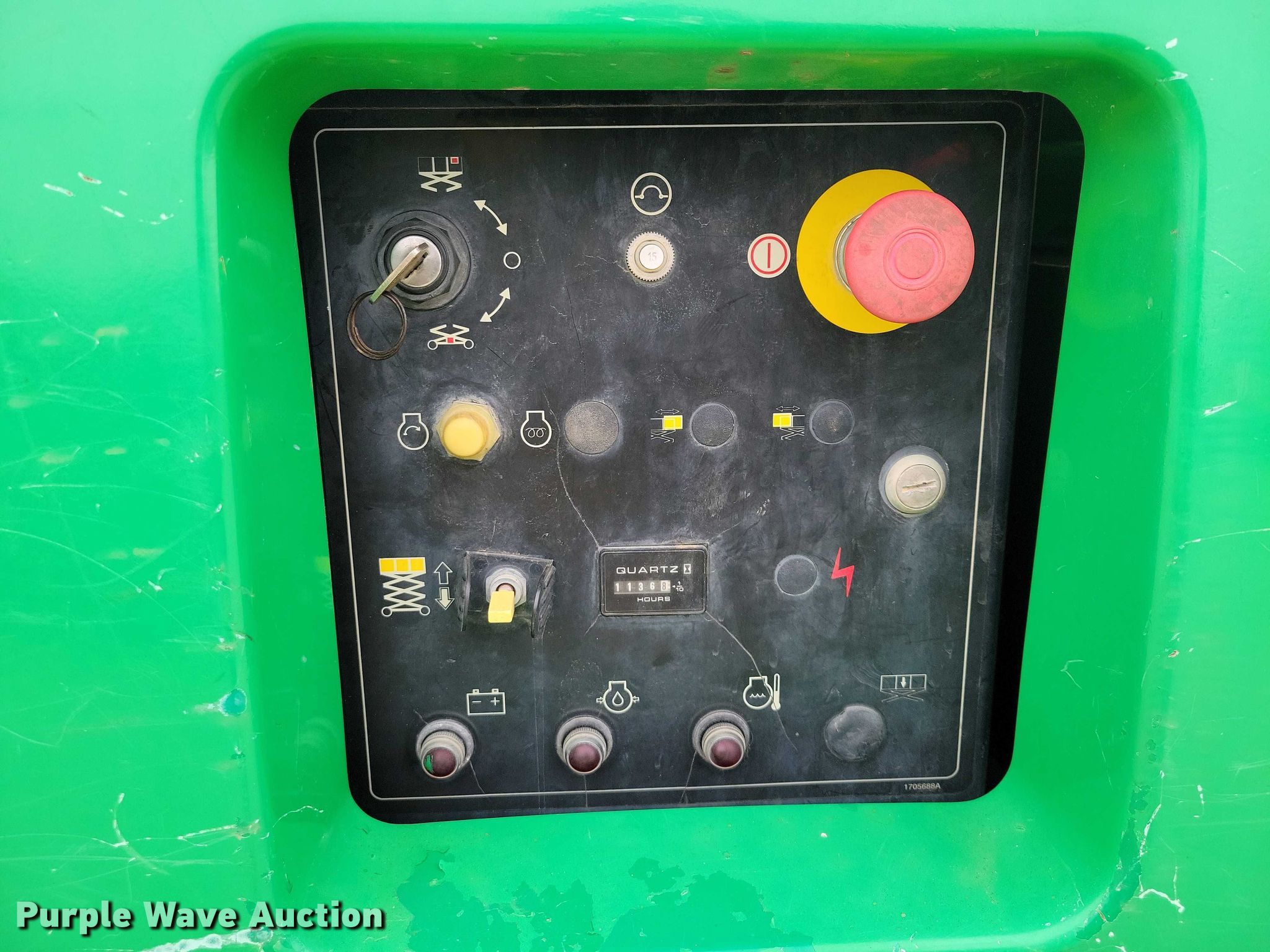 2009 JLG 3394RT scissor lift. Hours: 1,136 on meter, Serial: 0200191471. Engine Impco, Displacement: 3.0L, Cylinders: 4, Fuel type: Dual fuel LP bottle: Included. Chassis Four wheel drive. Features Rough terrain, Boom type: Telescopic, Maximum lift capacity: 2,250 lbs, Maximum lift height: 33', Hydraulic leveling, Platform: 164" L x 86" W, AC power outlet, Controls: Platform, Ground, Platform extensions: Manual. Tires Tire size: 33X15.5-16.5NHS. Notes Platform extension issues, sticks. Eastern Iowa Buildng, Inc.. Fairfax, IA 52228