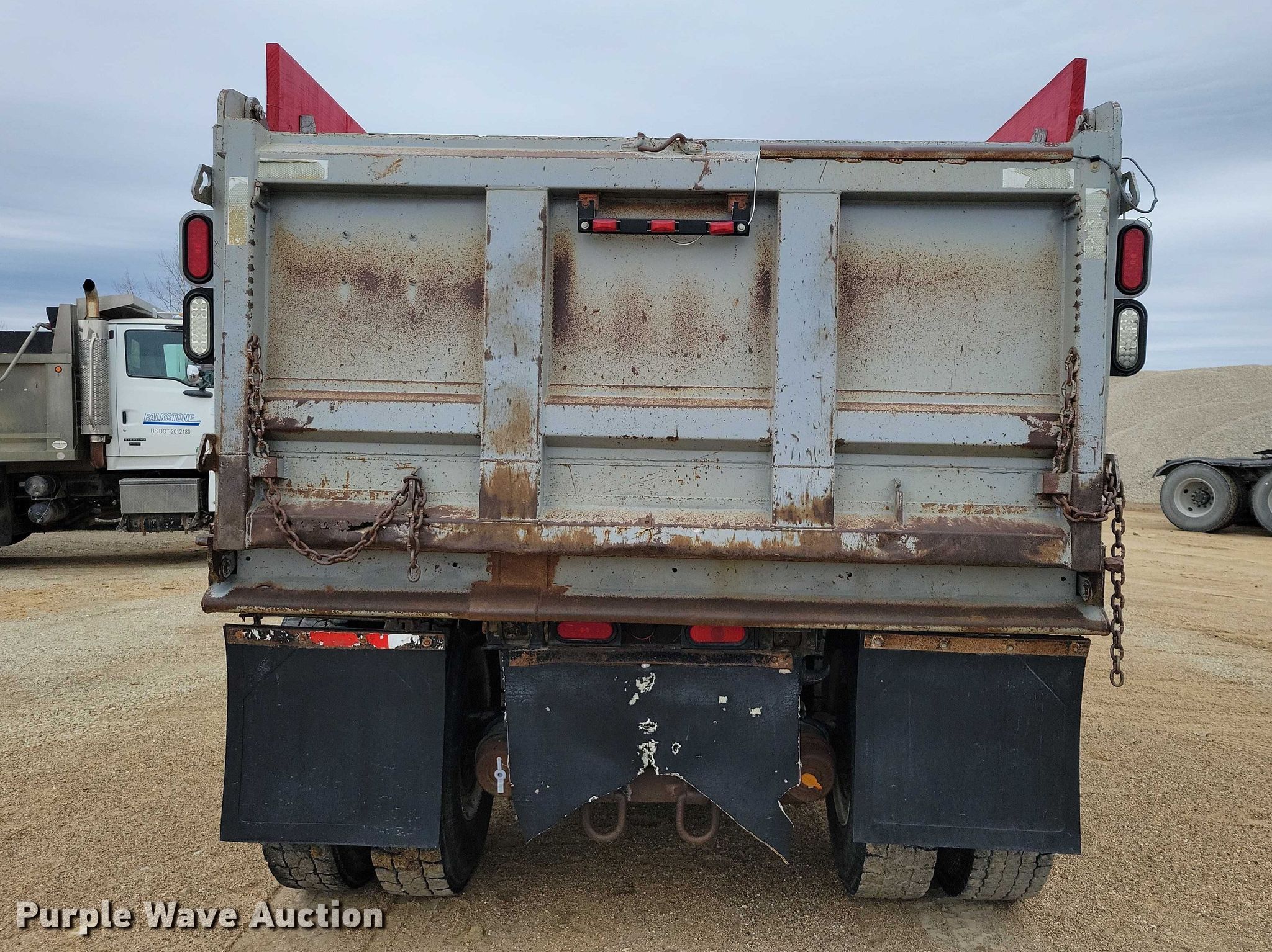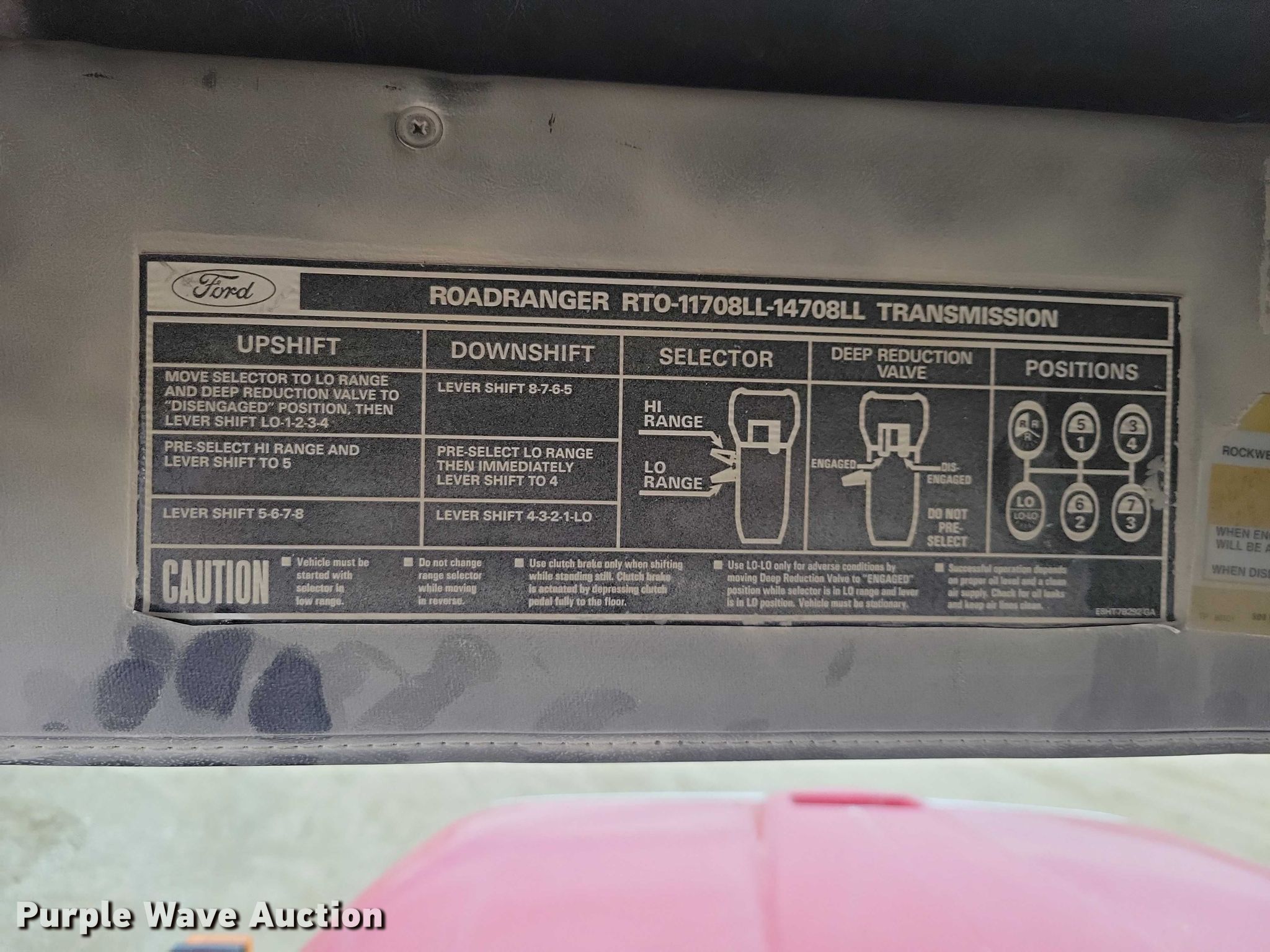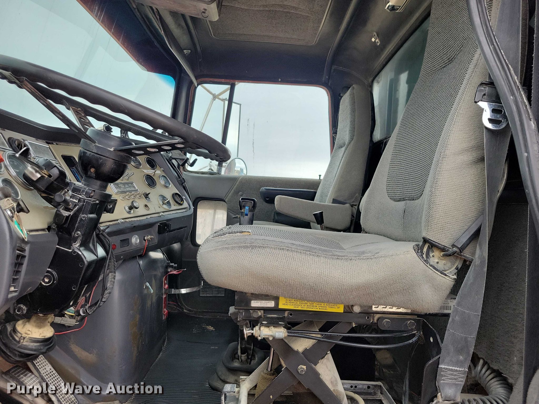 1994 Ford LT9000 dump truck. Miles: 433,073 on odometer, VIN: 1FDZU90S2RVA50010, Unit #: F68. Engine Caterpillar 3176, Displacement: 10.0L, Cylinders: 6, Fuel type: Diesel. Transmission Eaton Fuller Roadranger 8LL, Manual. Chassis Axles: Triple, Pusher axle Steerable, Differential lock: Inter-axle, Suspension: Spring over walking beam, Brakes: Air, PTO, GVWR: 58,000 lbs FAWR: 18,000 lbs, IAWR: 20,000 lbs, RAWR: 20,000 lbs, Lift axle GAWR: 11,000 lbs. Interior AC, Heat, Heated mirrors, Cruise control. Features Bed Dump bed, Length: 15', Width: 96", Side height: 40", Side board height: 12", Bed type: Steel, Ram: Single, End gate: Air operated. Tires Front: 385/65R22.5, Rear: 11R22.5, Lift axle: 255/70R22.5. Notes Non-operational AC AC belt removed. Iowa title. Title distribution may be delayed up to 14 days from verification of funds. L. R. Falk Construction. St. Ansgar, IA 50472