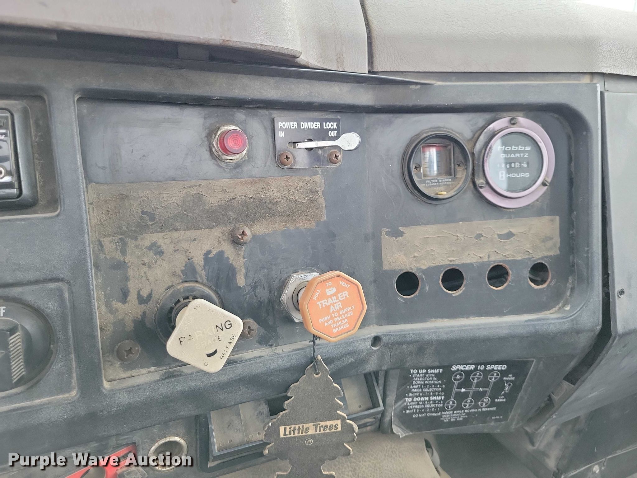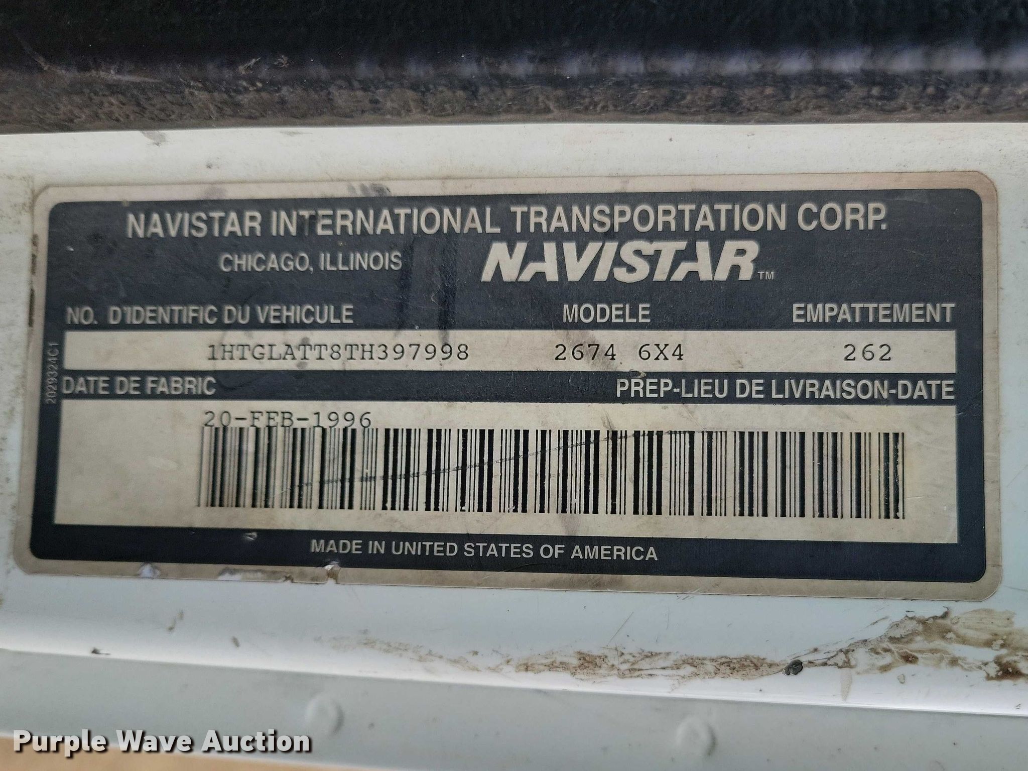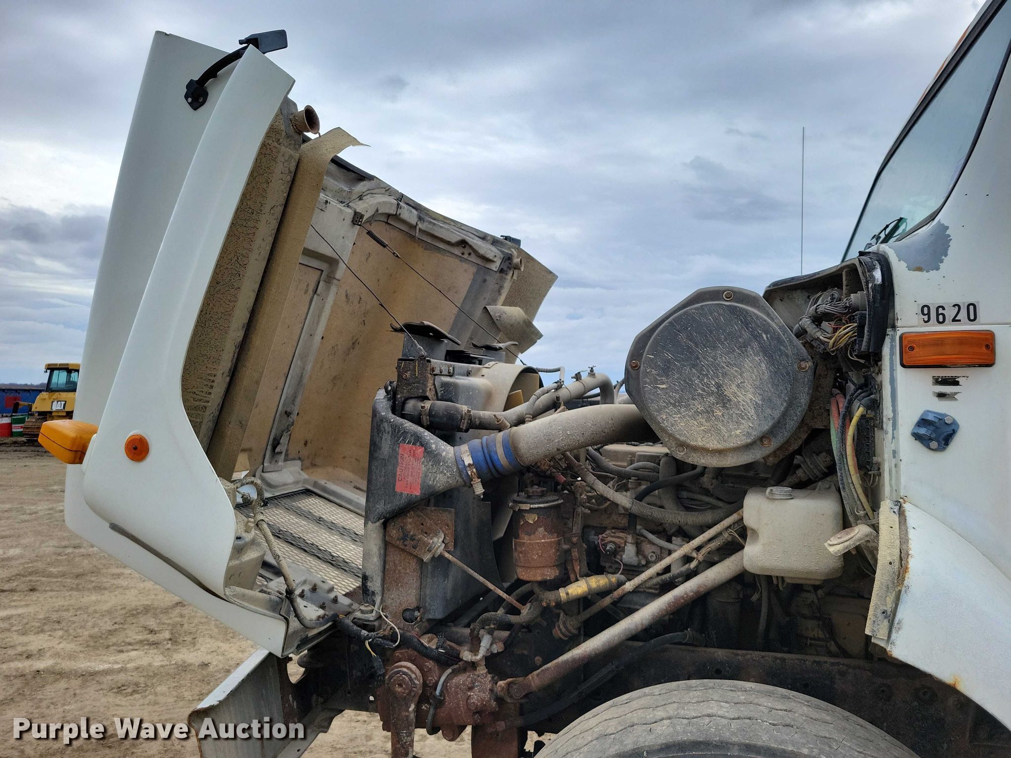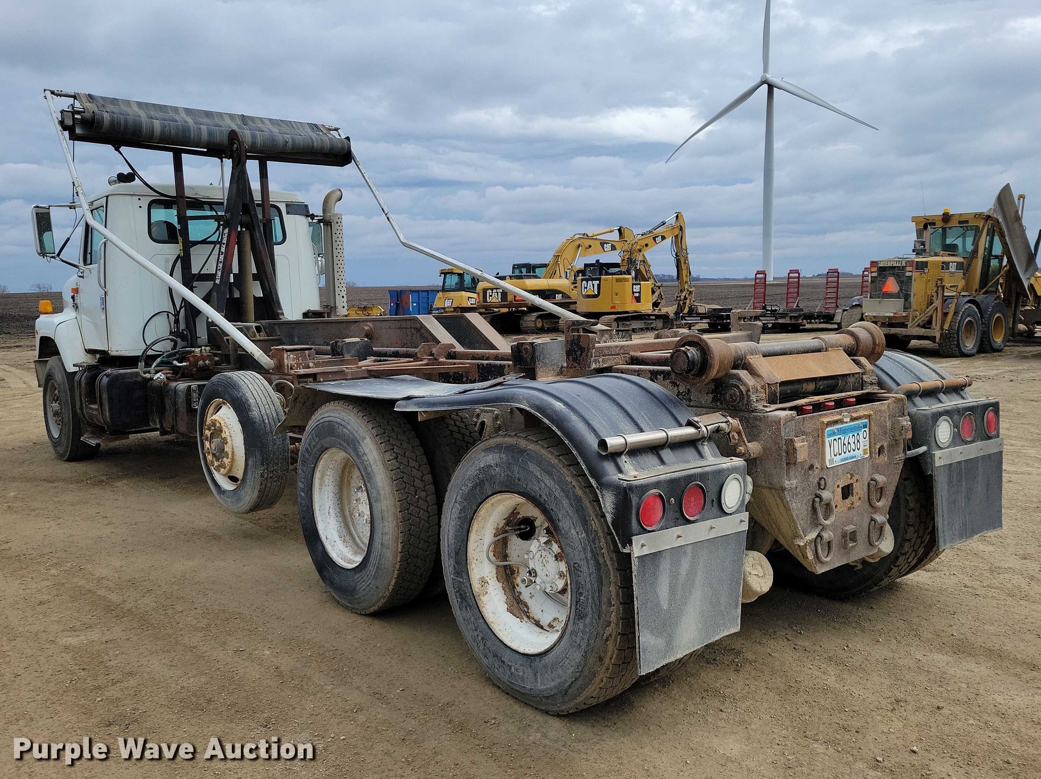 1996 International F-2674 hook lift truck. Miles: 147,095 on odometer, Miles or hours may vary, unit still in use, VIN: 1HTGLATT8TH397998. Engine Caterpillar, Cylinders: 6, Fuel type: Diesel. Transmission Spicer, Manual, Speed: 10. Chassis Axles: Triple, Pusher axle, Differential lock: Inter-axle, Suspension: Spring over walking beam, Brakes: Air, PTO. Interior Heat, Heated mirrors, Cruise control. Features Bed Hook lift bed, Length: 19' 8", Ram: Single, Roll tarp. Tires Front: 315/80R22.5, Rear: 11R22.5, Lift axle: 255/70R22.5. Minnesota title. Title distribution may be delayed up to 14 days from verification of funds. Bustad Dozing & Excavating Inc... Taopi, MN 55977