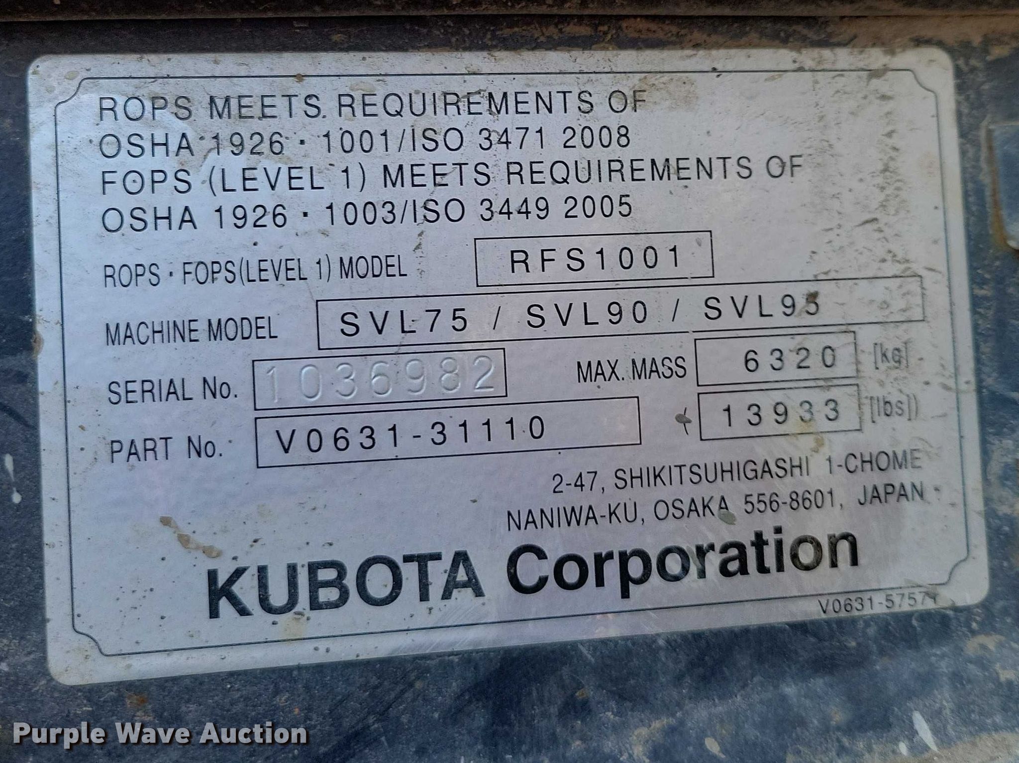 Purple Wave is selling a used Tracked Skid Steer Loader in Iowa. This item is a 2019 Kubota SVL 95-2S tracked skid steer loader with the following: Hours: 3,289 on meter, Miles or hours may vary, unit still in use, Serial: KBCCO963CK1E47114