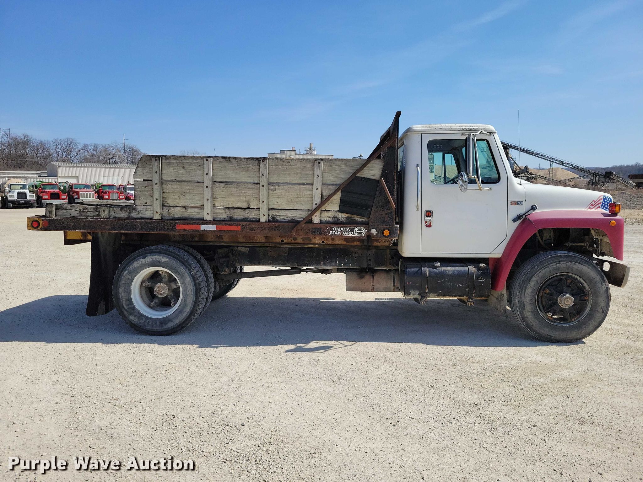 1987 International S1900 flatbed truck. Miles: 285,077 on odometer, Hours: 2,475 on meter, VIN: 1HTLDTVN0HHA11316. Engine International DT466, Displacement: 7.6L, Cylinders: 6, Fuel type: Diesel. Transmission Manual, Speed: 5, plus 2. Chassis Axles: Single, Suspension: Spring, Brakes: Air, PTO, Wheelbase: 236". Interior Heat. Features Bed Flatbed, Omaha Standard, Length: 14', Width: 96". Tires Size: 11R22.5. Iowa title. Title distribution may be delayed up to 14 days from verification of funds. Bruening Rock Products, Inc.. Decorah, IA 52101
