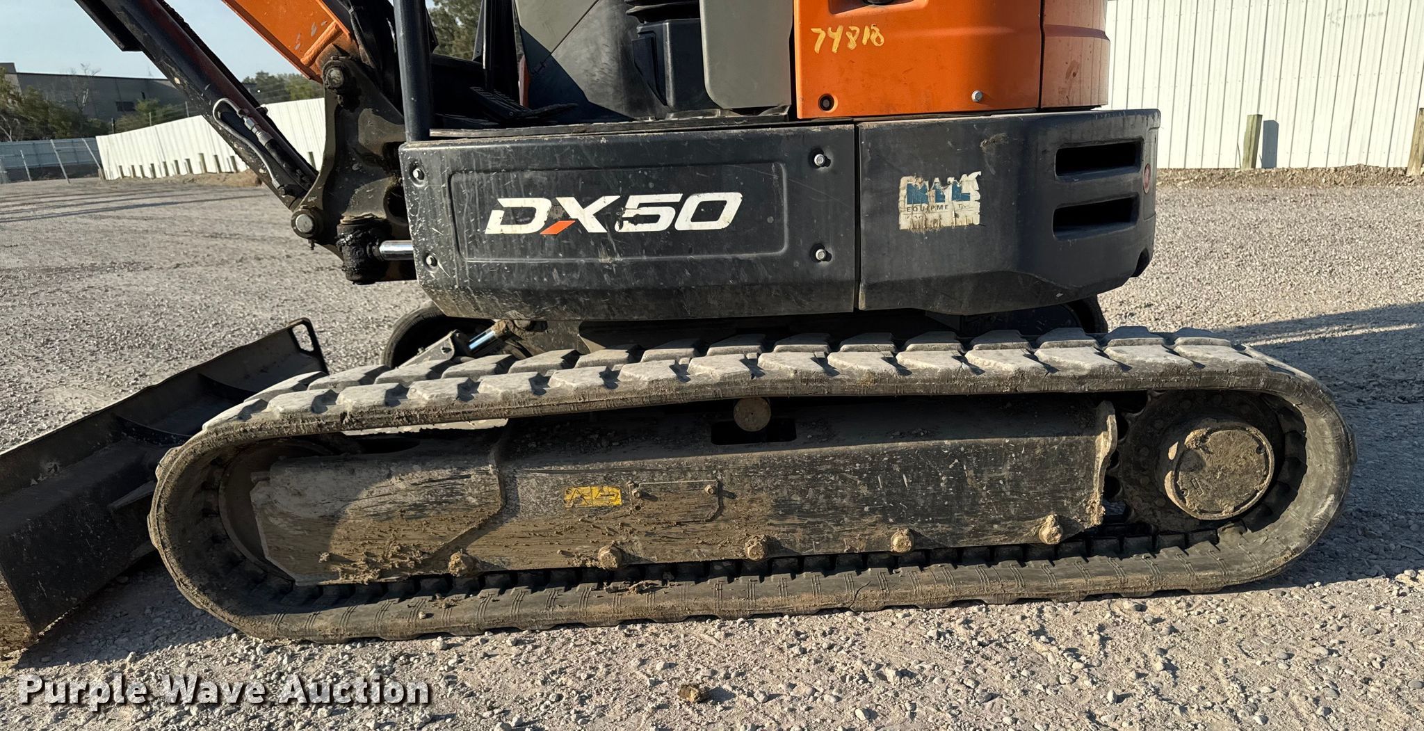 Purple Wave is selling a used Mini Excavator in Iowa. This item is a 2020 Doosan DX50 mini excavator with the following: Hours: 2,481 on meter, Serial: DBMB4WYJLK0011104, Unit #: 84768605