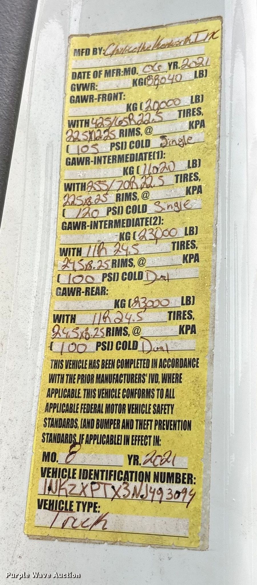 Purple Wave is selling a used Construction Dump Truck in North Carolina. This item is a 2022 Kenworth T880 dump truck with the following: Miles: 109,879 on odometer, Miles: Actual unknown, VIN: 1NKZXPTX3NJ493094, Unit #: 98814405