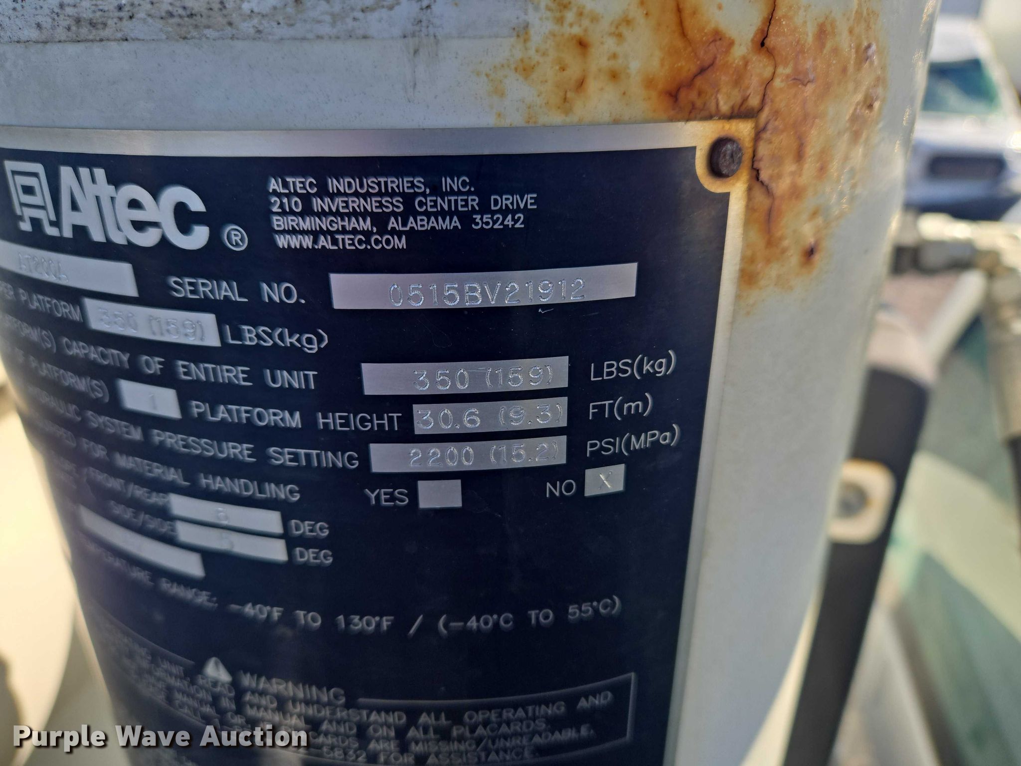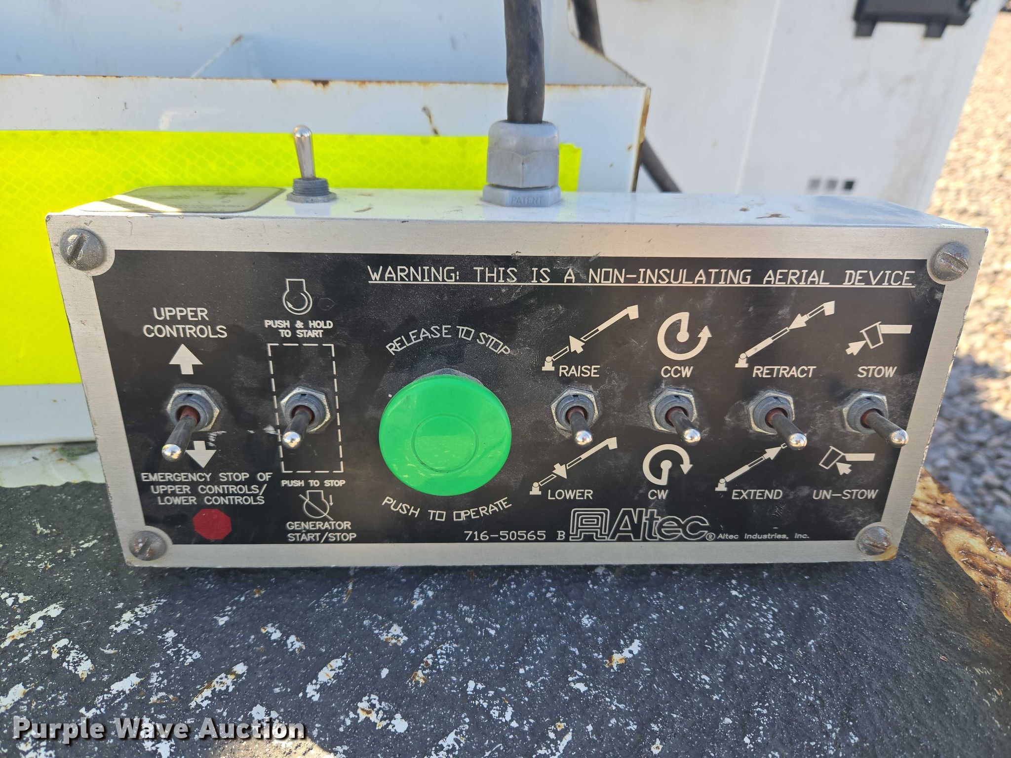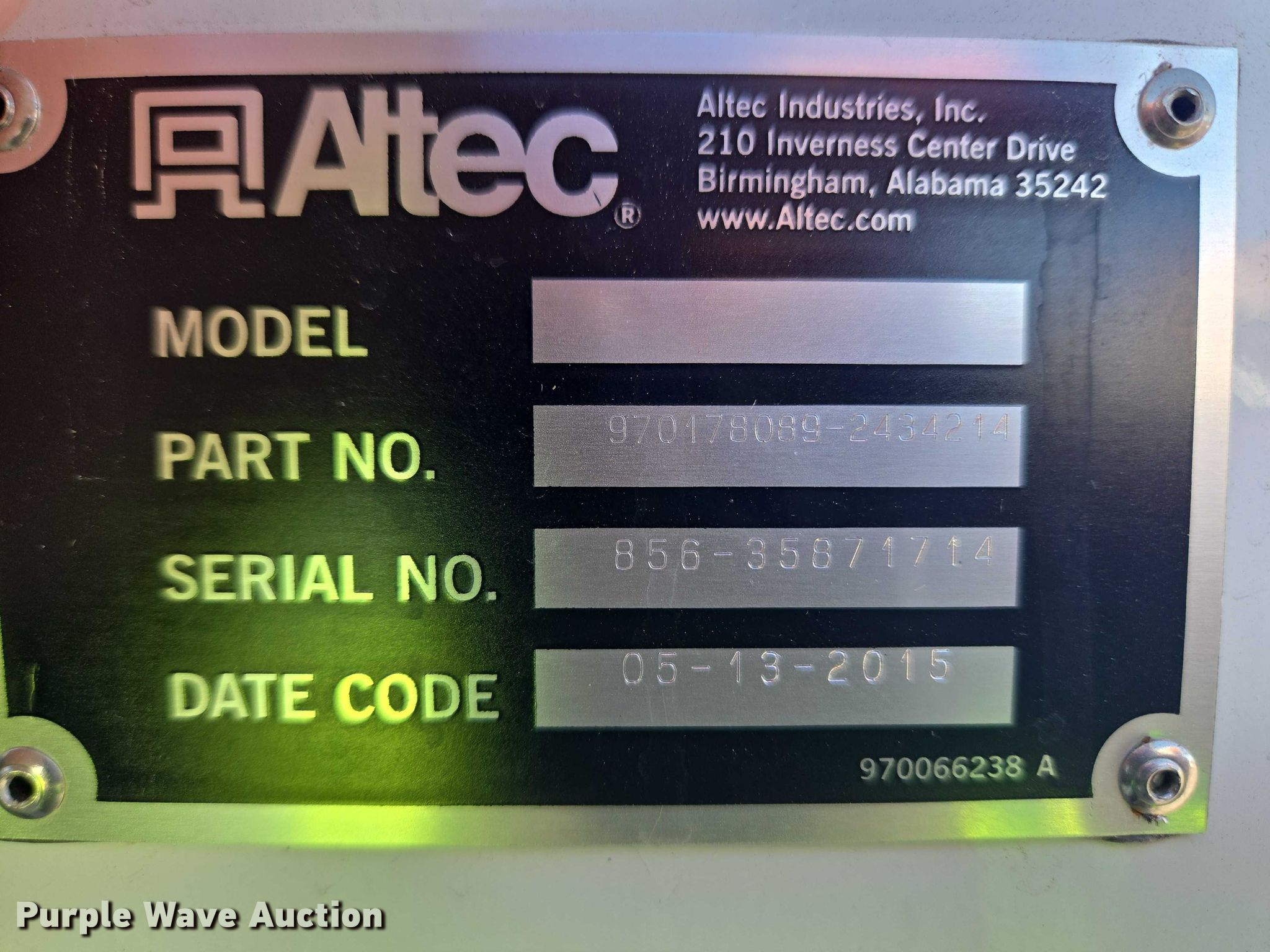2015 Ford F450 Super Duty bucket truck. Miles: 194,092 on odometer, VIN: 1FDUF4GY1FEC92882, Unit #: 61363505. Engine Ford, Displacement: 6.8L, Cylinders: 10, Fuel type: Gas. Transmission Automatic. Chassis Axles: Single, Suspension: Spring, Brakes: Hydraulic, GVWR: 16,500 lbs. Interior AC, Heat, Cruise control, Backup camera, Auxiliary controls, Brake controller. Features Bed Utility bed, Altec, Serial: 856-35871714, Length: 13', Width: 7' 10", Engine Cummins Onan 7HGJAD-2560J, Serial: D150818256, Fuel: Gas, kW: 7, Boom Altec AT200A, Serial: 0515BV21912, Maximum lift capacity: 350 lbs, Maximum lift height: 30.6', Boom type: Articulating, Telescopic, Man basket, Boom controls Lower, Basket.. Tires Size: 225/70R19.5. Notes Unknown operating condition of boom. Telecom fleet inventory reduction, stored at a secured facility. Please review REQUIRED REMOVAL INSTRUCTIONS. Titles will be distributed after confirmation of payment and removal. Indiana title. Title distribution may be delayed up to 30 days from verification of funds. Telecom Fleet Inventory Reduction. 1461 East 226th Street. Cicero, IN 46034