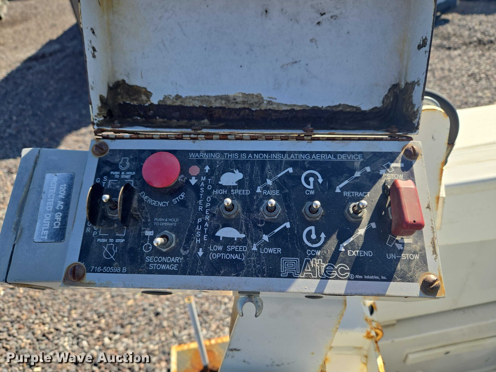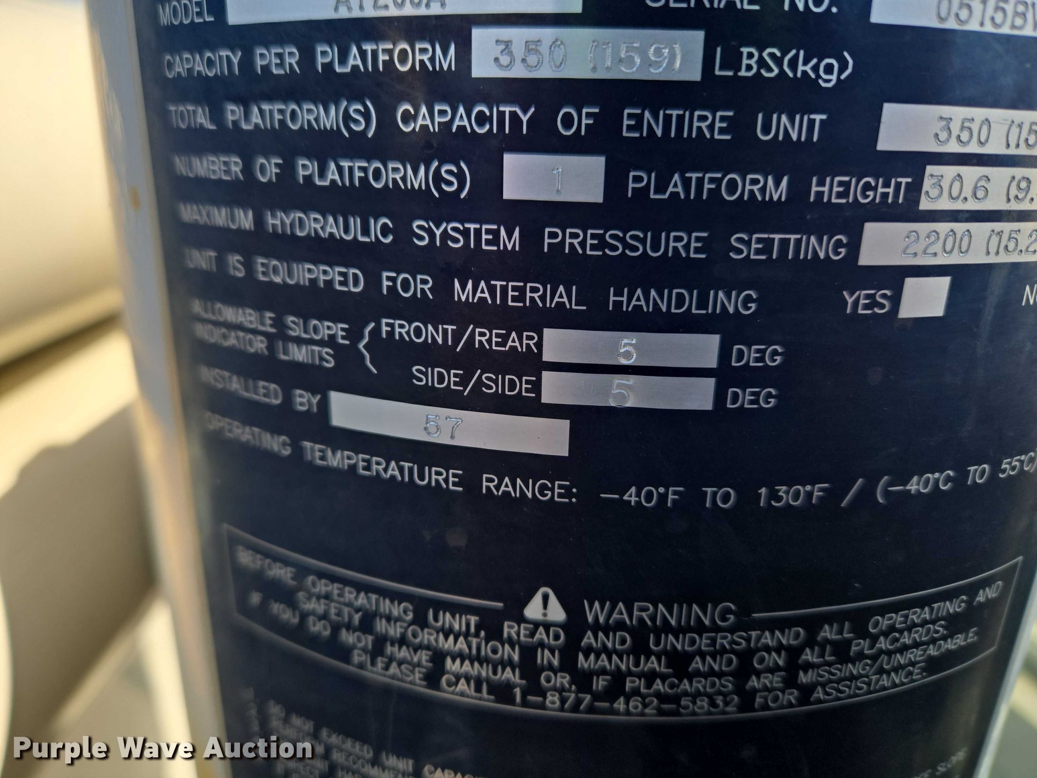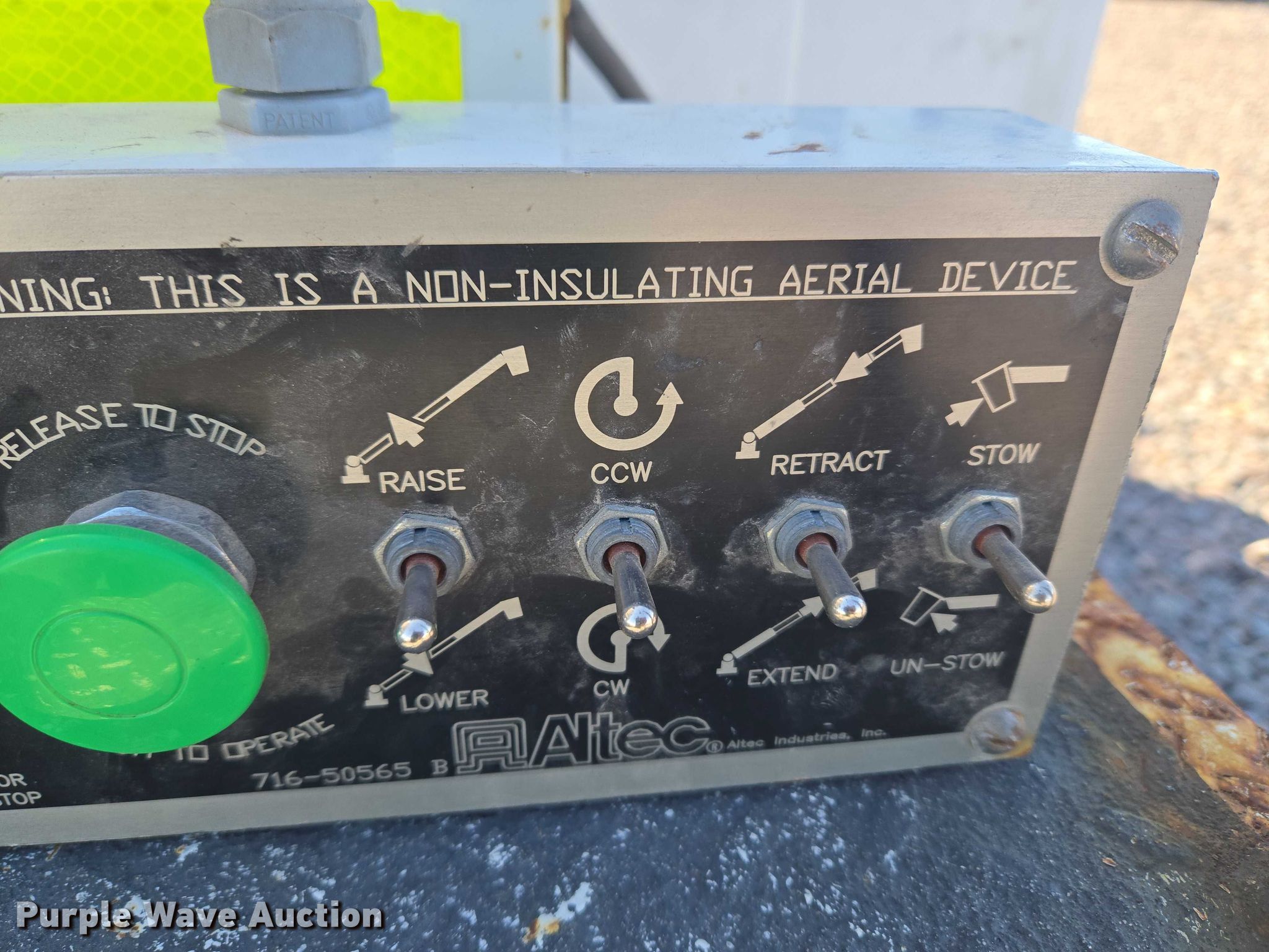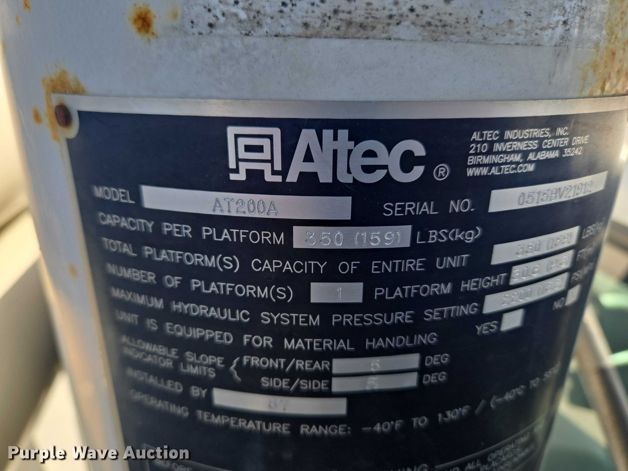 2015 Ford F450 Super Duty bucket truck. Miles: 194,092 on odometer, VIN: 1FDUF4GY1FEC92882, Unit #: 61363505. Engine Ford, Displacement: 6.8L, Cylinders: 10, Fuel type: Gas. Transmission Automatic. Chassis Axles: Single, Suspension: Spring, Brakes: Hydraulic, GVWR: 16,500 lbs. Interior AC, Heat, Cruise control, Backup camera, Auxiliary controls, Brake controller. Features Bed Utility bed, Altec, Serial: 856-35871714, Length: 13', Width: 7' 10", Engine Cummins Onan 7HGJAD-2560J, Serial: D150818256, Fuel: Gas, kW: 7, Boom Altec AT200A, Serial: 0515BV21912, Maximum lift capacity: 350 lbs, Maximum lift height: 30.6', Boom type: Articulating, Telescopic, Man basket, Boom controls Lower, Basket.. Tires Size: 225/70R19.5. Notes Unknown operating condition of boom. Telecom fleet inventory reduction, stored at a secured facility. Please review REQUIRED REMOVAL INSTRUCTIONS. Titles will be distributed after confirmation of payment and removal. Indiana title. Title distribution may be delayed up to 30 days from verification of funds. Telecom Fleet Inventory Reduction. 1461 East 226th Street. Cicero, IN 46034
