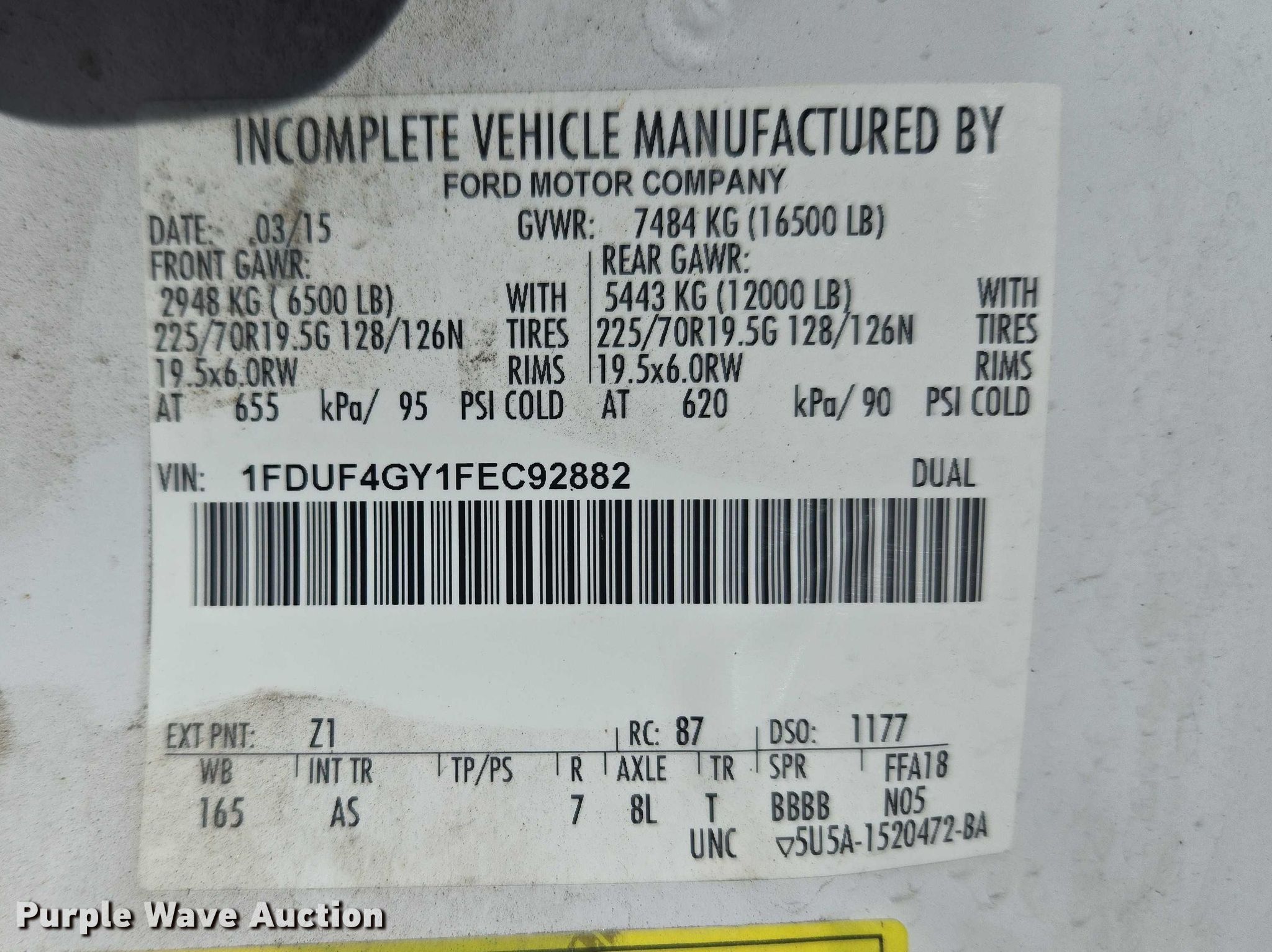 Purple Wave is selling a used Bucket Truck in Indiana. This item is a 2015 Ford F450 Super Duty bucket truck with the following: Miles: 194,092 on odometer, VIN: 1FDUF4GY1FEC92882, Unit #: 61363505