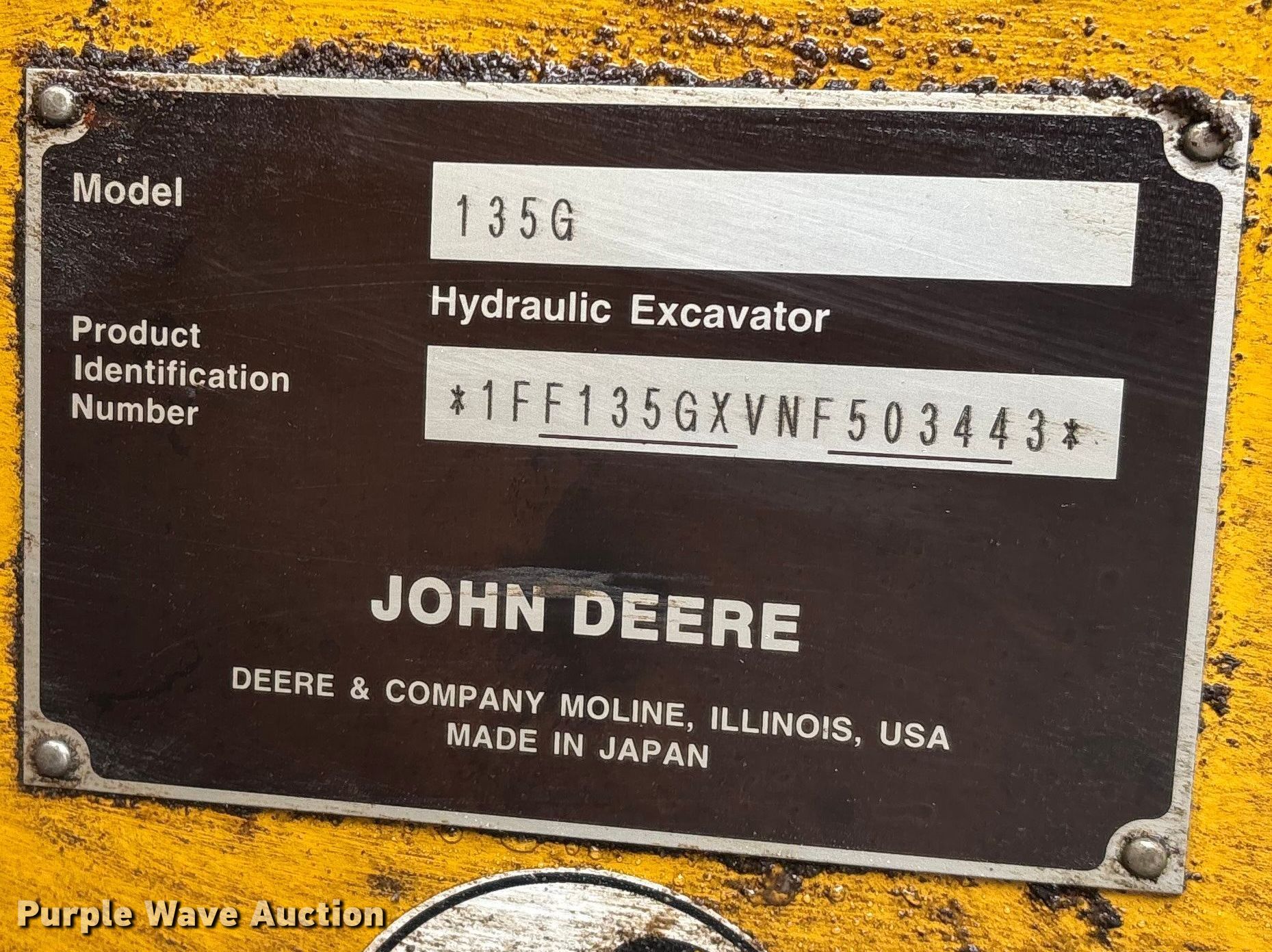 Purple Wave is selling a used Hydraulic Excavator in Michigan. This item is a 2022 John Deere 135G excavator with the following: Hours: 1,906 on meter, Serial: 1FF135GXVNF503443, Unit #: 78815195