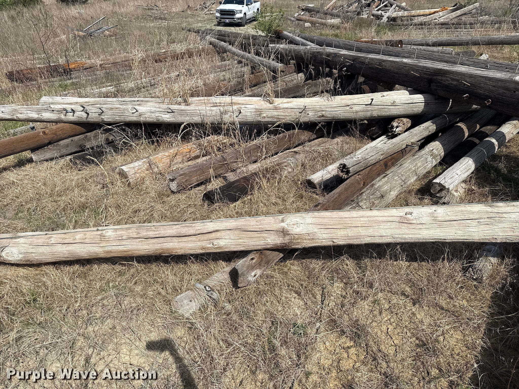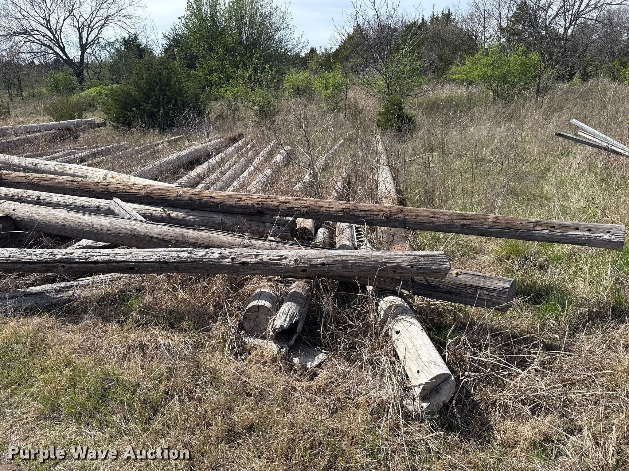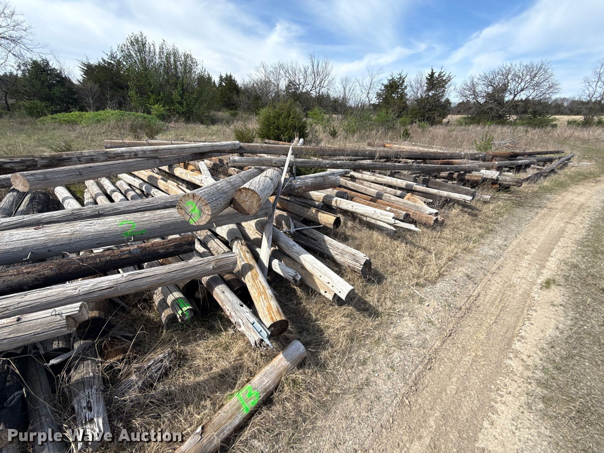 Approximately 75 electric poles for sale in Cushing, Oklahoma. Item DR1057 will sell on April 28th, 2026.