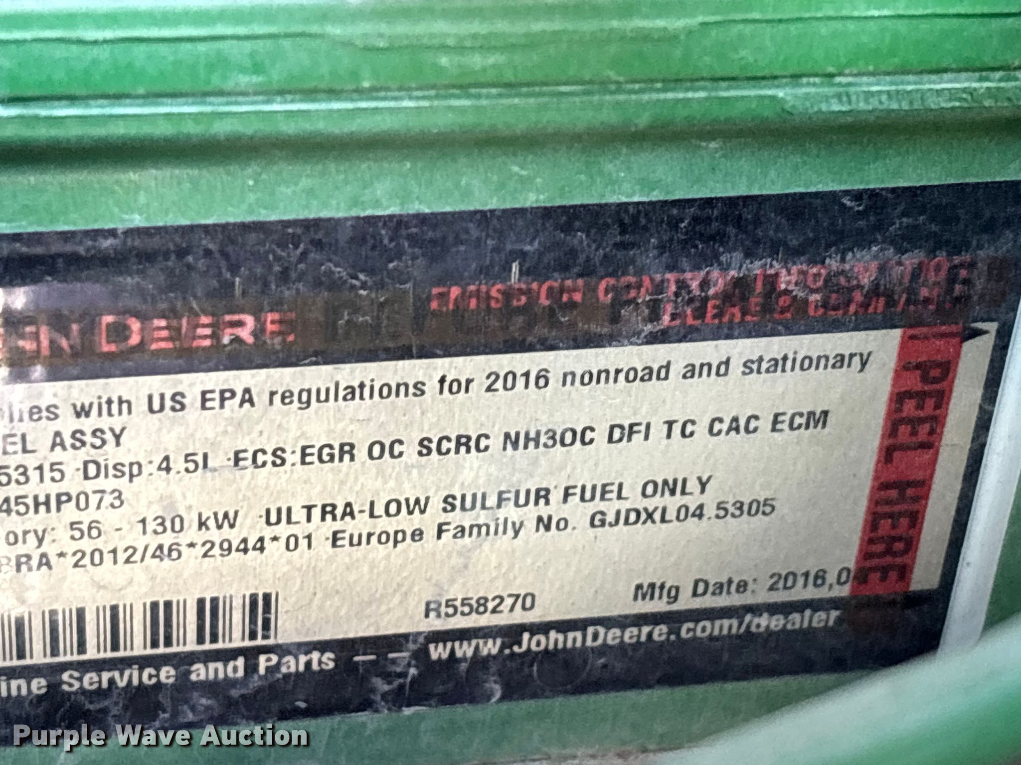 2014 John Deere 6105E tractor. Hours: 4,258 on meter, Miles or hours may vary, unit still in use, Serial: 1P06105EEG0001658. Engine John Deere, Displacement: 4.5L, Cylinders: 4, Fuel type: Diesel. Transmission Powershift, 12F - 12R, Left-hand reverser, Differential lock. Operators station AC, Heat. Features PTO: 540, Three point, Seven pin outlet, Hydraulic remote sets Rear: 3. Tires Front: 10.00-16, Rear: 460/85R34, Wheel weights: 2. Livingston Co. Fiscal Court. Smithland, KY 42081
