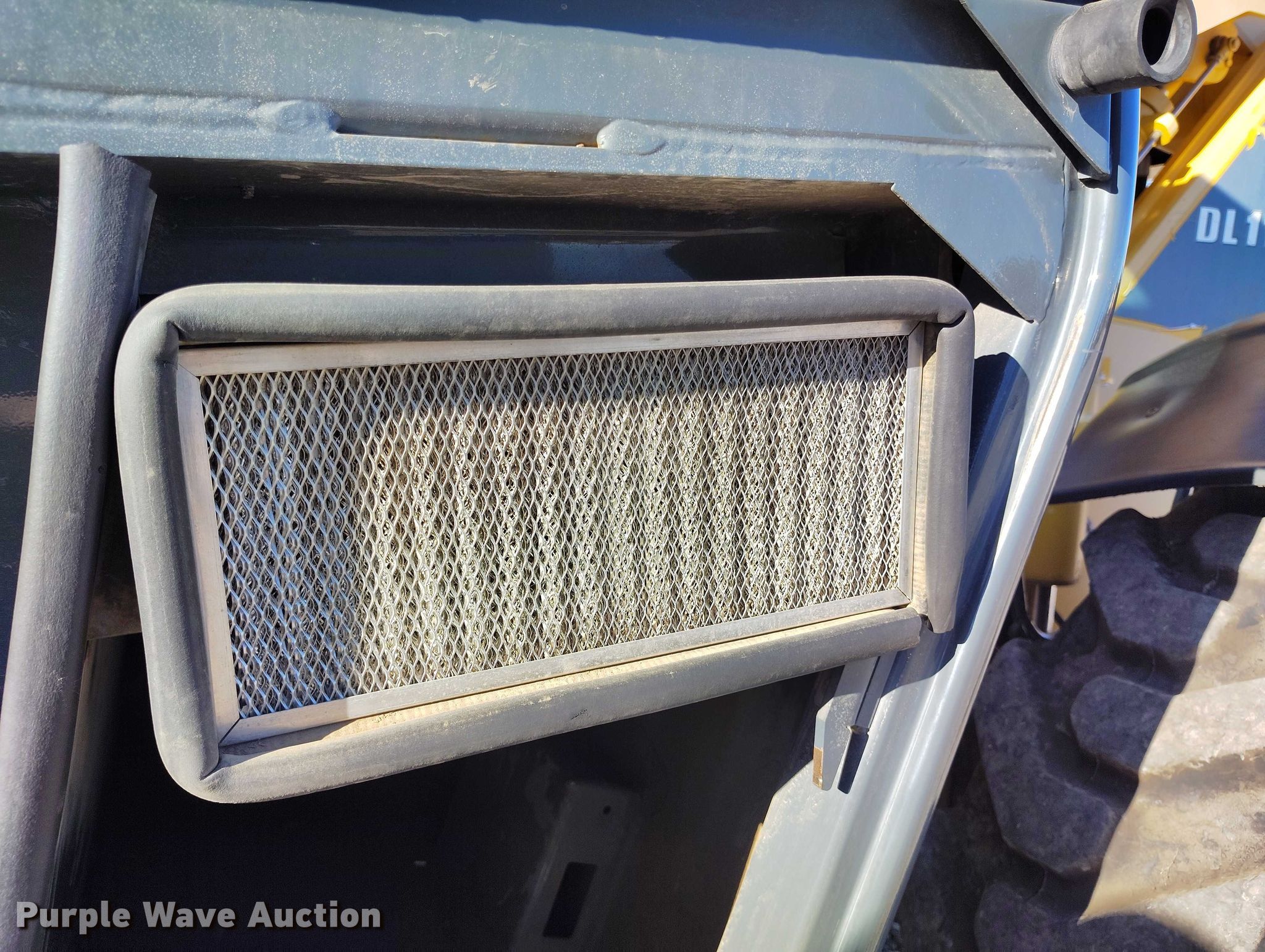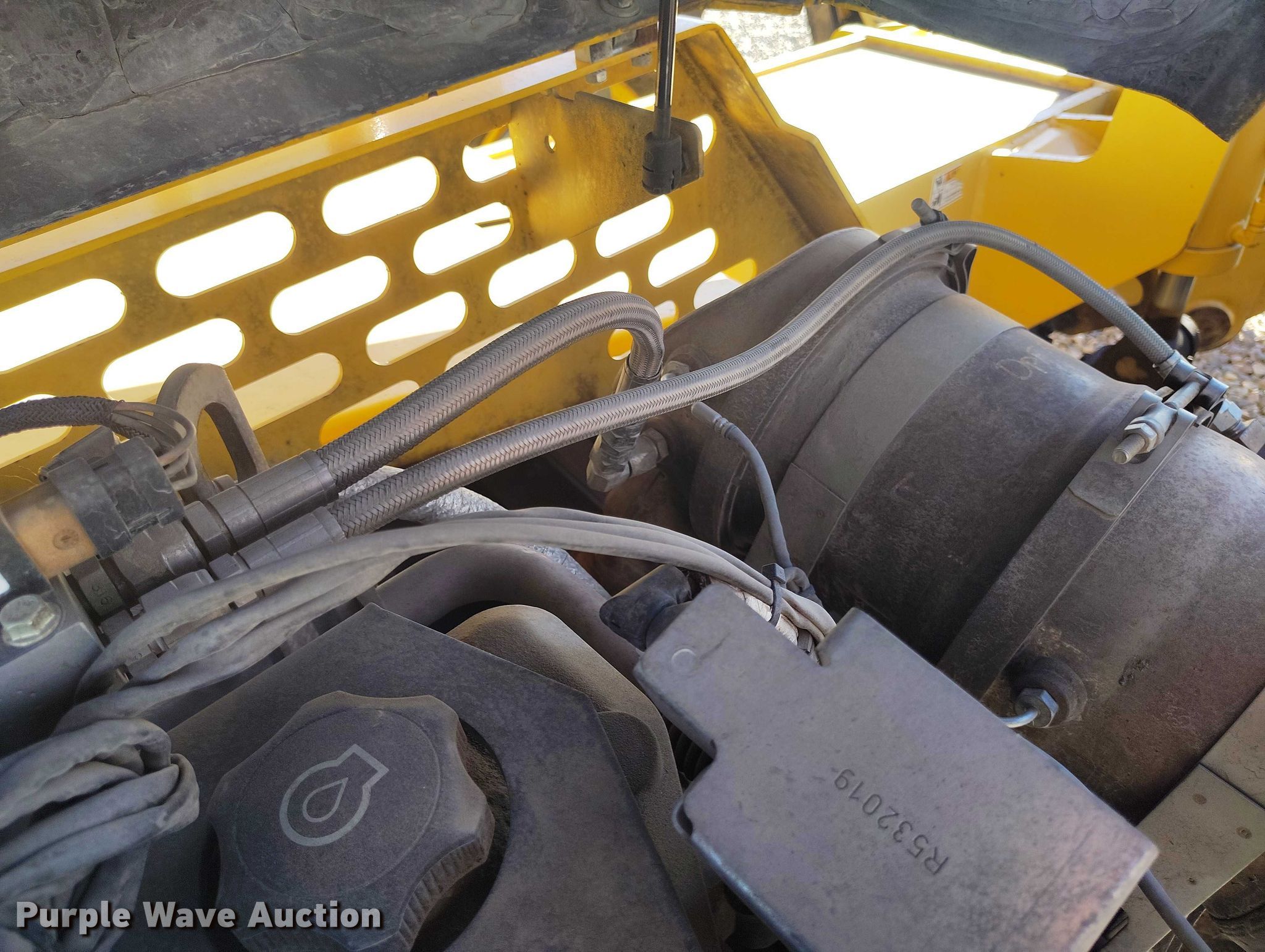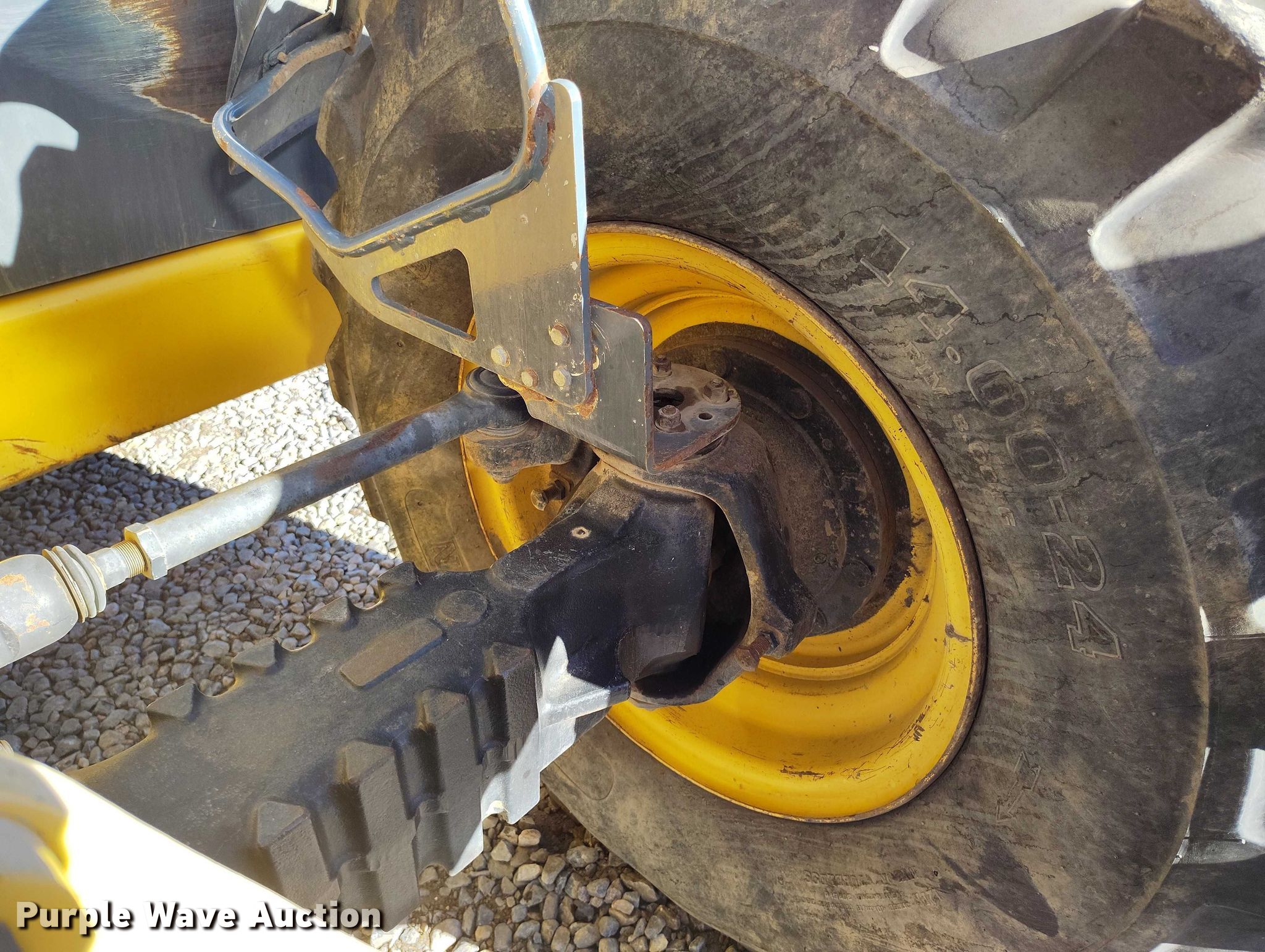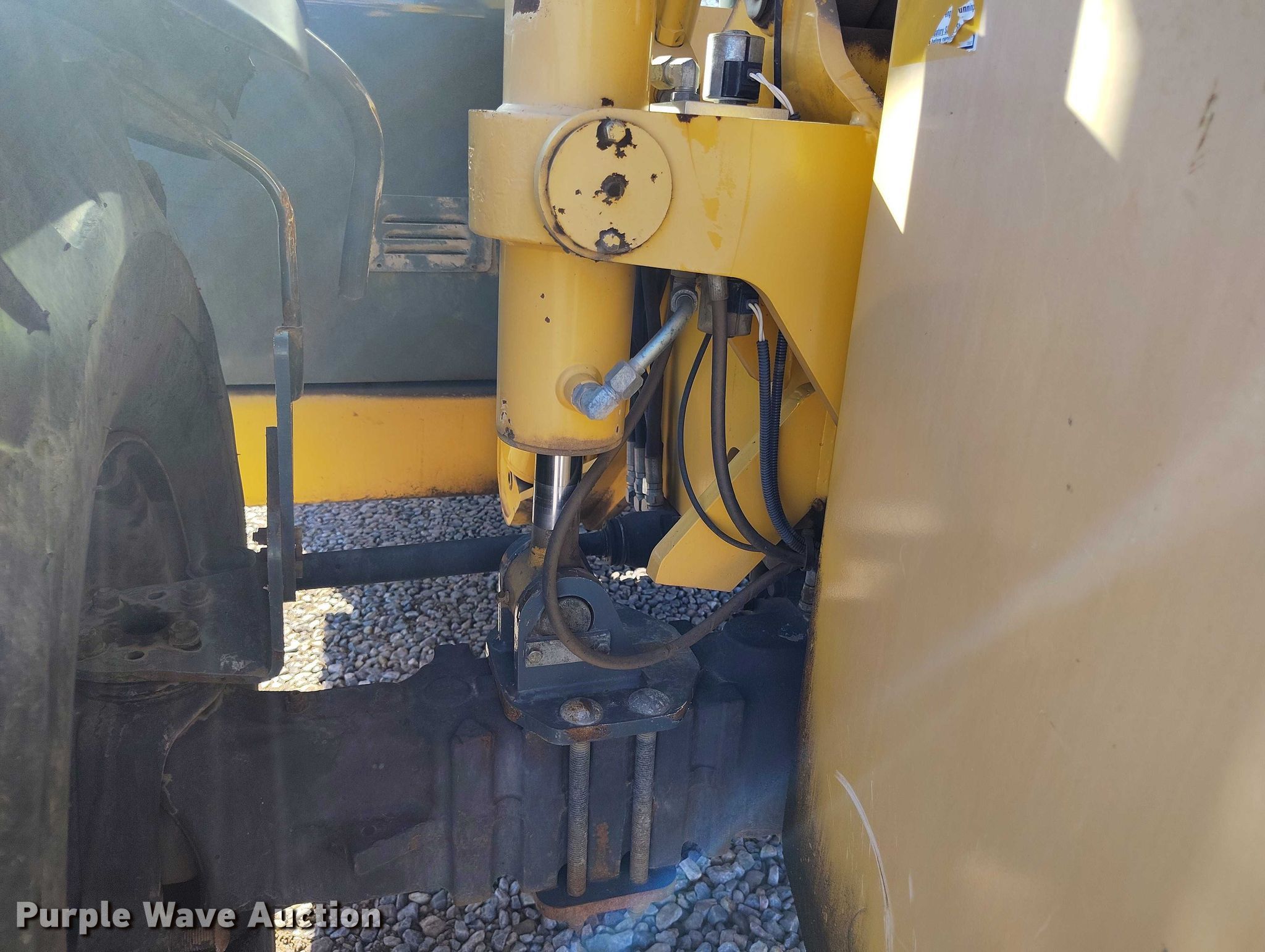 Gehl DL11-55 telehandler. Hours: Unknown, Serial: DL1155HJE0841627. Engine John Deere, Cylinders: 4, Fuel type: Diesel. Transmission Powershift, 4F - 4R, Four wheel drive. Operators station Enclosed cab, AC, Heat, Steering: Crab, Four wheel. Features Maximum lift capacity: 11,000 lbs, Maximum lift height: 55', Boom stages: 3, Fork length: 72", Auxiliary hydraulics, Hydraulic outriggers, Hydraulic leveling, Quick attach: Hydraulic. Tires Size: 14.00-24. Notes Non-operational hour meter, Electrical issues, drains battery, unknown oppcon of AC, Non-operational fork tilt, Hydraulic outrigger issues, leaks, Possible coolant issues. Grand Park. Commerce City, CO 80022