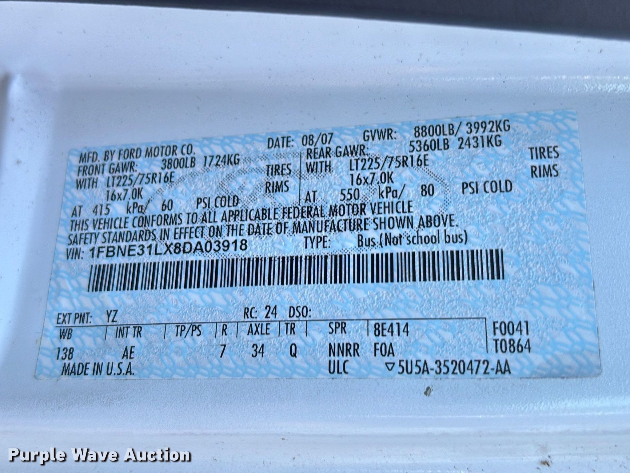 - VIN: 1FBNE31LX8DA03918