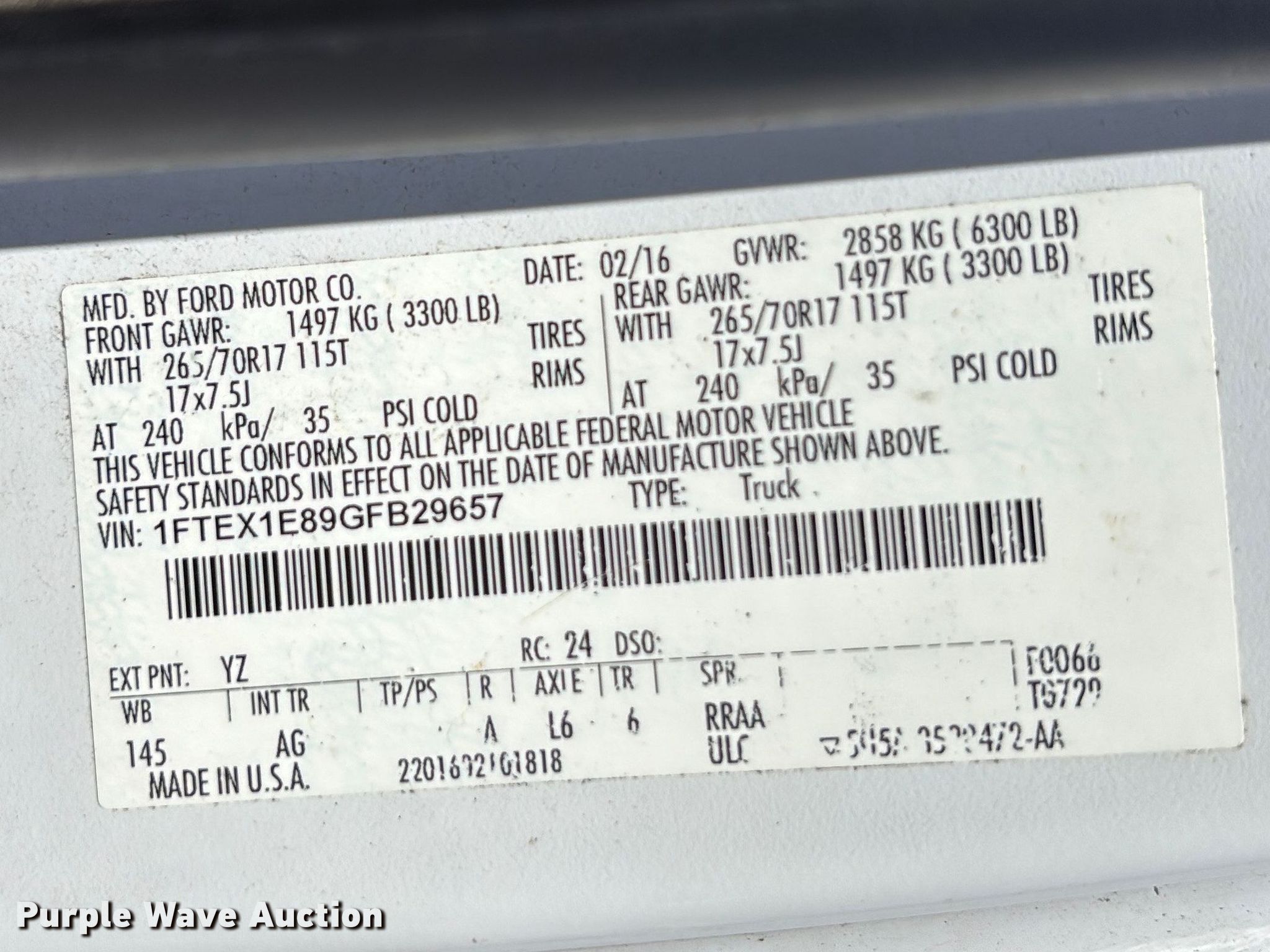 - VIN: 1FTEX1E89GFB29657