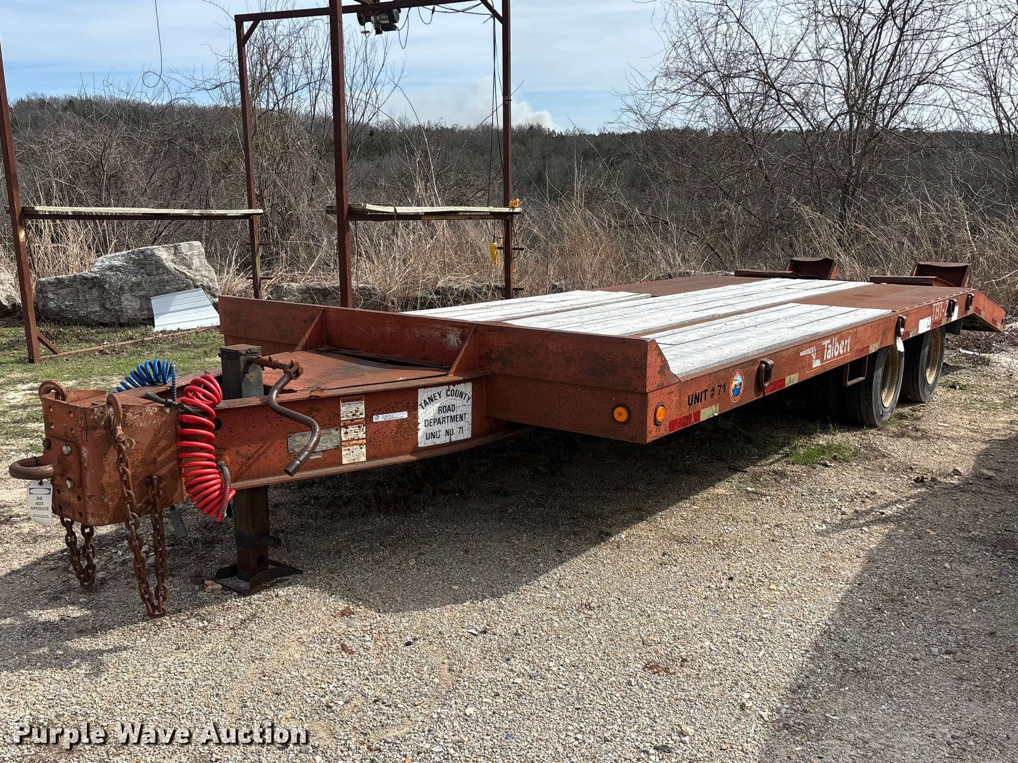 Purple Wave is selling a used Equip. Trailer in Missouri. This item is a 1995 Talbert equipment trailer with the following: VIN: 40FR03026T5013589, Unit #: 71