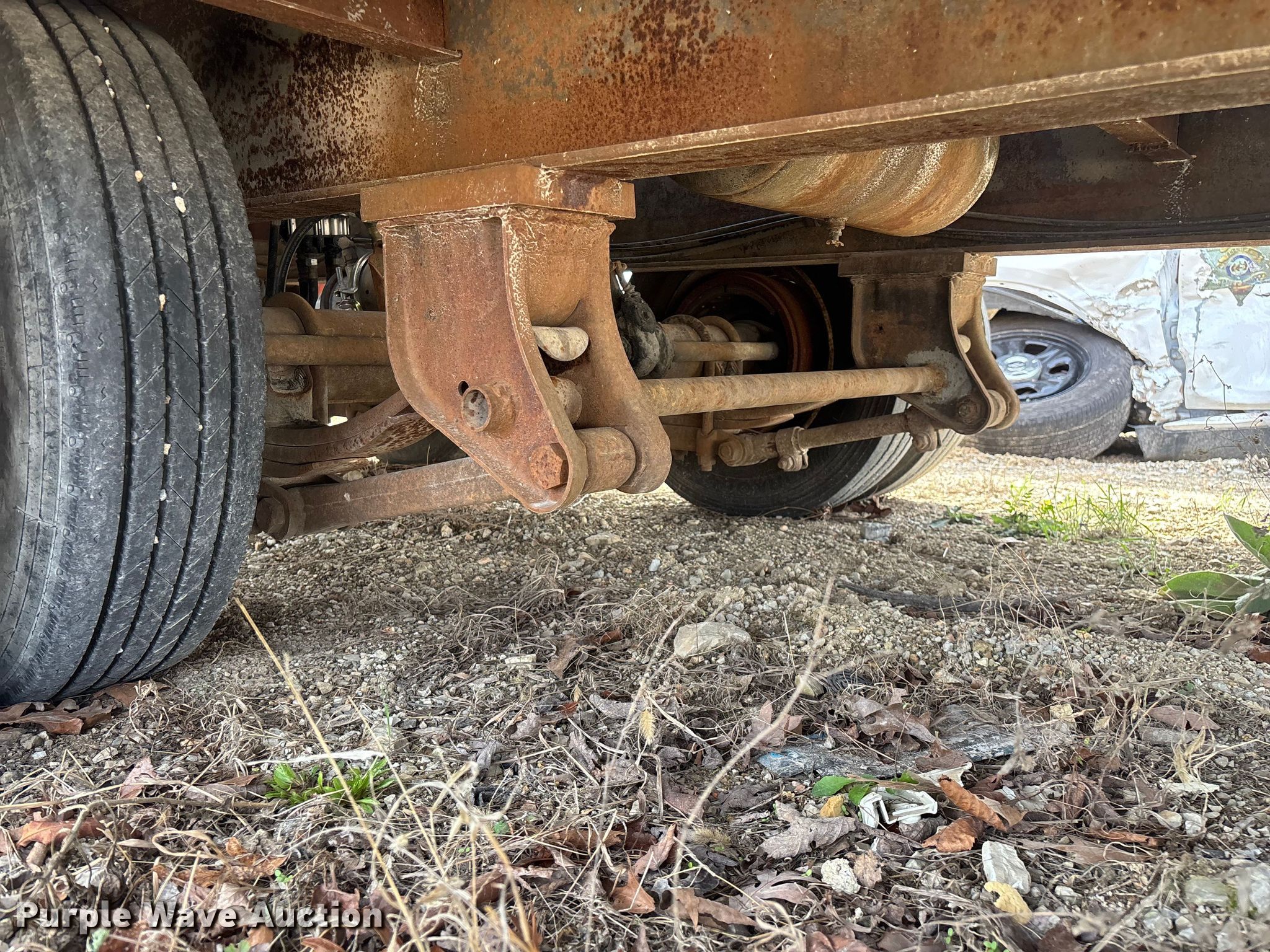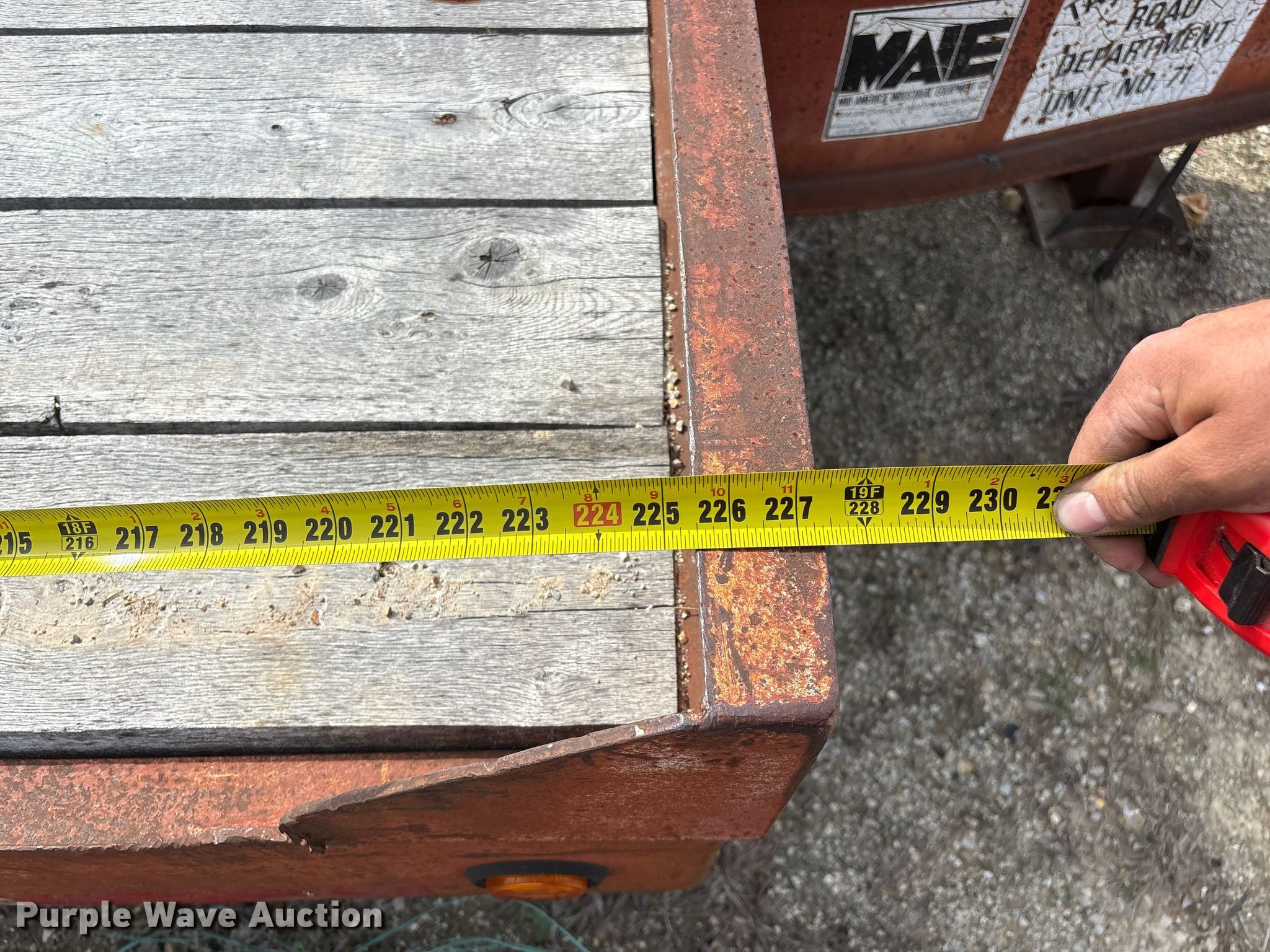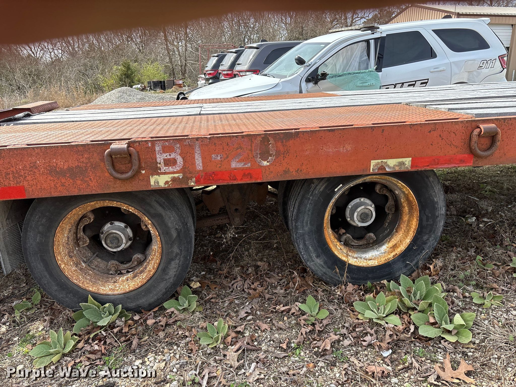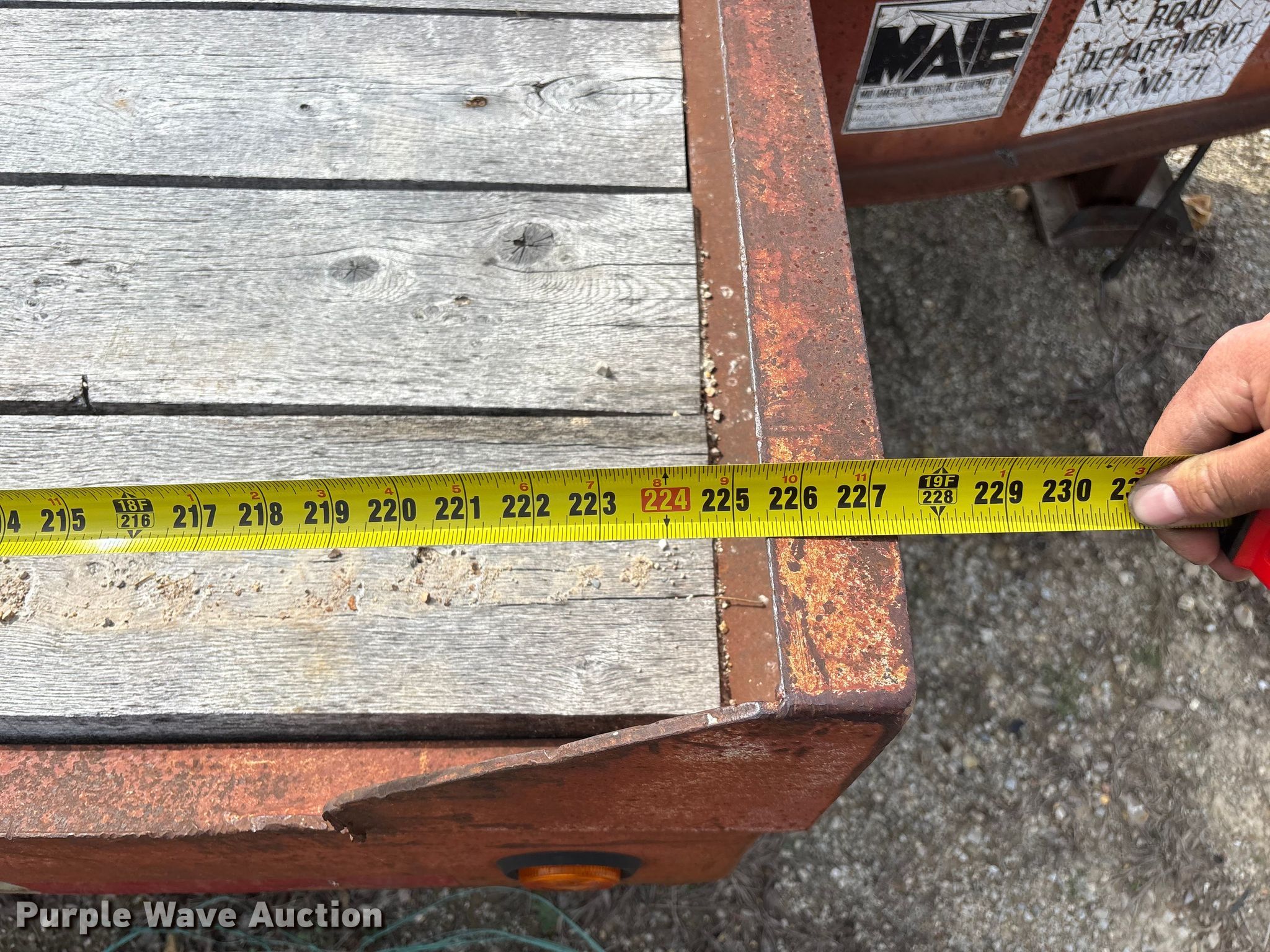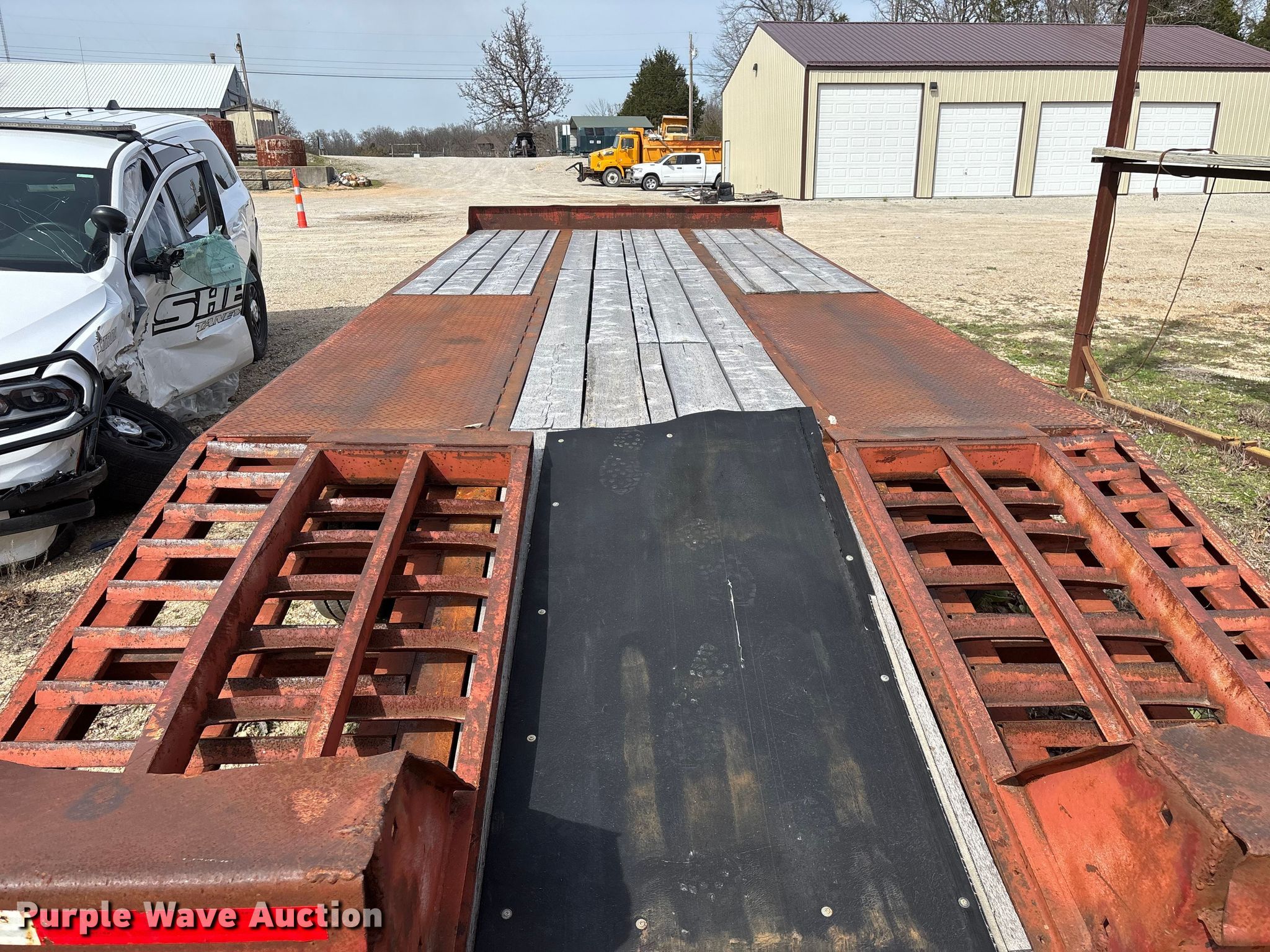 1995 Talbert equipment trailer. VIN: 40FR03026T5013589, Unit #: 71. Dimensions Overall Length: 30' 4", Width: 105", Deck Length: 18' 9", Width: 101", Deck height: 34", Tail length: 63", Ramps: Manual Length: 59". Features Deck type: Wood. Chassis Hitch: Pintle, Landing gear: Single, Suspension: Spring, Brakes: Air, Axles: Tandem, GVWR: 49,000 lbs, GAWR: 18,160 lbs. Tires Steel wheels, Size: 215/75R17.5. Notes Decals will be removed prior to auction, Brake issues. Missouri title. Title distribution may be delayed up to 14 days from verification of funds. Taney County, MO. Kissee Mills, MO 65680