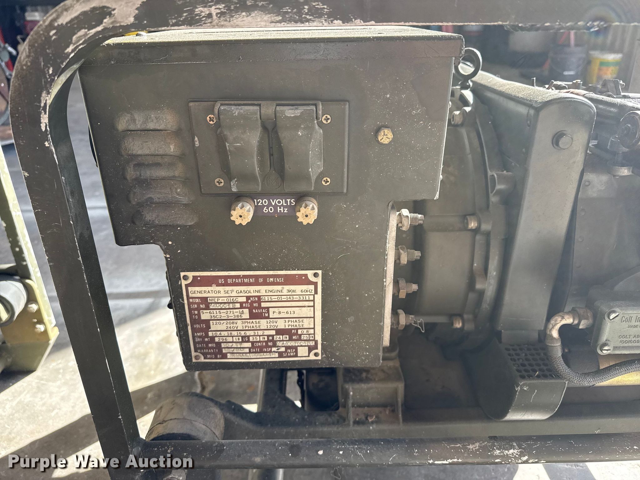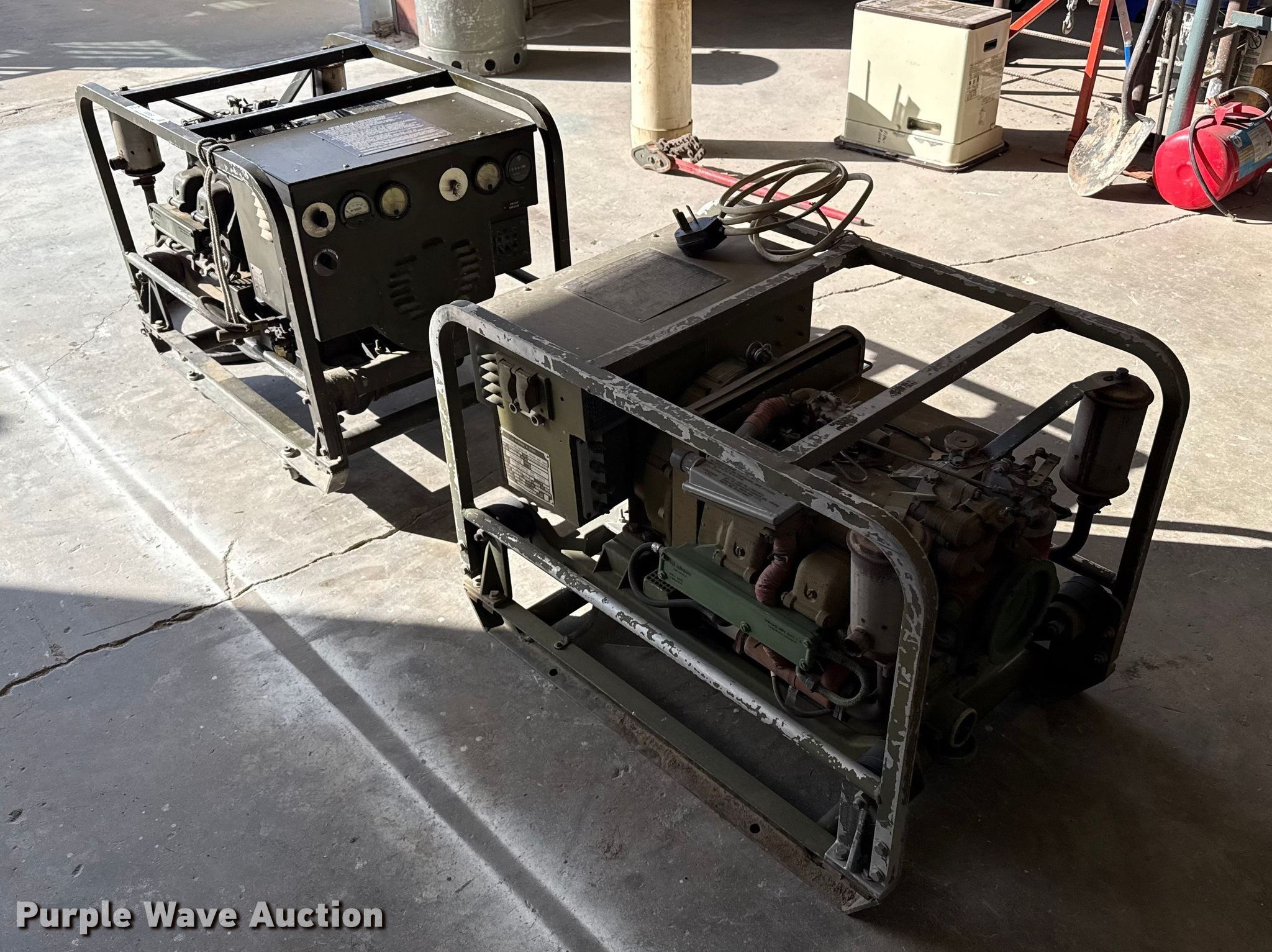 Purple Wave is selling a used Generator Set in Texas. This item is a (2) generators with the following: Hours: 563, Hours: 680, Kw: 3, Volts: 120/208, Phase: 3, One unit non-operational