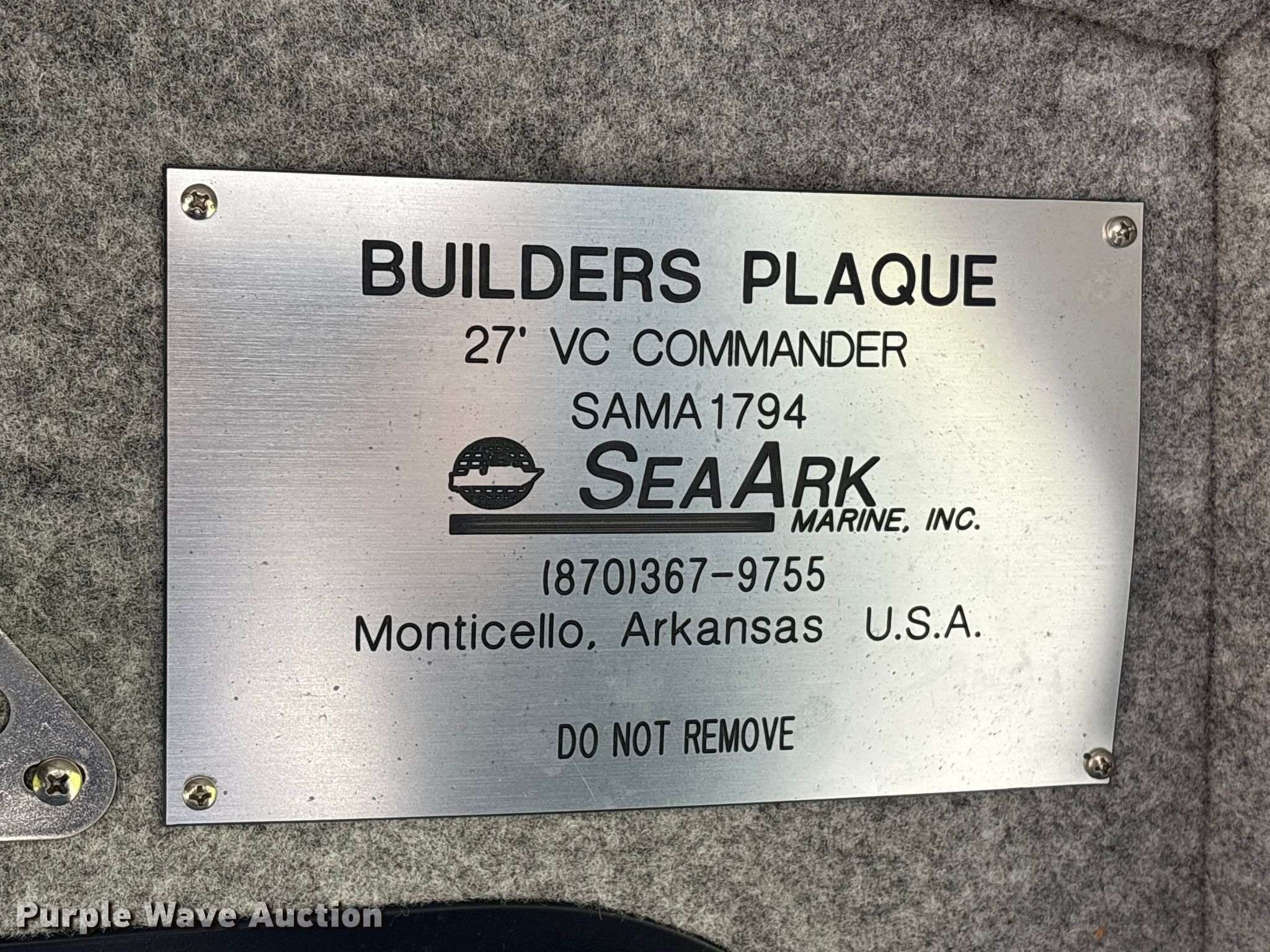 Purple Wave is selling a used Boat in Texas. This item is a 2006 Sea Ark VC Commander boat with the following: Hours: 182 on meter, Hours: 184 on second meter, Length: 27', Hull ID: SAMA1794K606
