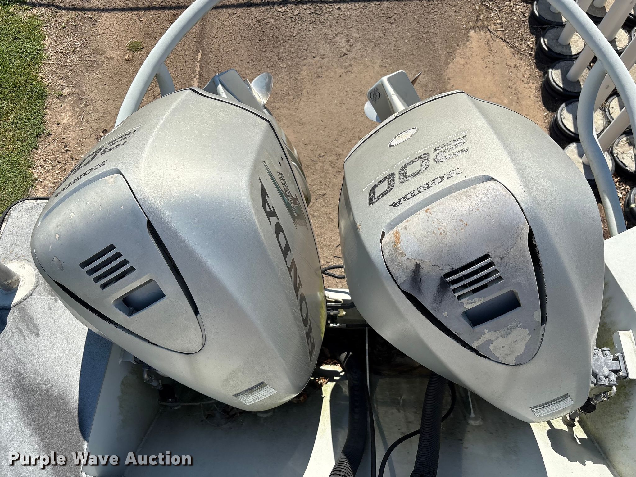 2006 Sea Ark VC Commander boat. Hours: 182 on meter, Hours: 184 on second meter, Length: 27', Hull ID: SAMA1794K606. Engine Engine type: Outboard, 2008 Yamaha BF200A, Serial: 1500007, Cylinders: 4, Fuel type: Gas, Outdrive Propeller: Stainless steel. Second engine Engine type: Outboard, 2008 Yamaha BF200A, Serial: 1500332, Cylinders: 4, Fuel type: Gas, Outdrive Propeller: Stainless steel. Operators station GPS. Features Generator Kohler 5E, Two cylinder gas engine, kW: 5.00, kVA: 5.00. Trailer 2016 EZ Loader TEZB 28 - 30 8500, VIN: 1ZEAANYGXGA004056, Overall length: 30', Overall width: 102", Ball hitch size: 2 5/16", Tire size: 235/80R16. Notes One outboard engine non-operational , Unknown operating condition. Boat: Texas title. Motor 1: Texas title. Motor 2: Texas title. Trailer: Texas title. Title distribution may be delayed up to 14 days from verification of funds... Port of Beaumont. Beaumont, TX 77701