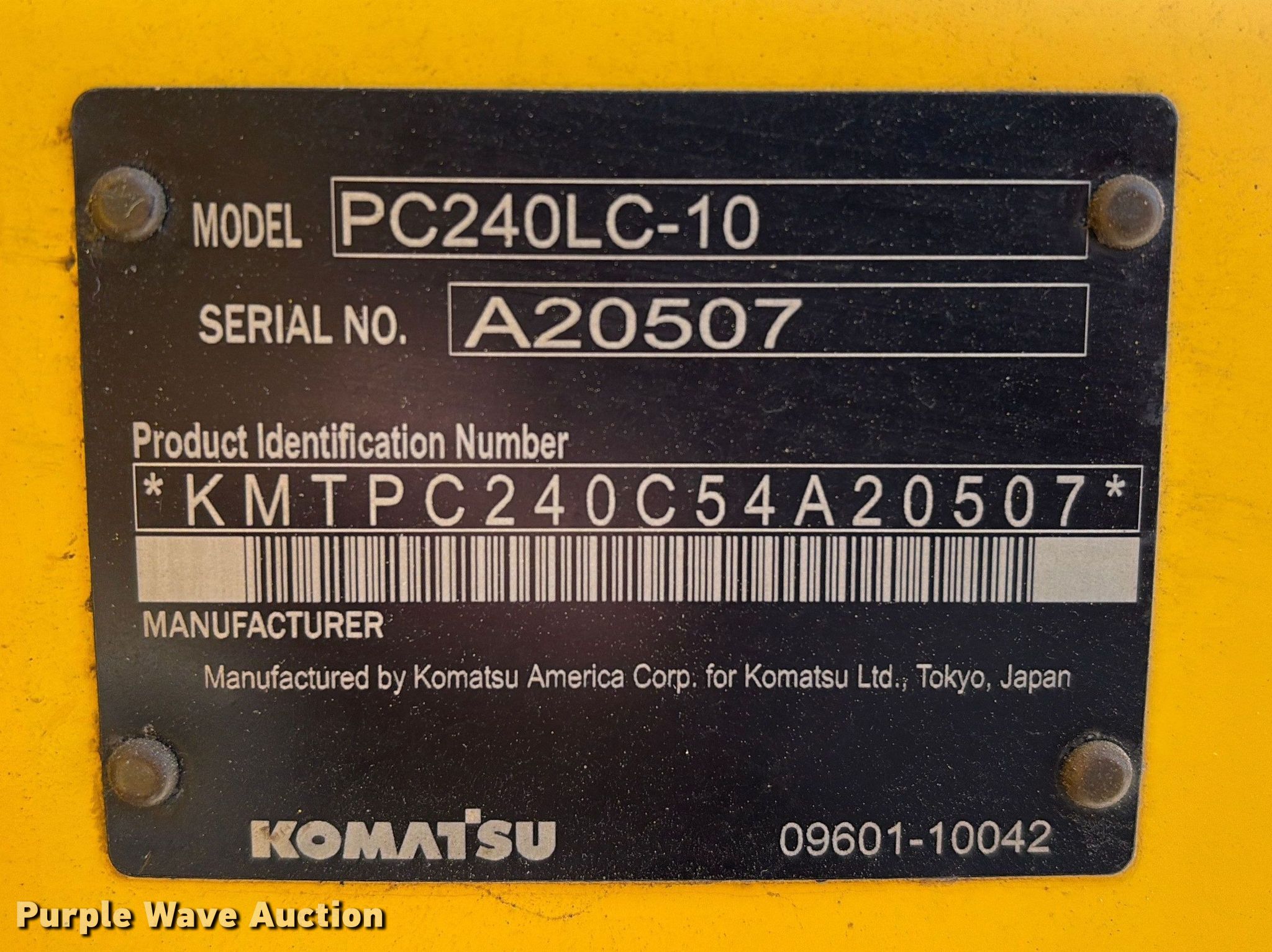 Purple Wave is selling a used Hydraulic Excavator in Texas. This item is a 2015 Komatsu PC240LC-10 long reach excavator with the following: Hours: 9,183 on meter, Serial: KMTPC240C54A20507