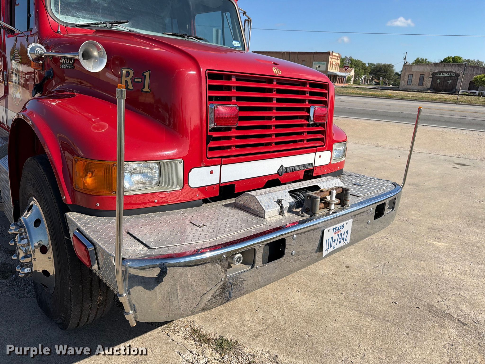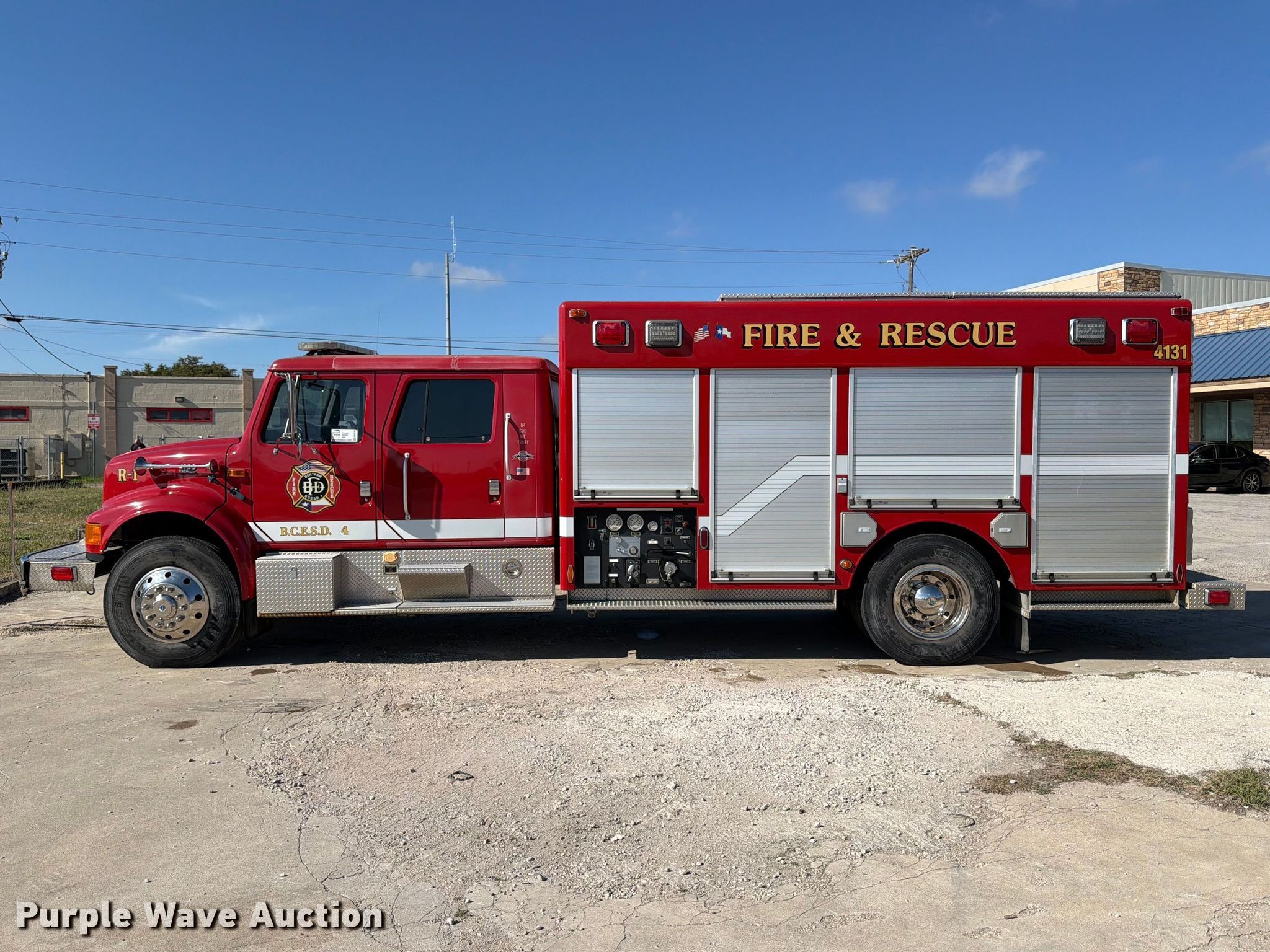 Purple Wave is selling a used Fire Truck or Emergency Vehicle in Texas. This item is a 2002 International 4900 pumper fire truck with the following: Miles: 30,084 on odometer, Hours: 3,298 on meter, VIN: 1HTSDADR82H521924, Unit #: R-1