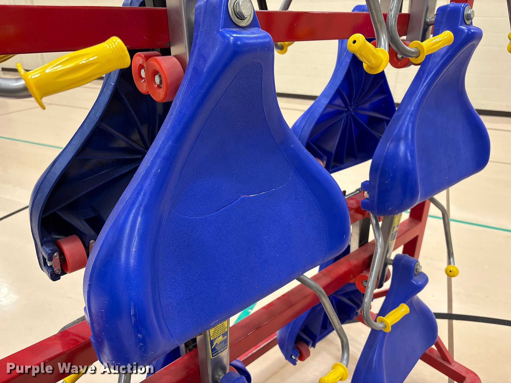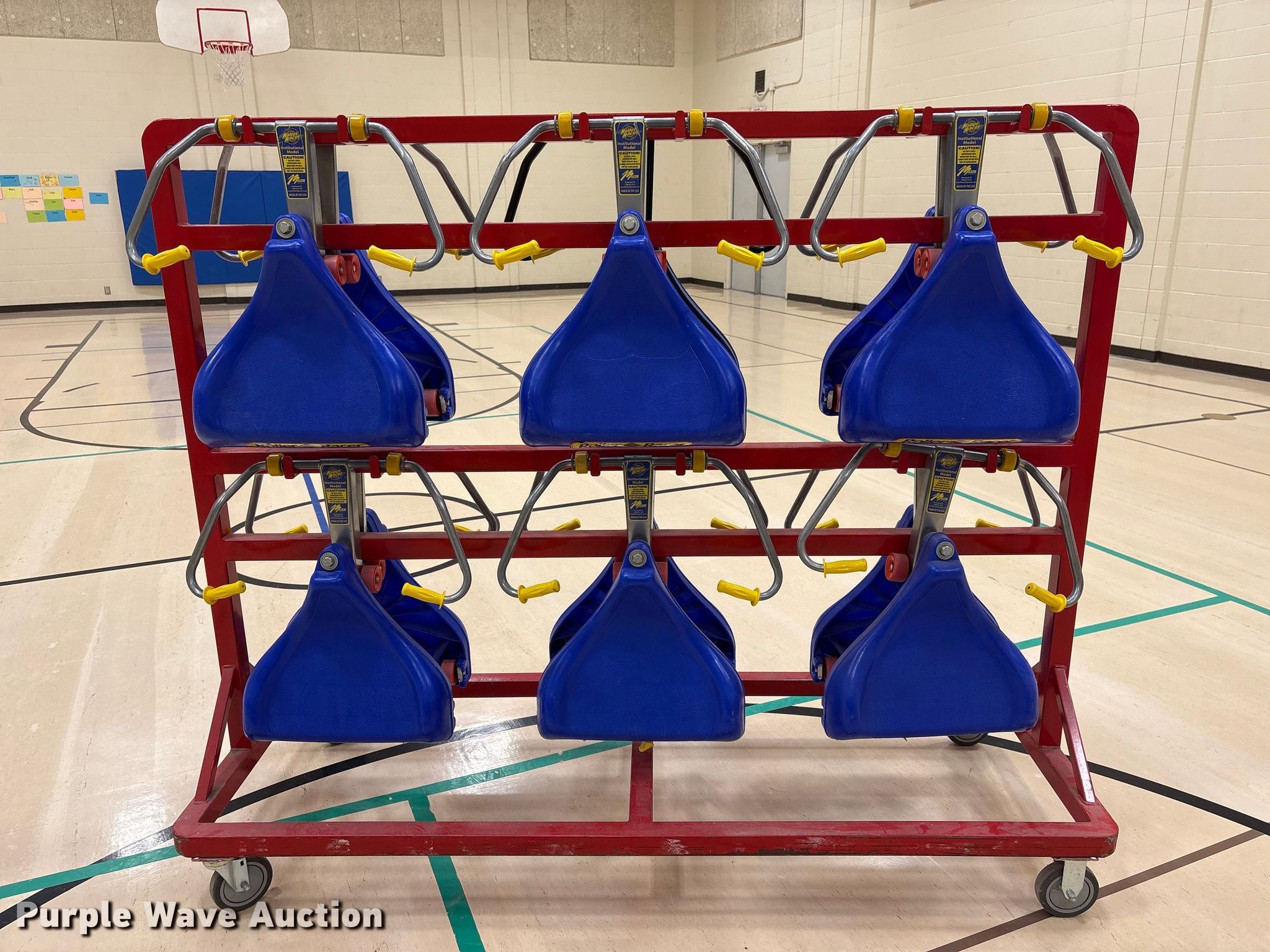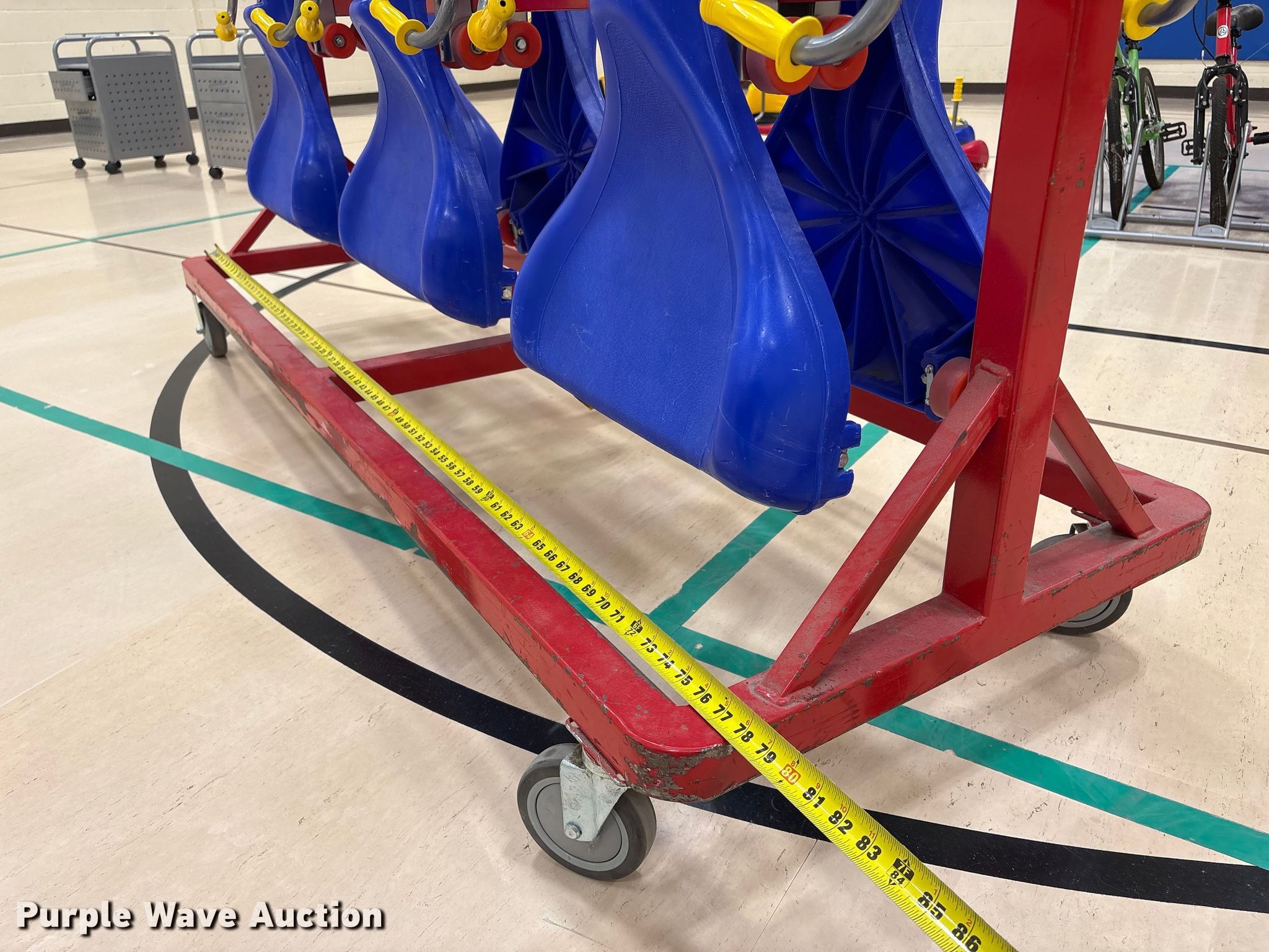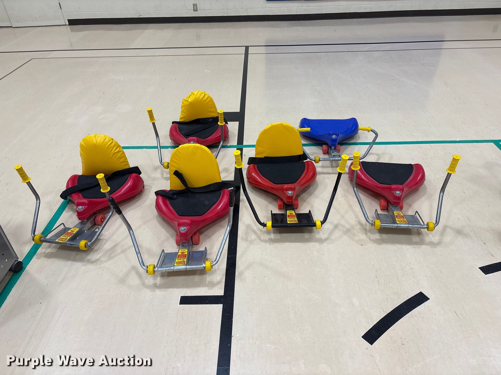 Purple Wave is selling a used Sporting Goods in Nebraska. This item is a Sporting goods with the following: (15) Strider sport balance bicycles, (6) SR-S1 20", (9) SS-S2 16", Bike rack, (18) Roller Racer Institutional scooters, Rack: 78" x 28" x 64", (2) 27" x 18" x 16" glass top rolling cabinets