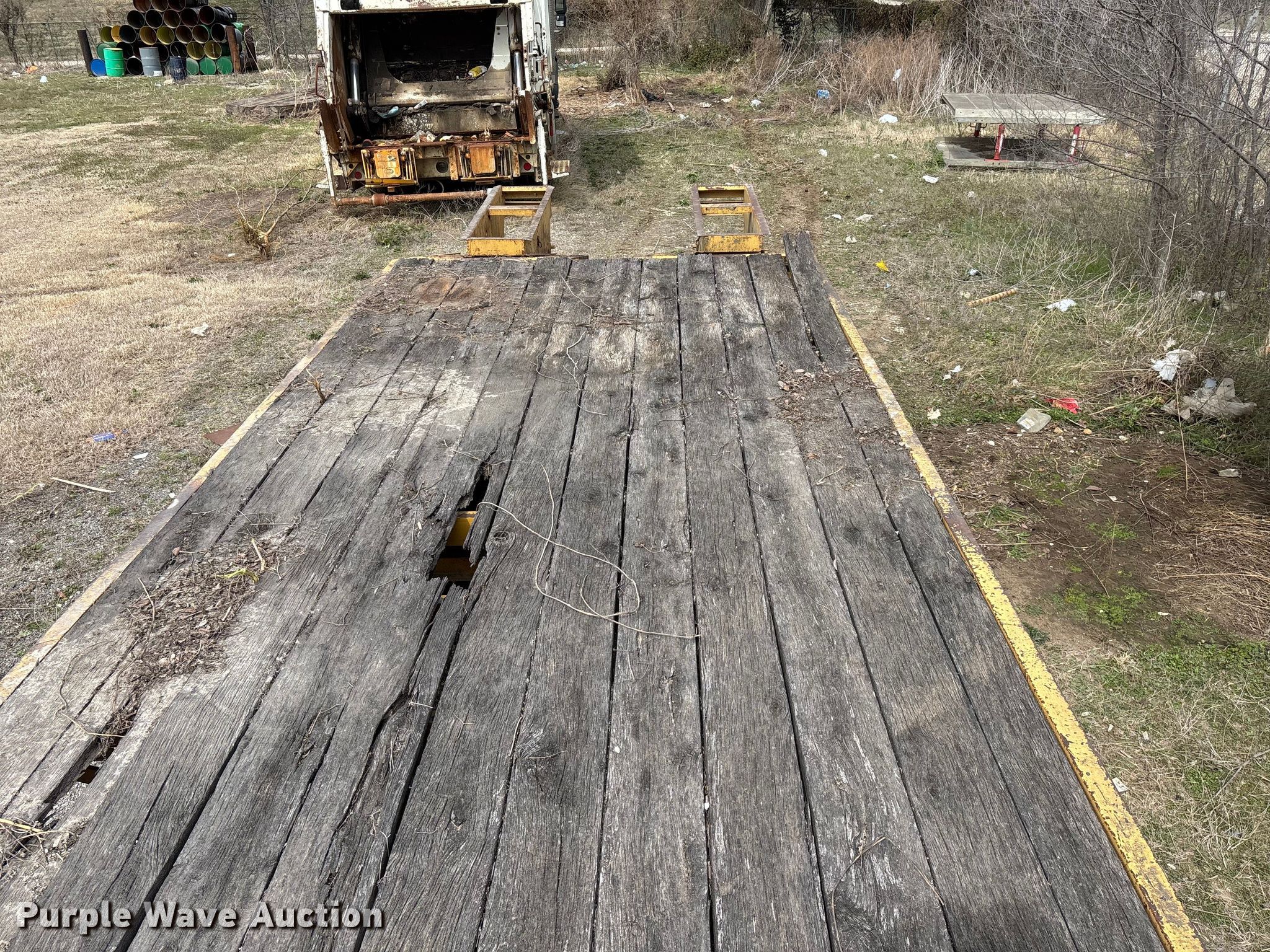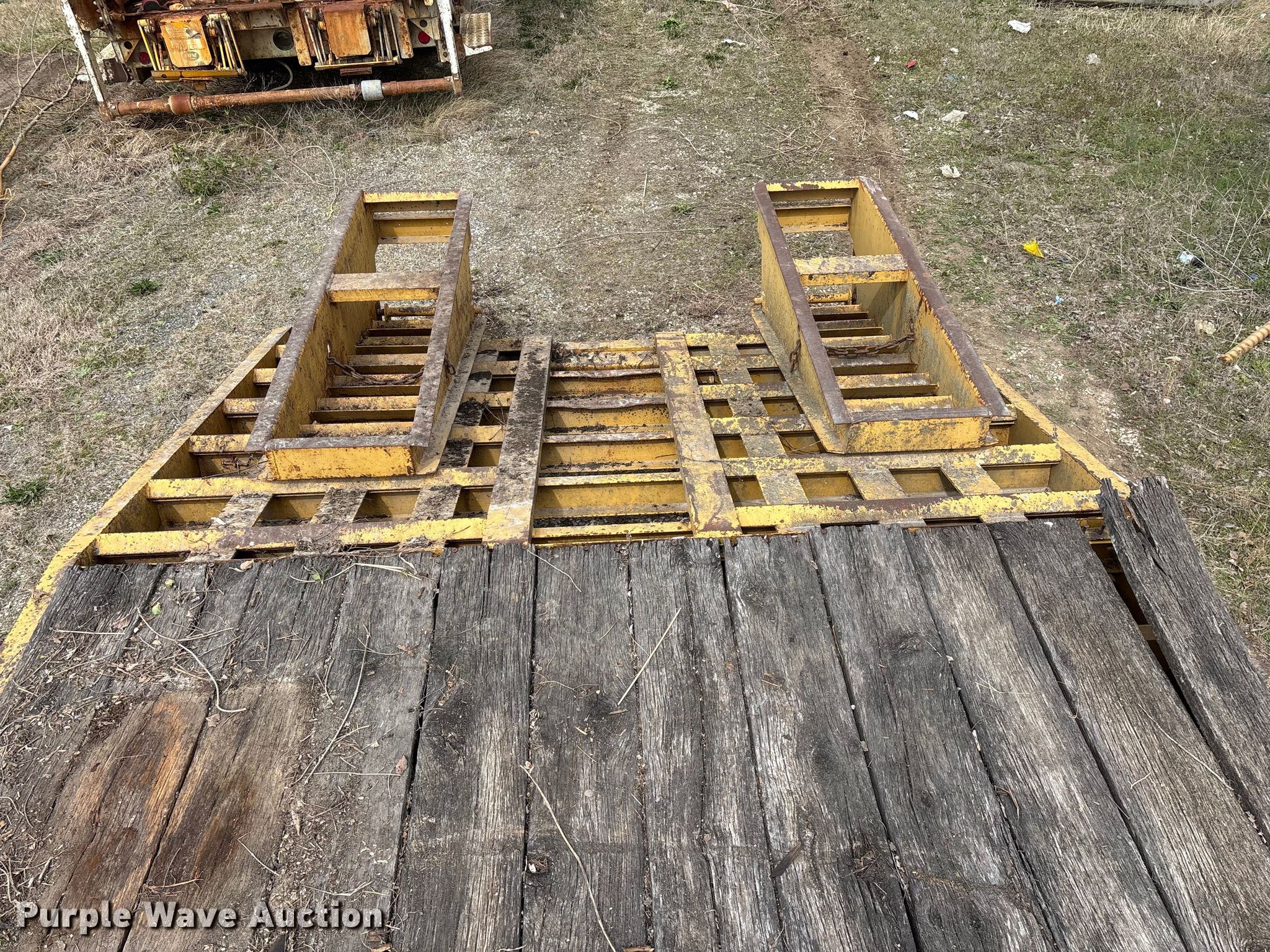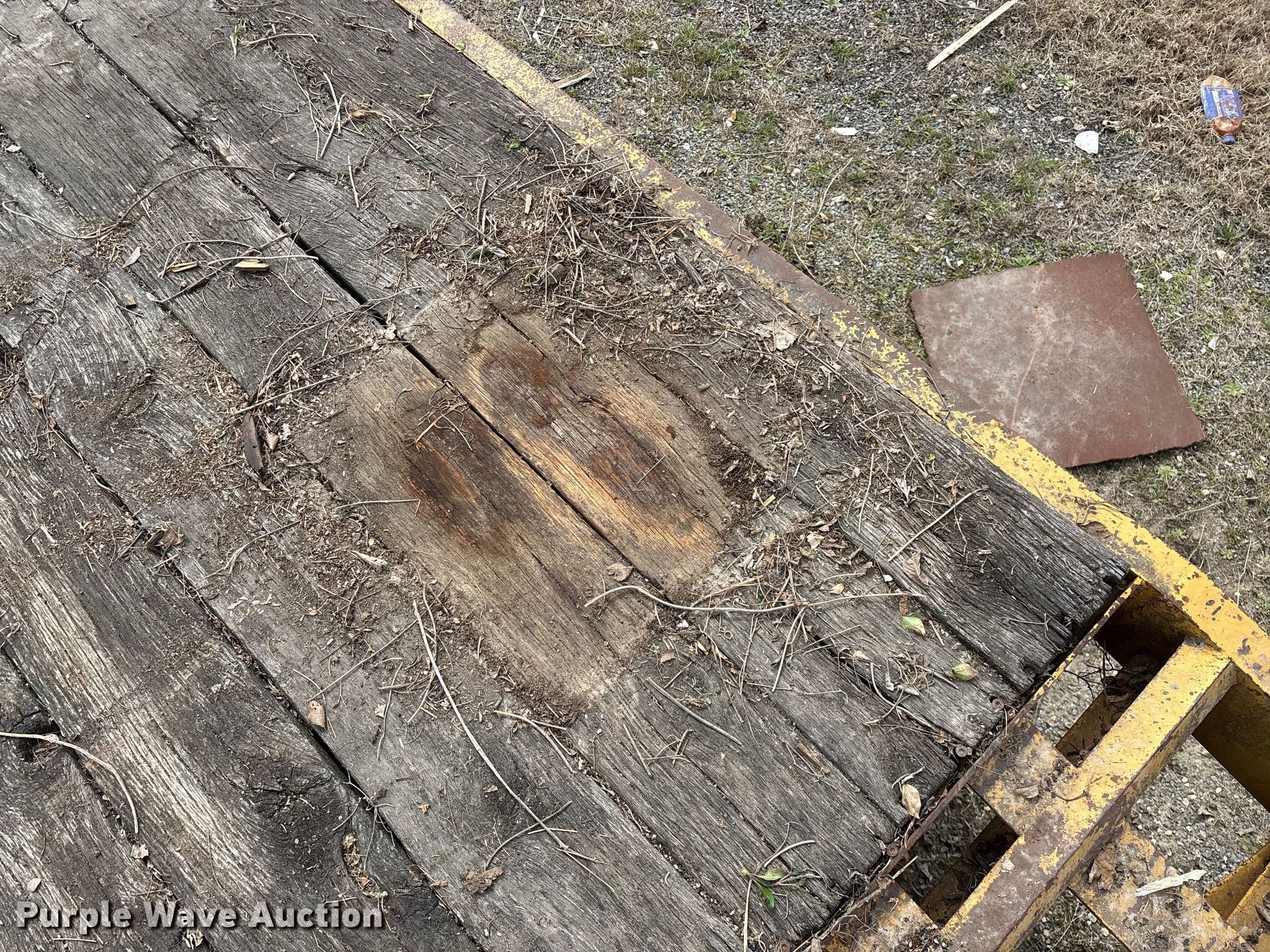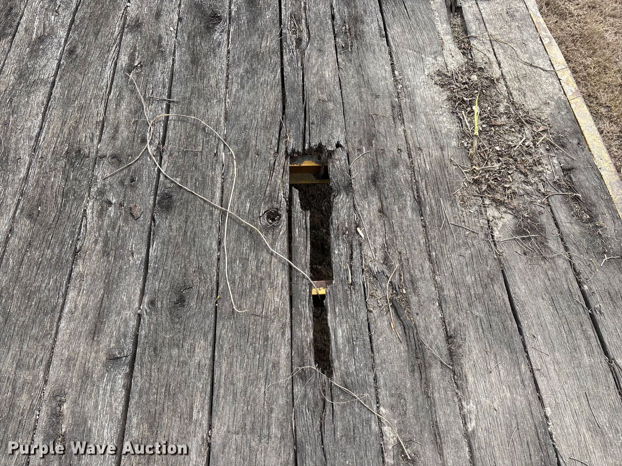 2002 Belshe equipment trailer. VIN: 16JF0202721037637. Dimensions Overall Length: 31' 8", Width: 95", Deck Length: 19' 9", Width: 95", Deck height: 36", Tail length: 66", Ramps: Manual Length: 54". Features Deck type: Wood. Chassis Hitch: Pintle, Landing gear: Single, Suspension: Spring, Brakes: Electric, Axles: Tandem, GVWR: 23,500 lbs, GAWR: 10,000 lbs. Tires Steel wheels, Size: ST235/85R16. Notes Deck boards damaged, rot, Brake issues, stuck , contents not included. Kansas title. Title distribution may be delayed up to 14 days from verification of funds. City of Independence, KS. Independence, KS 67301