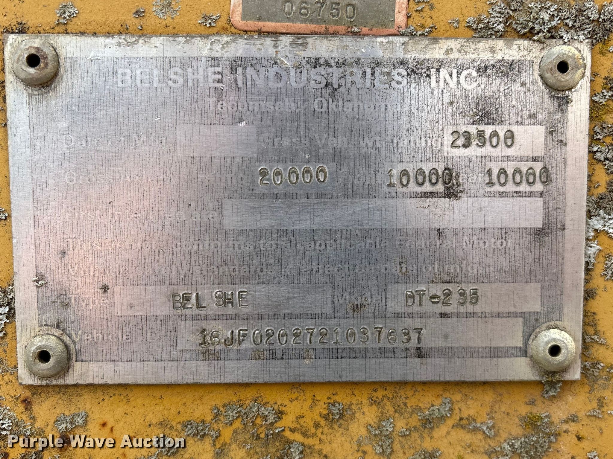 Purple Wave is selling a used Equip. Trailer in Kansas. This item is a 2002 Belshe equipment trailer with the following: VIN: 16JF0202721037637