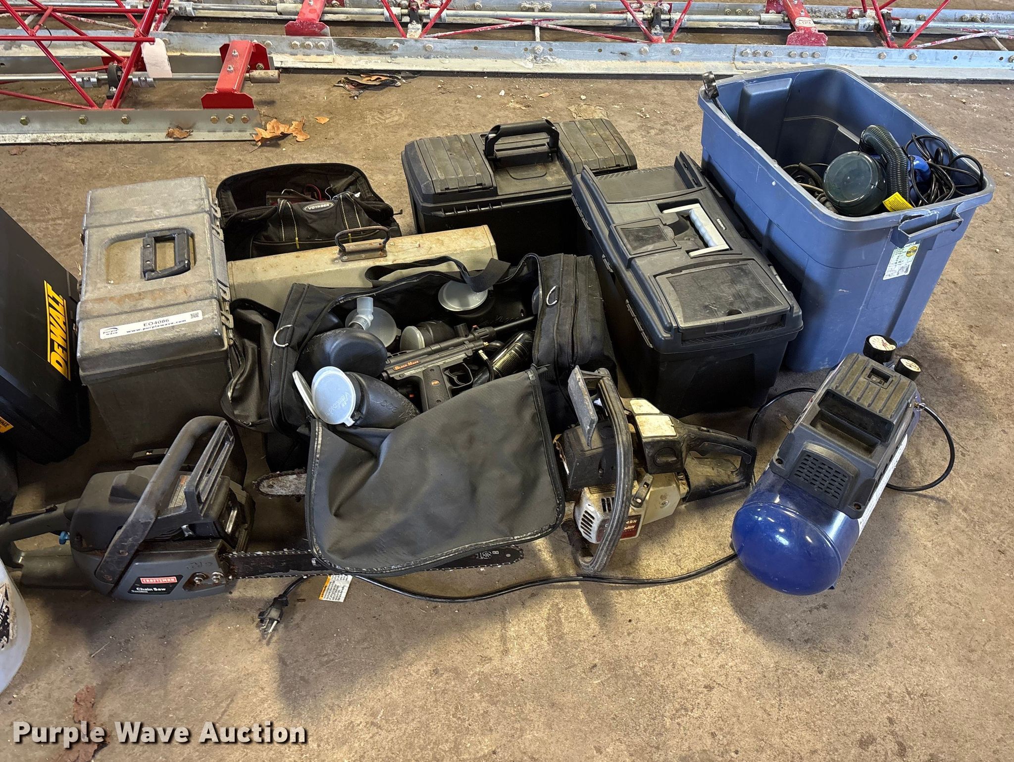 Purple Wave is selling a used Tools in Missouri. This item is a Tools with the following: Hand tools, Tool bags, Power tools, Craftsman Chain saw, Paint ball equipment, And more...