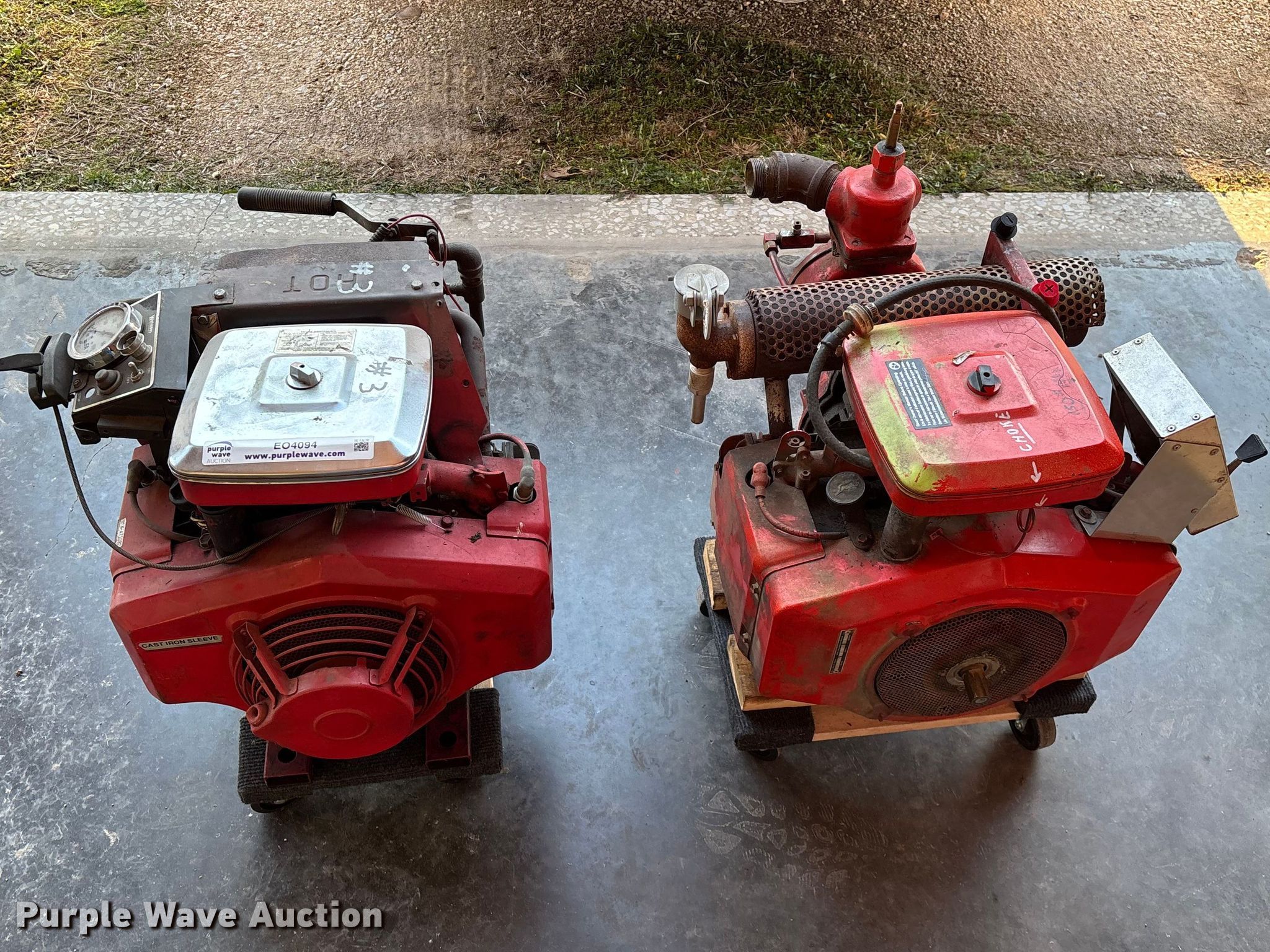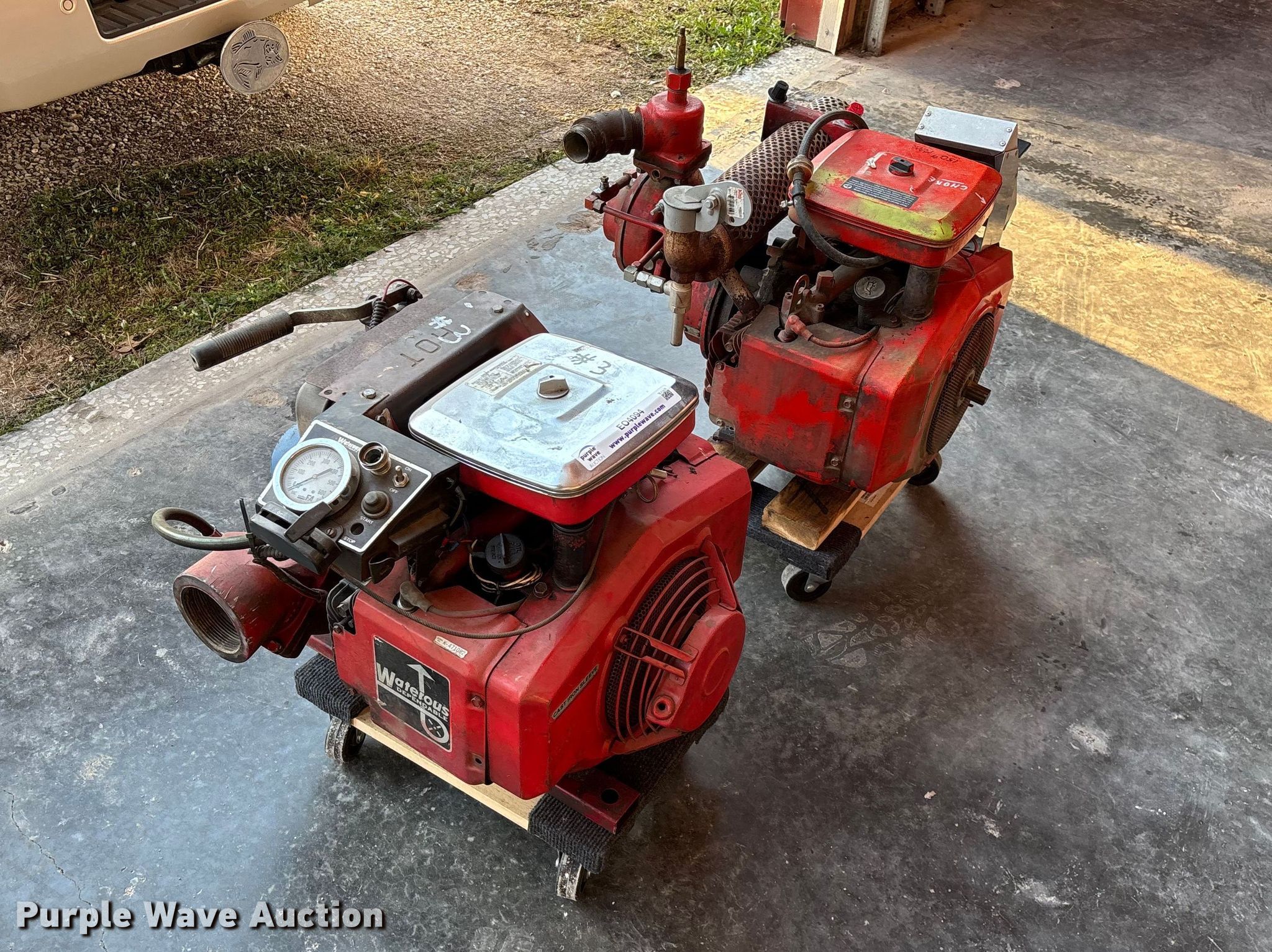 (2) water pumps. W.S. Darley & Co. 1.5AGE Serial: 27239, Briggs & Stratton 422437 two cylinder 18HP gas engine, Waterous Company PB18-3030C Serial: 3349, Briggs & Stratton 422437 two cylinder gas engine Serial: K-471082.. Notes Dolly's not included. Warsaw, MO 65355