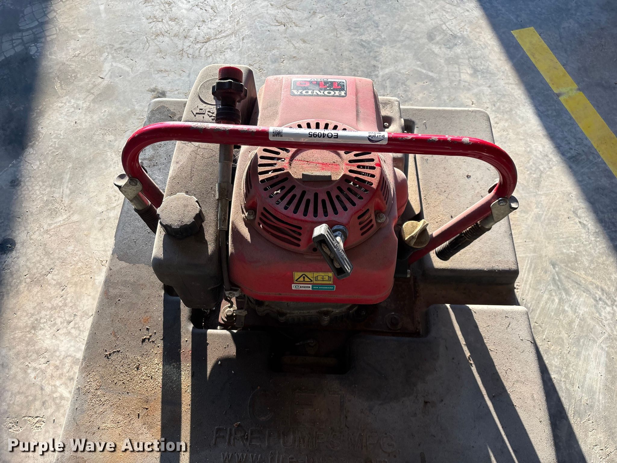 Purple Wave is selling a used Pump in Missouri. This item is a C.E.T. Fire Pumps Mfg. pump with the following: Honda GXV340, Serial: GJ02-6066647, Displacement: 337 cc, Cylinders: 1, Fuel type: Gas