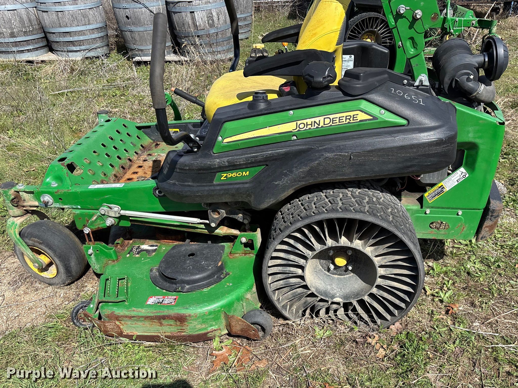 Purple Wave is selling a used Commercial Turf Mower in Missouri. This item is a 2018 John Deere Z960M ZTR lawn mower with the following: Hours: 1,464 on meter, Cutting width: 60", Serial: 1TC060MCKJT06159, Unit #: 10651