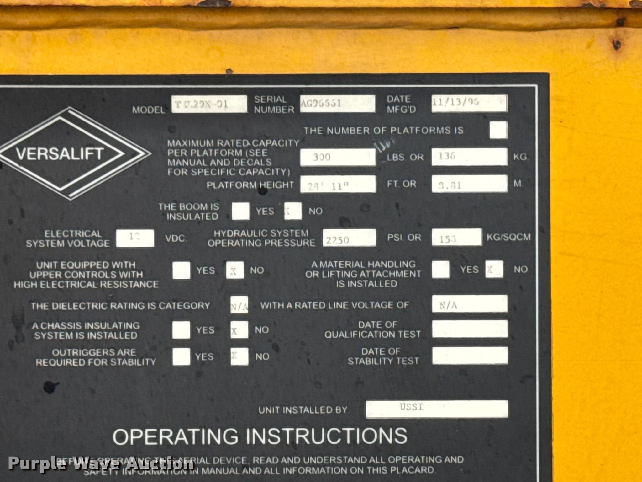 - 1996 Versa lift TCL29x-01