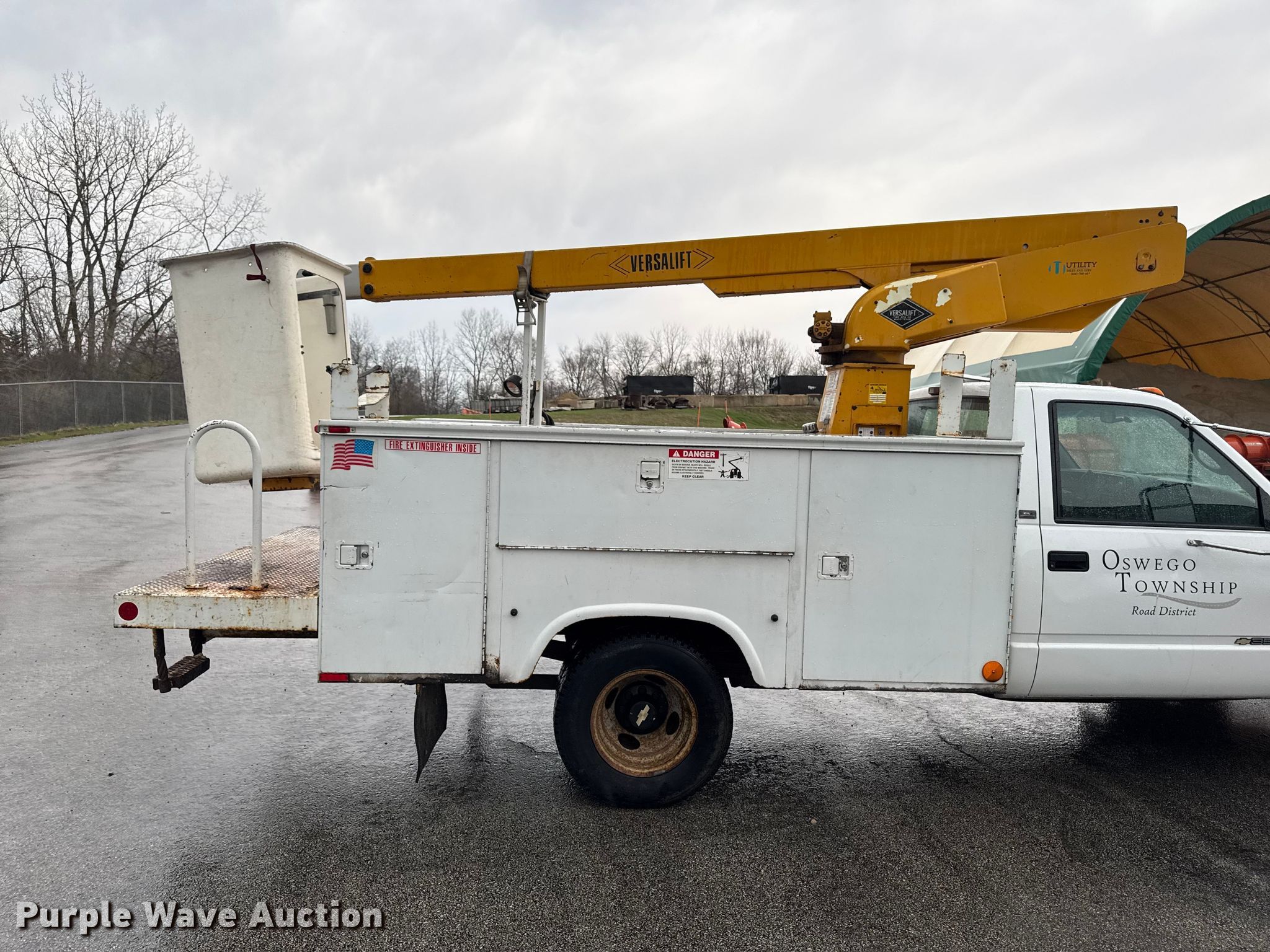 1997 Chevrolet C3500 bucket truck. Miles: 55,682 on odometer, VIN: 1GBJC34R1VF008817. Engine Displacement: 5.7L, Cylinders: 8, Fuel type: Gas. Transmission Automatic. Chassis Axles: Single, Suspension: Spring, Brakes: Hydraulic, PTO. Interior Heat. Features Bed Utility bed, Length: 9', Width: 90", Boom 1996 Versa lift TCL29x-01, Serial: AG96661, Mast height: 28', Maximum lift capacity: 300 lbs, Boom type: Telescopic, Man basket, Boom controls Lower, Basket.. Tires Size: 225/75R16. Notes Radio not included, Contents not included. Illinois title. Title distribution may be delayed up to 14 days from verification of funds. Oswego Township Highway Commission. Oswego, IL 60543