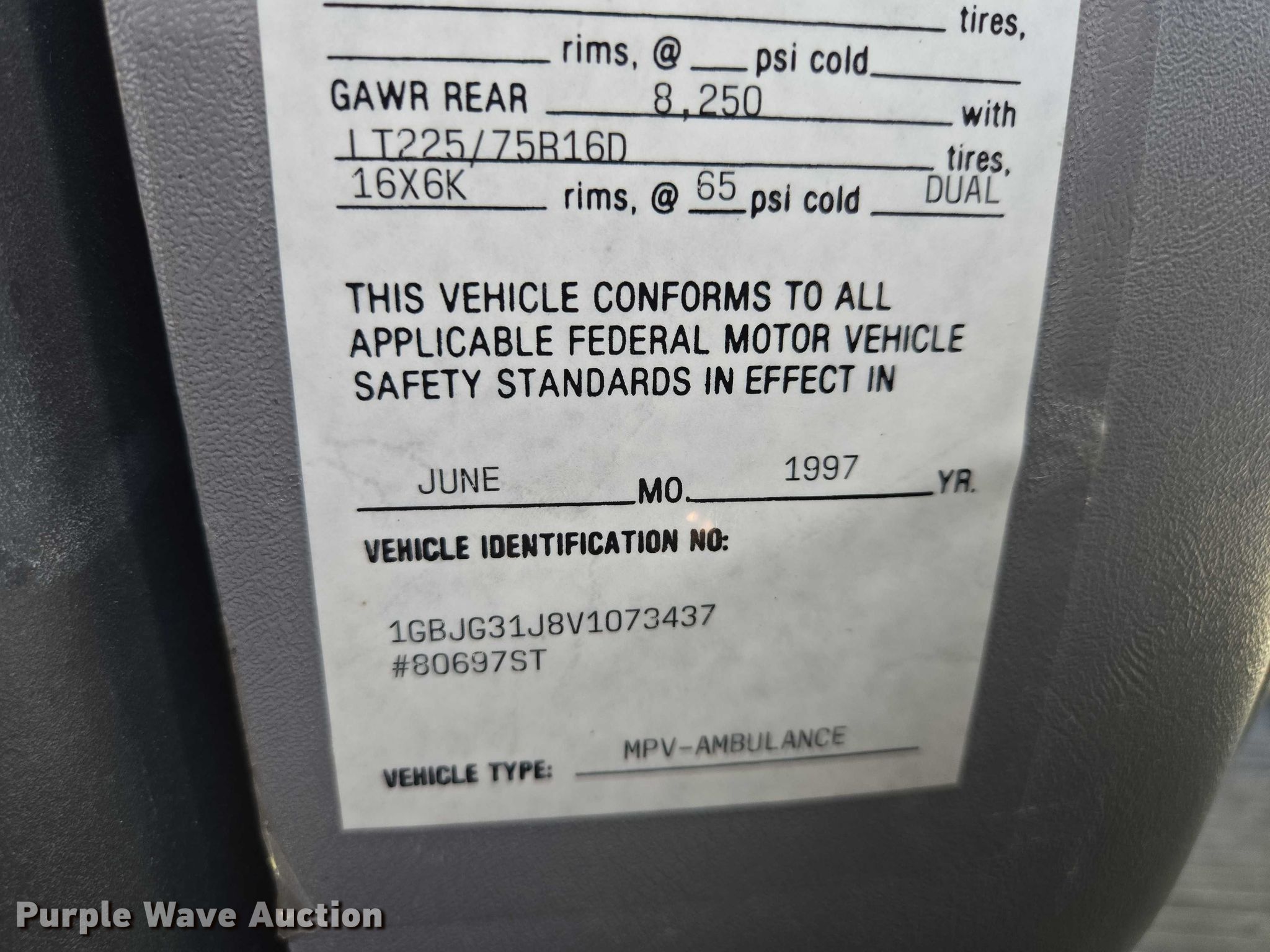Purple Wave is selling a used Fire Truck or Emergency Vehicle in South Dakota. This item is a 1997 Chevrolet Lifeline Express 3500 ambulance with the following: Miles: 52,881 on odometer, VIN: 1GBJG31J8V1073437