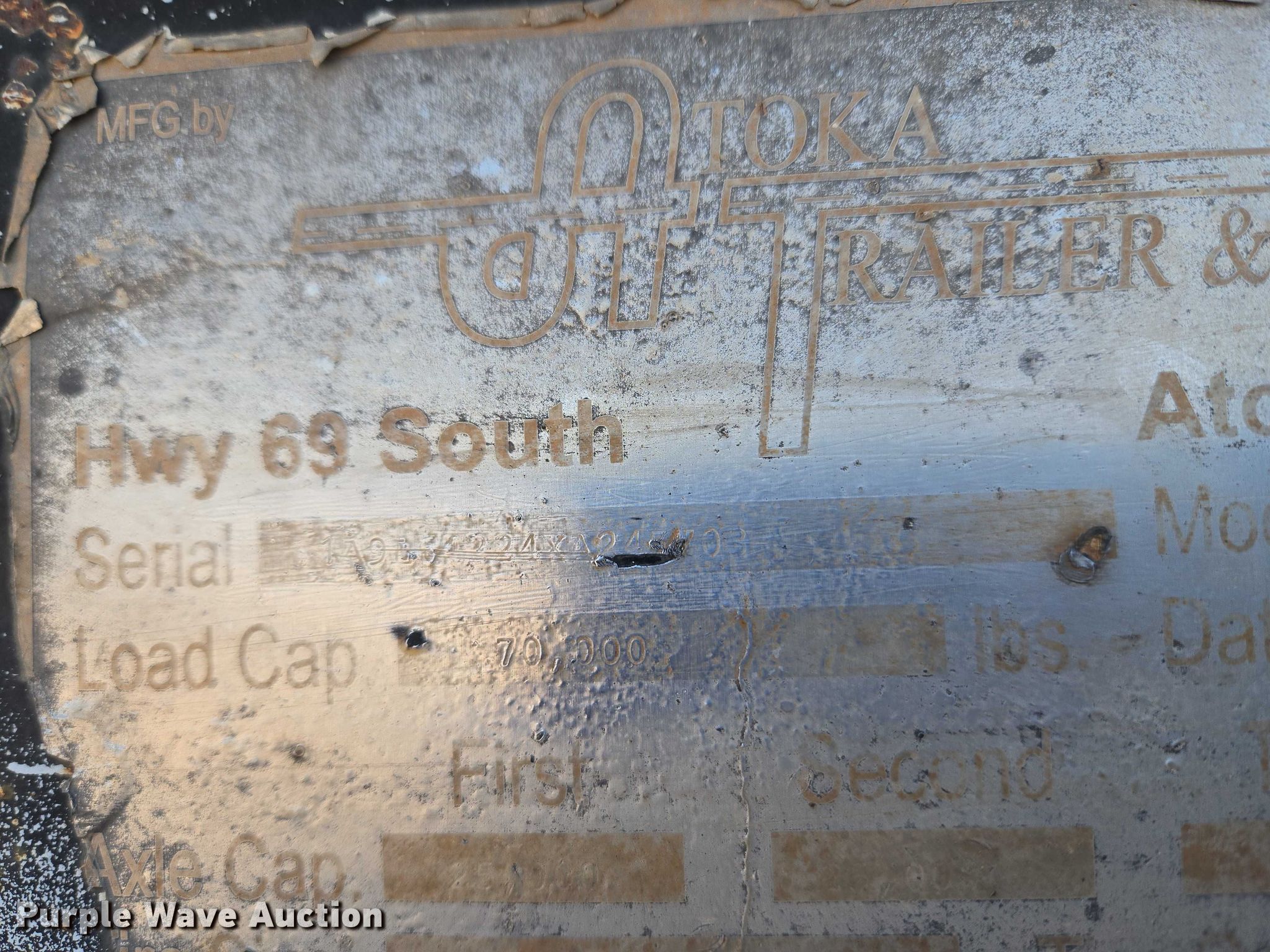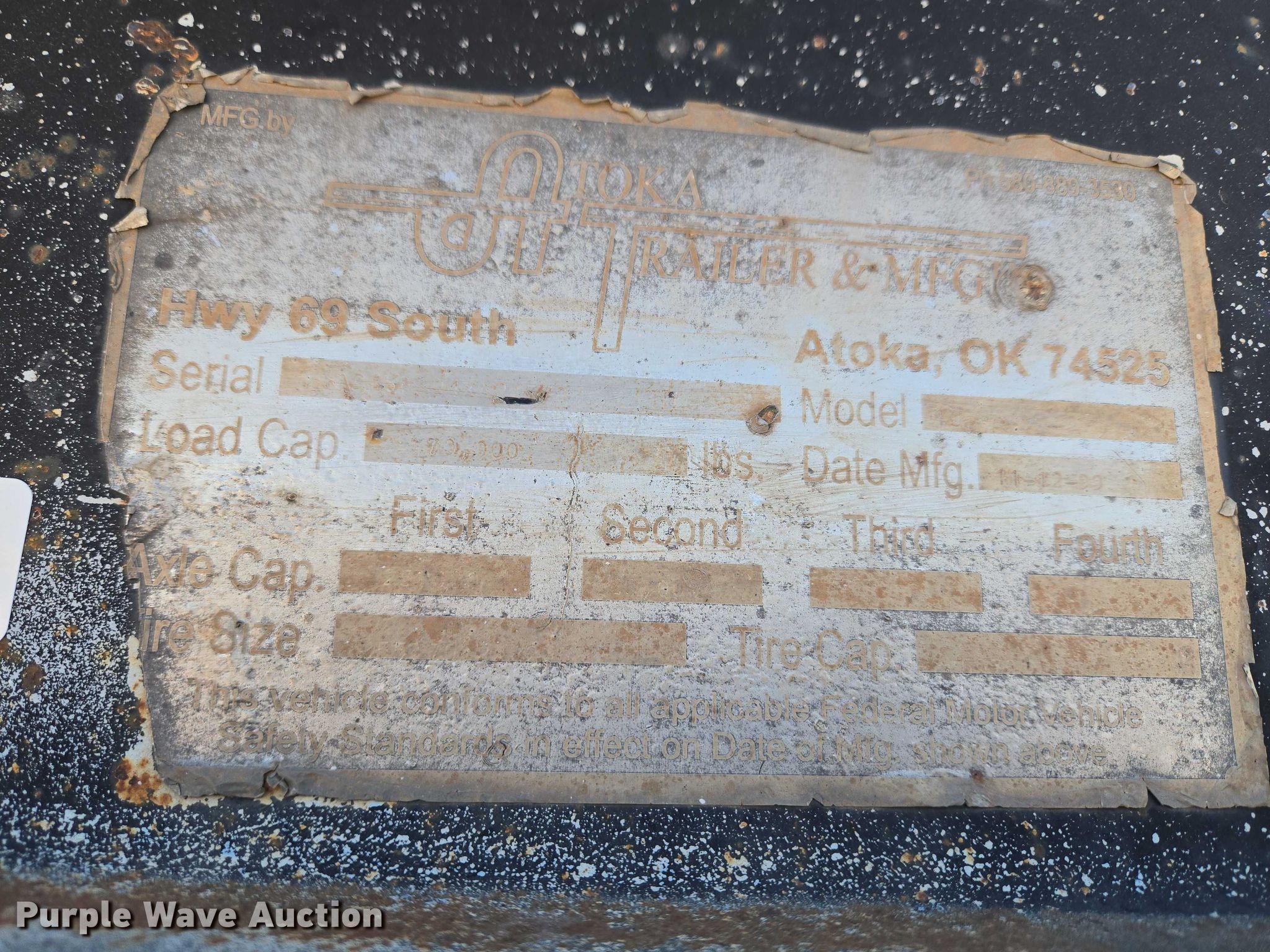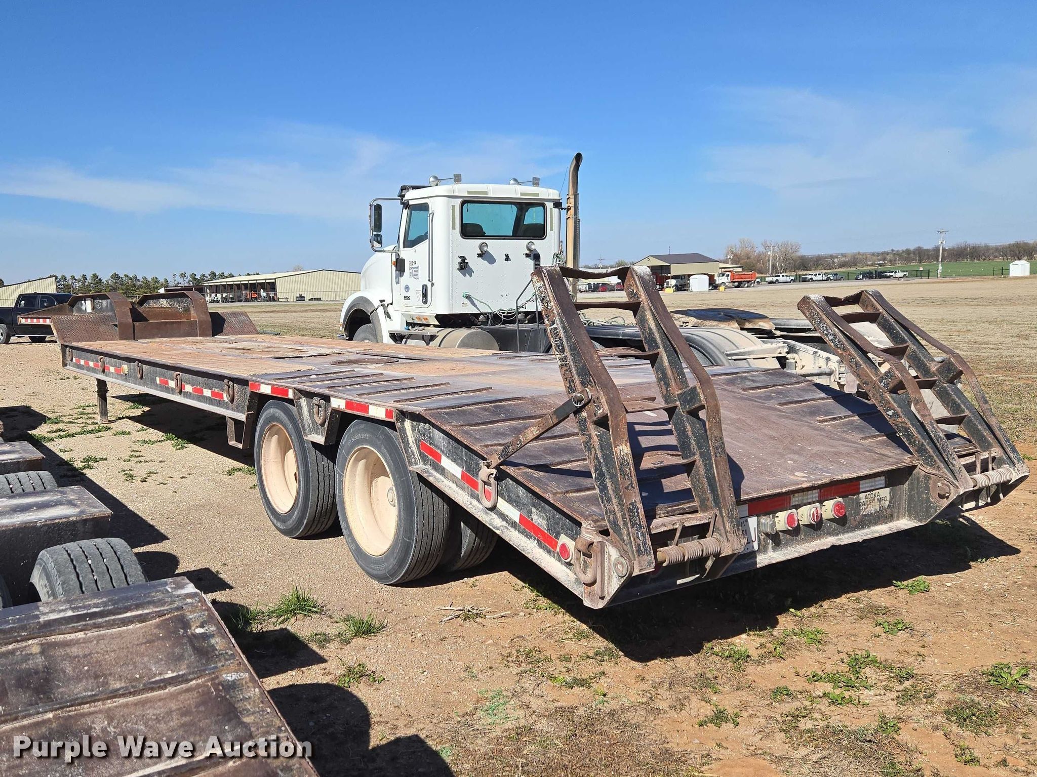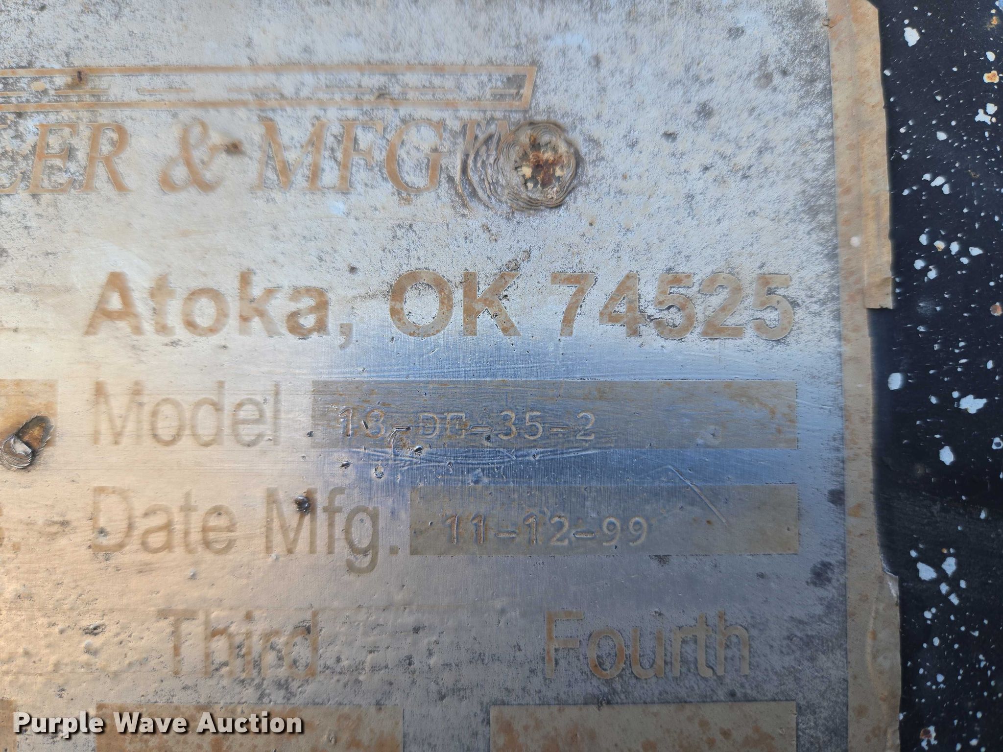 Purple Wave is selling a used Equip. Trailer in Oklahoma. This item is a 1999 Atoka Trailer Mfg. 18-DE-35-2 drop deck equipment trailer with the following: Overall, Length: 43' 9", Width: 8' 6", Deck, Length: 28', Width: 8' 6", Top deck length: 8', Tail length: 4' 4", Ramps: Manual, Length: 4'
