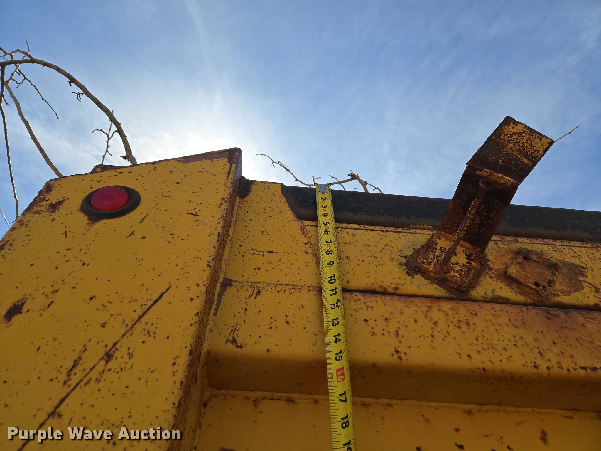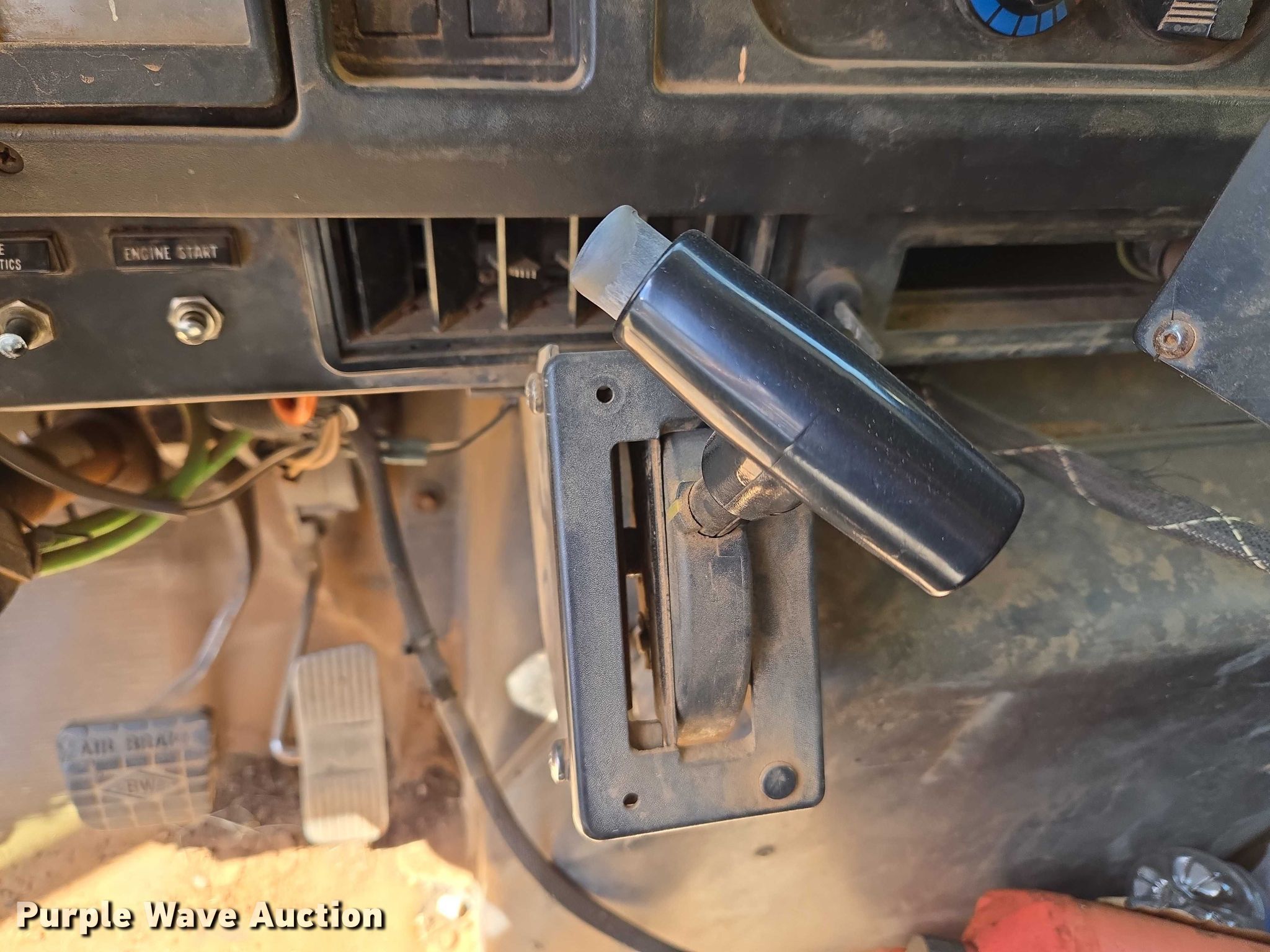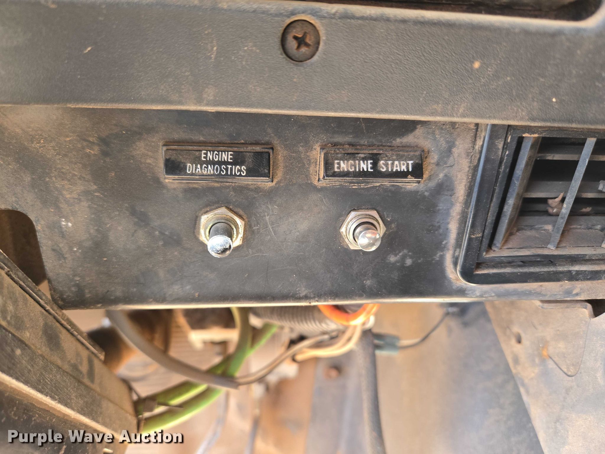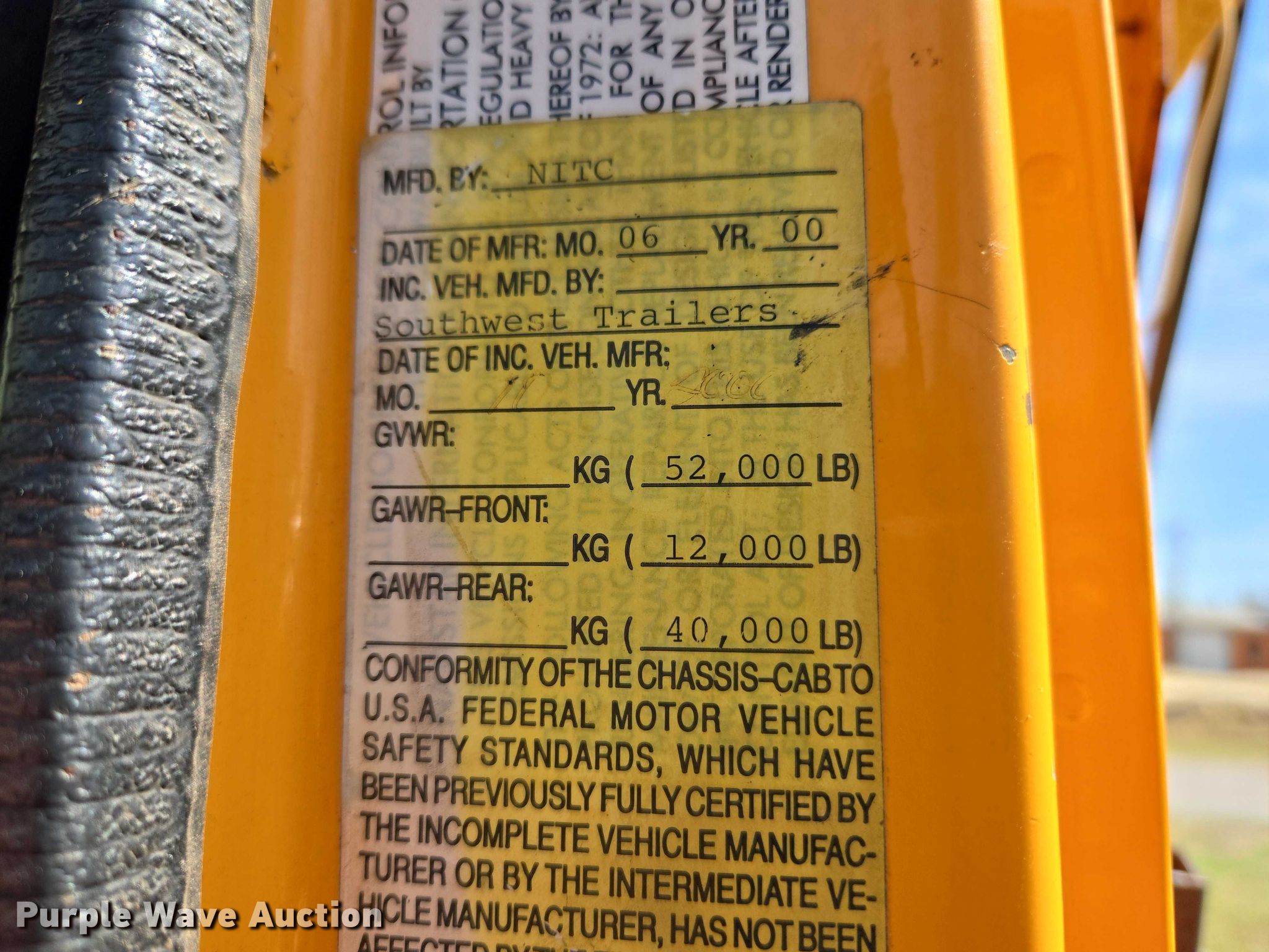 2001 International F-4900 dump truck. Miles: 284,606 on odometer, Hours: 15,832 on meter, VIN: 1HTSHAAR91H332920. Engine International DT466, Displacement: 7.64L, Cylinders: 6, Fuel type: Diesel. Transmission Automatic. Chassis Axles: Tandem, Differential lock: Inter-axle, Suspension: Spring over walking beam, Brakes: Air, Front mount PTO, GVWR: 52,000 lbs FAWR: 12,000 lbs, IAWR: 20,000 lbs, RAWR: 20,000 lbs. Interior AC, Heat, Cruise control. Features Bed Dump bed, McClain Galion 502F, Serial: B-12849, Length: 14' 5", Width: 8' 2", Capacity: 13.6 cu.yd., Side height: 50", Bed type: Steel, Roll tarp, Ram: Single, End gate: Manual. Tires Size: 11R22.5. Notes Batteries missing, Tailgate missing, Oil and transmission fluid leak, AC issues, blows hot, Bed contents will be removed prior to auction, Non-operational unit Unit must be towed or hauled. Oklahoma title. Seller is a government entity who will be assigning and distributing the title. Please contact the seller for distribution questions. Town of Tipton. Oklahoma 5. Tipton, OK 00000