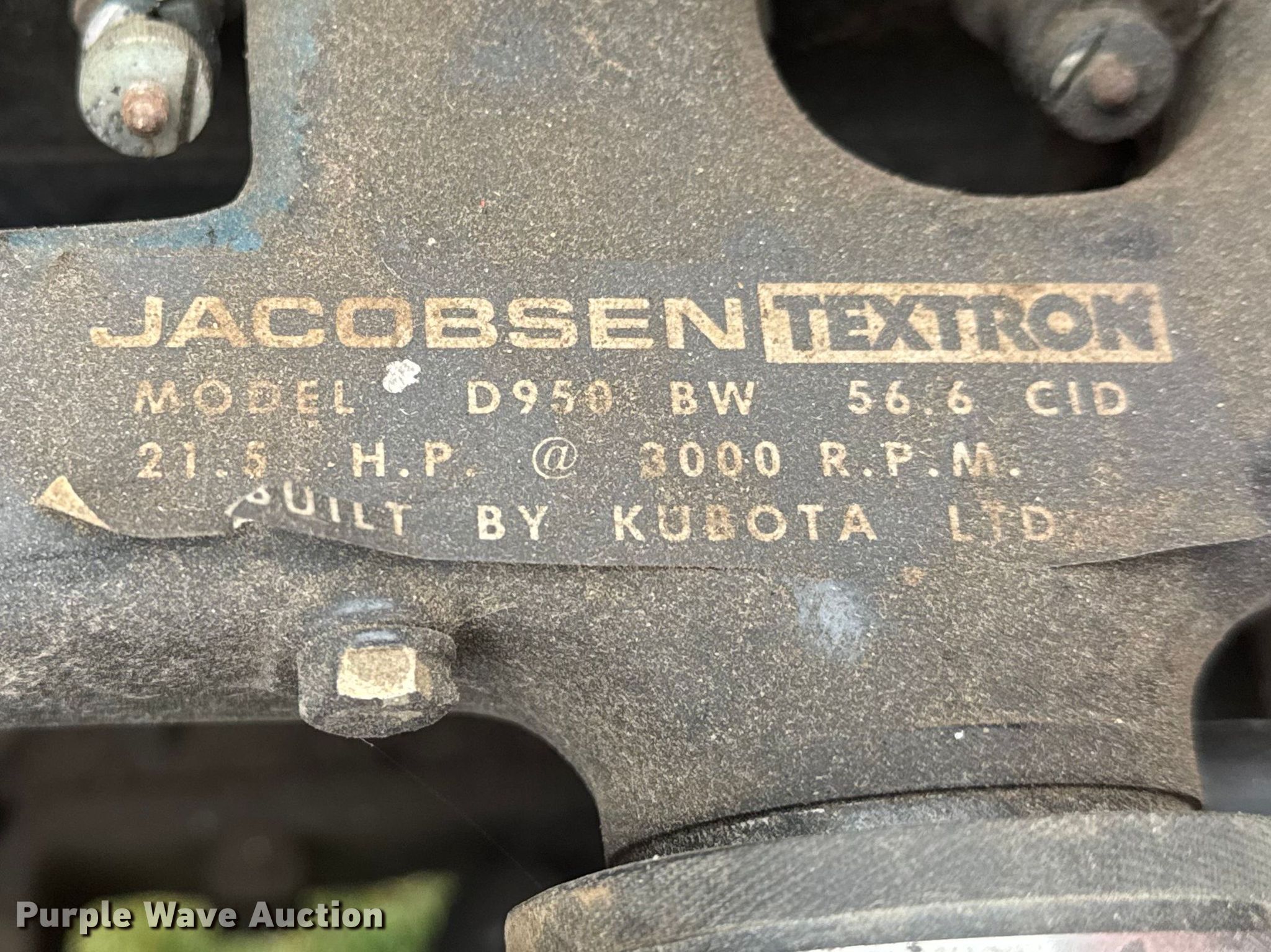 Jacobsen Turfcat DW224 flail mower. Hours: 3,291 on meter, Serial: 66074 1800. Engine Kubota D950, Cylinders: 3, Fuel type: Diesel. Transmission Hydrostatic. Features Width: 62". Tires Front: 23x10.50-12, Rear: 16x7.50-8. City of McPherson. McPherson, KS 67460
