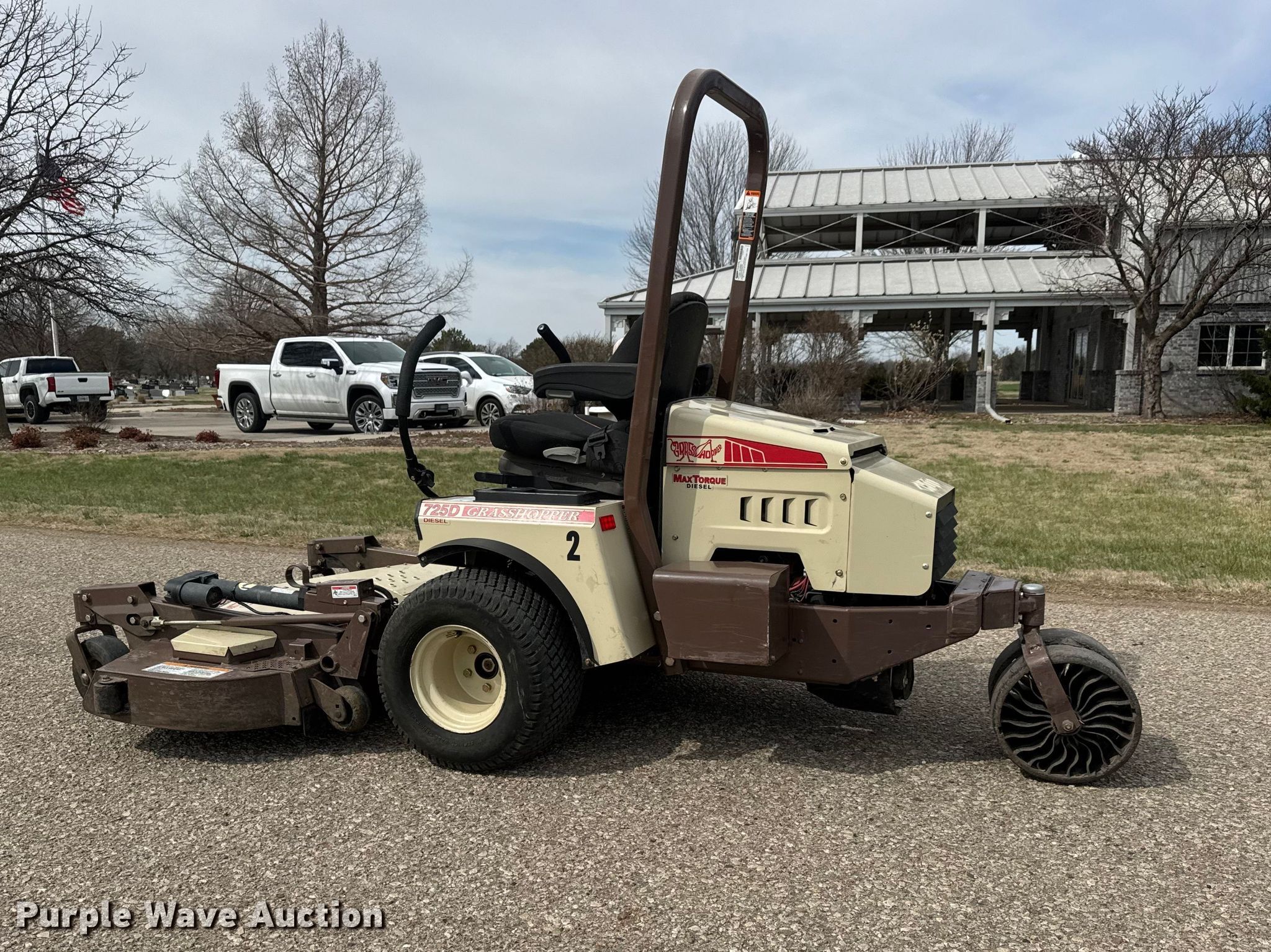 Purple Wave is selling a used Commercial Turf Mower in Kansas. This item is a 2019 Grasshopper 725D T6 ZTR lawn mower with the following: Hours: 965 on meter, Cutting width: 61", Serial: 6915488