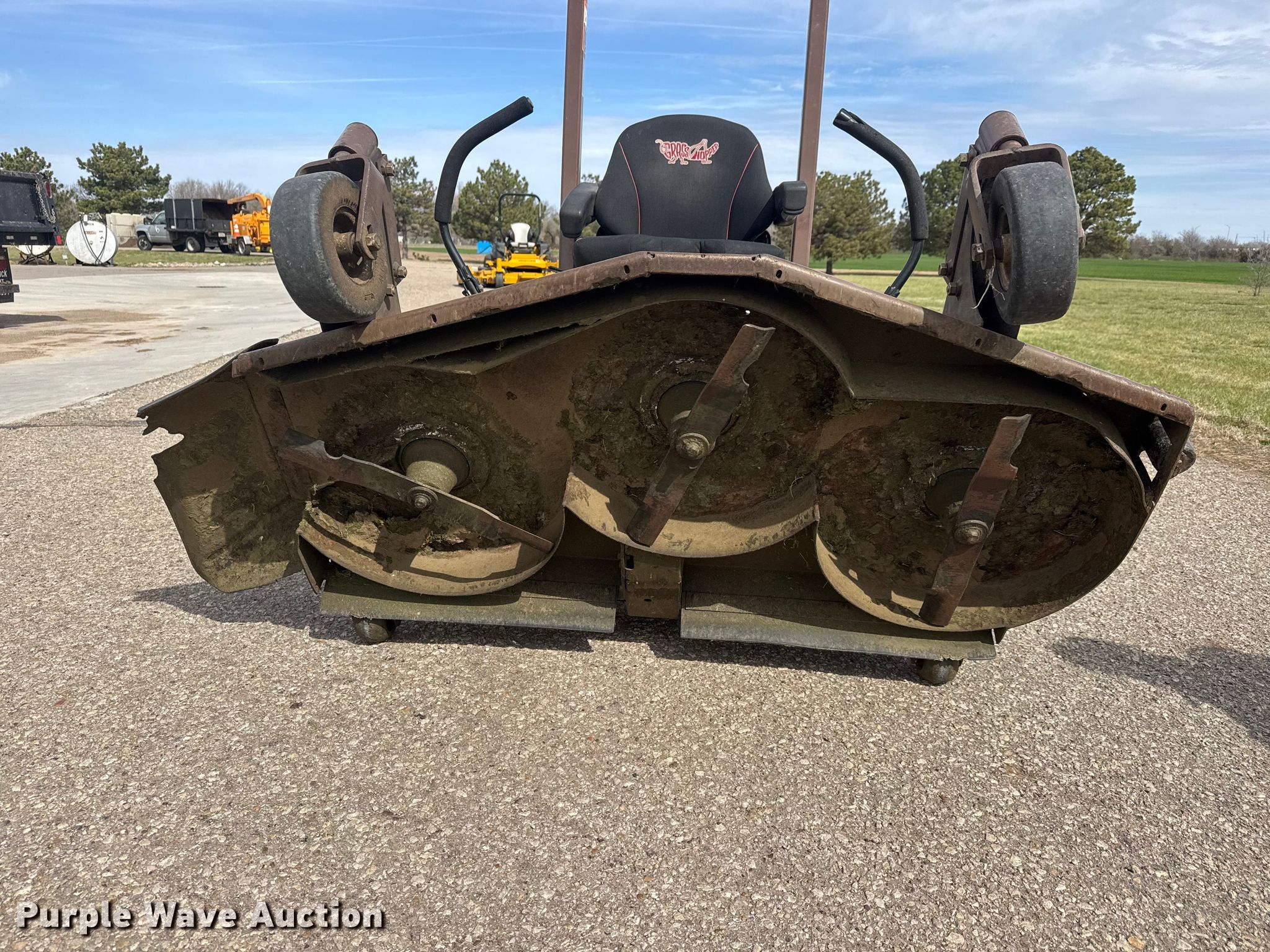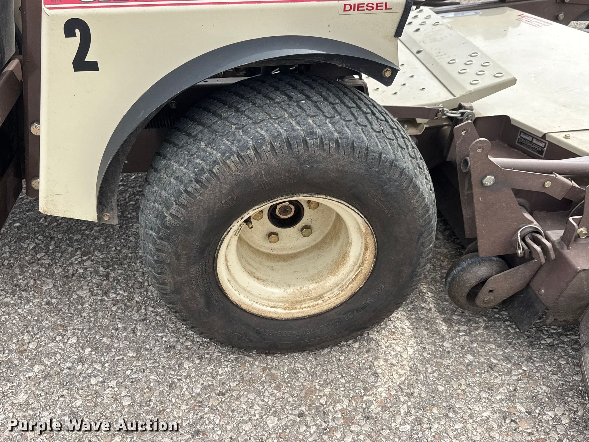 2019 Grasshopper 725D T6 ZTR lawn mower. Hours: 965 on meter, Cutting width: 61", Serial: 6915488. Engine Kabota D902 l–EFO1, Displacement: 0.898L, Cylinders: 3, Fuel type: Diesel. Transmission Hydrostatic. Operators station OROPS. Features Hydraulic front deck lift, Flip up front deck, Mulching kit. Tires Front: 22x11.00-10, Rear: Solid. Notes Spare tires wheels included. City of McPherson. McPherson, KS 67460