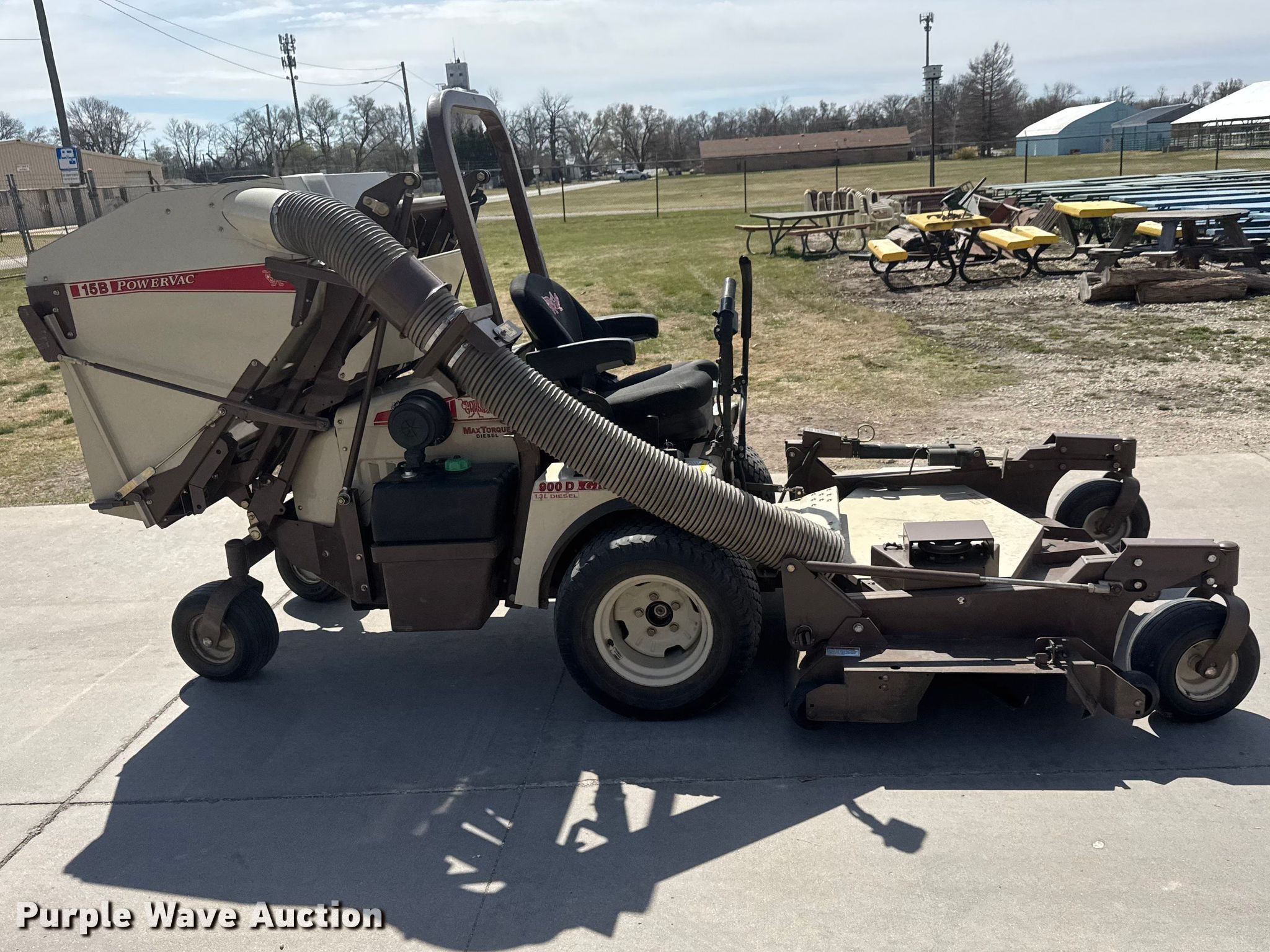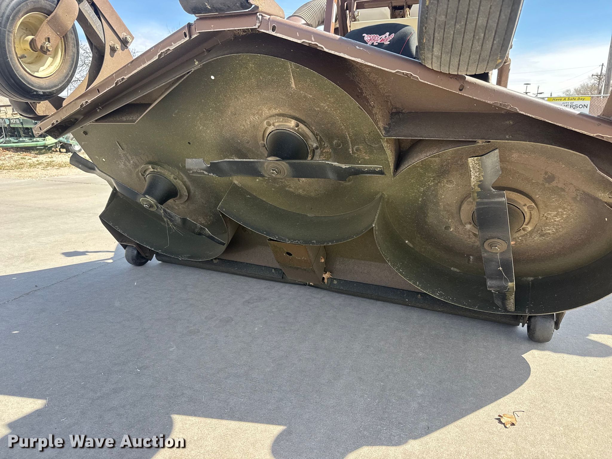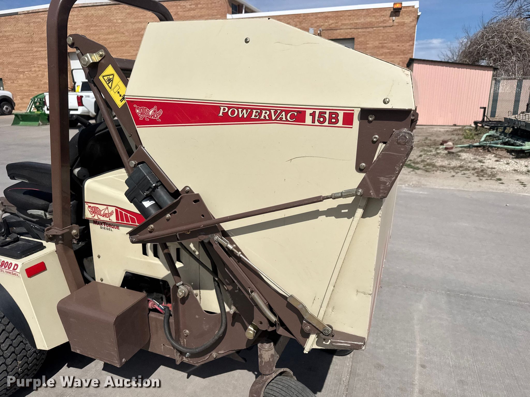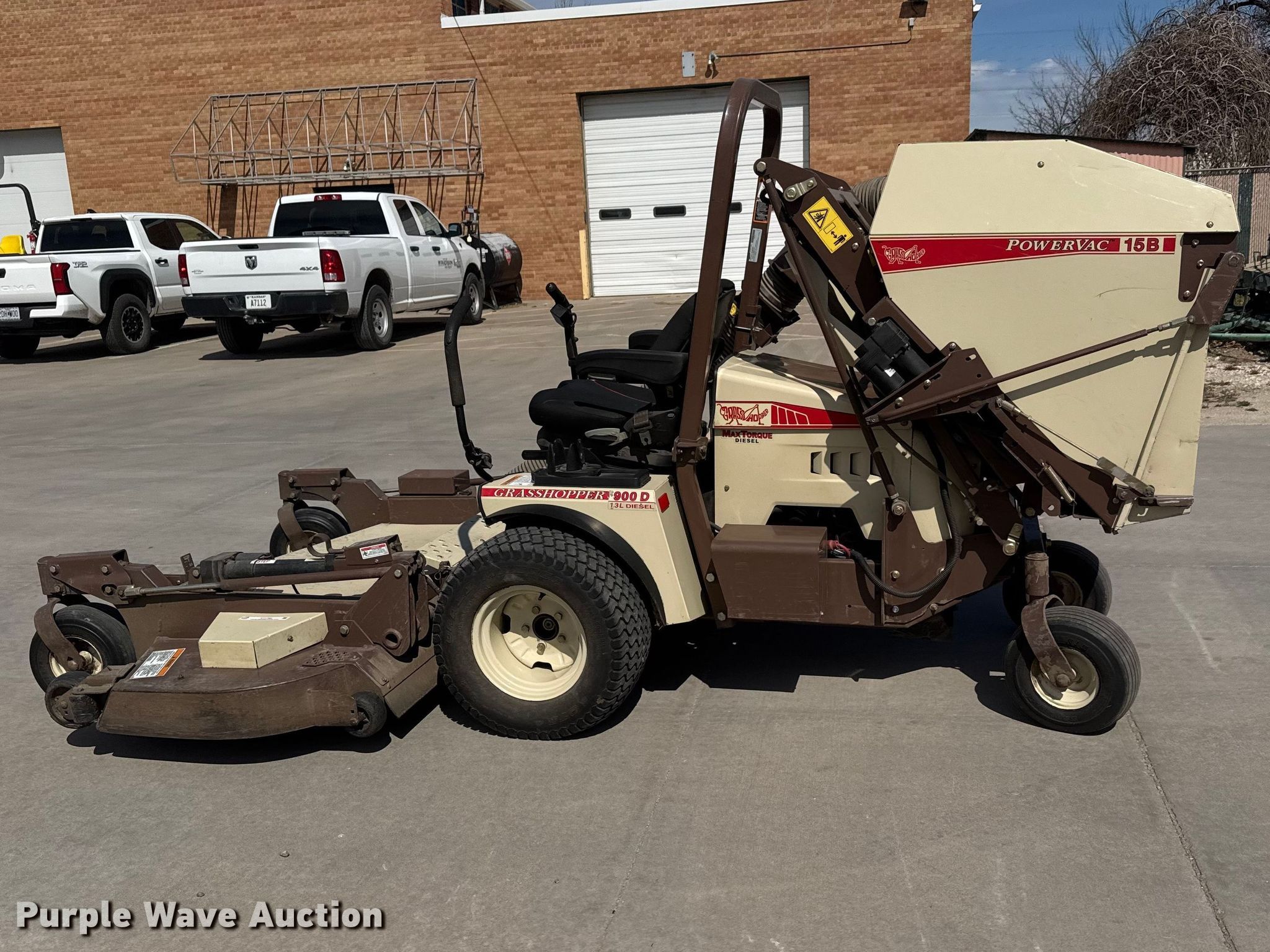 2018 Grasshopper 900D 1.3 ZTR lawn mower. Hours: 1,234 on meter, Cutting width: 72", Serial: 6911300. Engine Kabota 01305-EF03, Displacement: 1.3L, Cylinders: 3, Fuel type: Diesel. Transmission Hydrostatic. Operators station OROPS. Features Grass bagger, Grasshopper Powervac 15B, Hydraulic front deck lift, Mulch kit, Cab. Tires Front: 24x12.00-12, Rear: 13x6.50-6. City of McPherson. McPherson, KS 67460