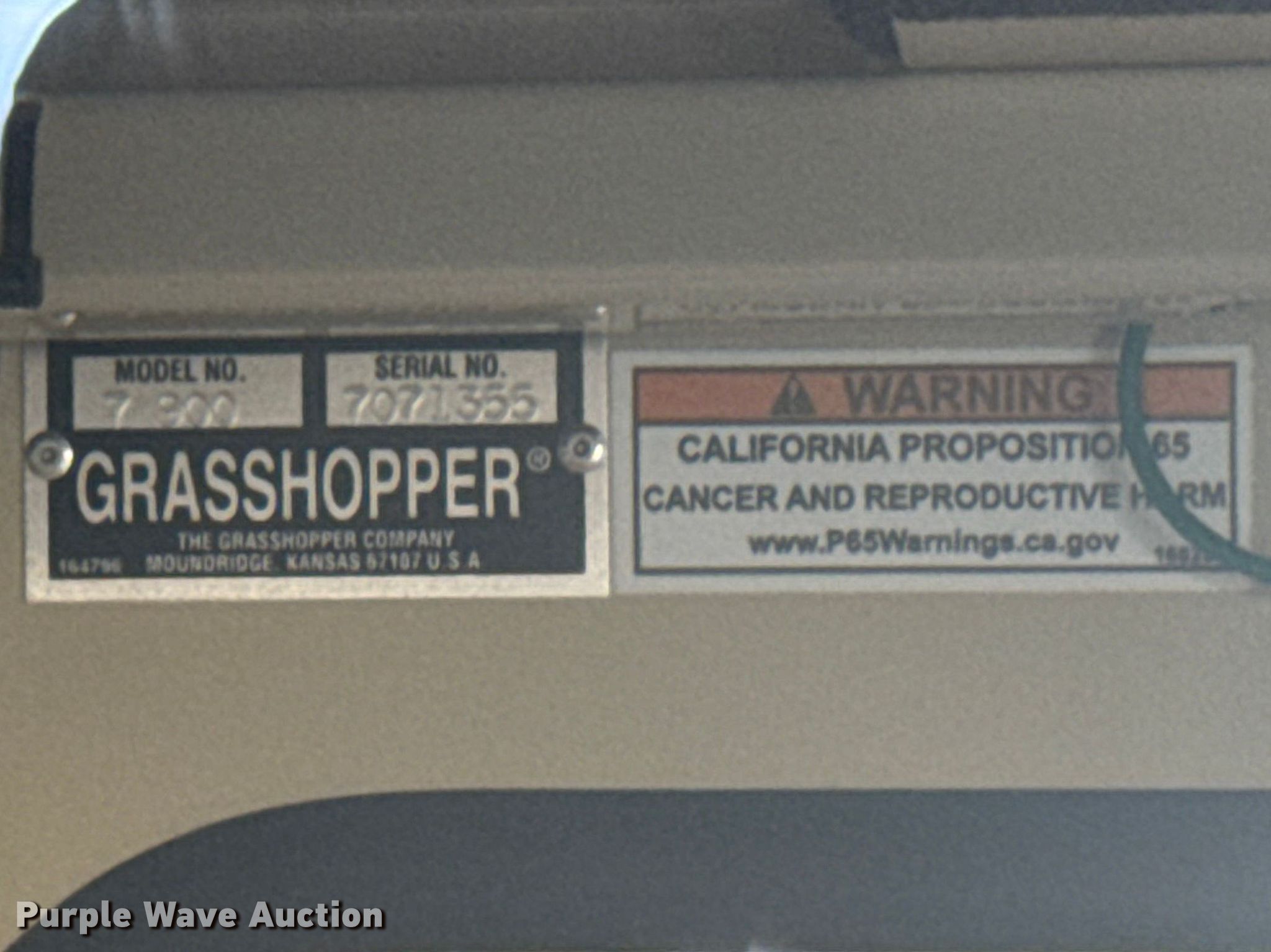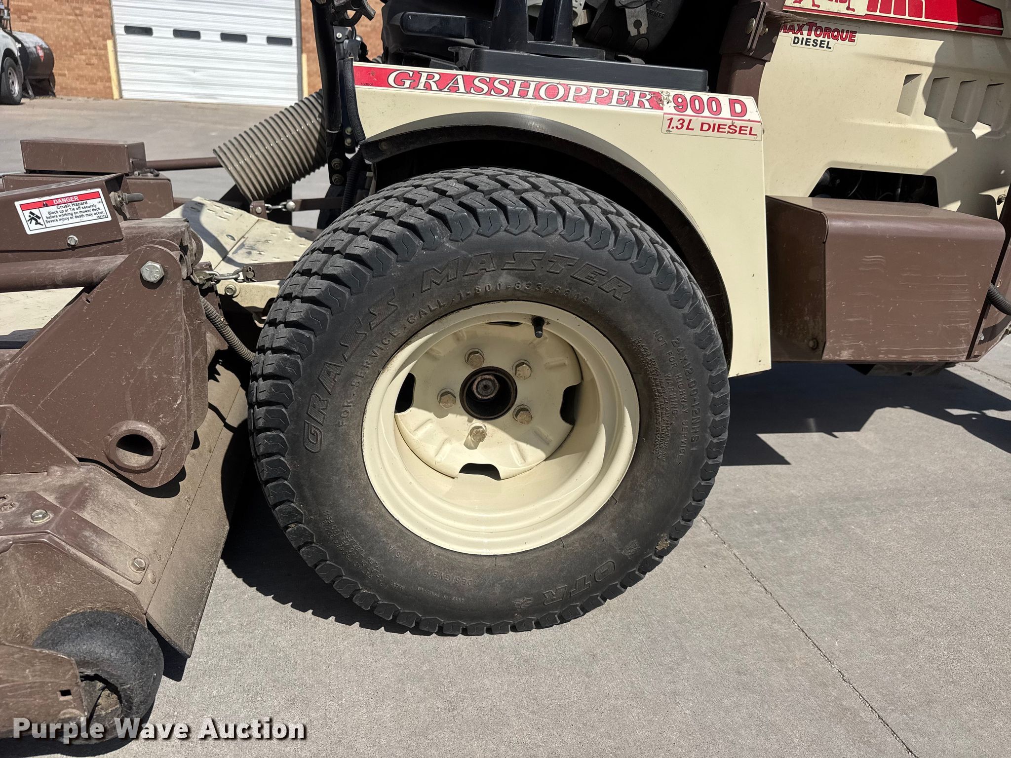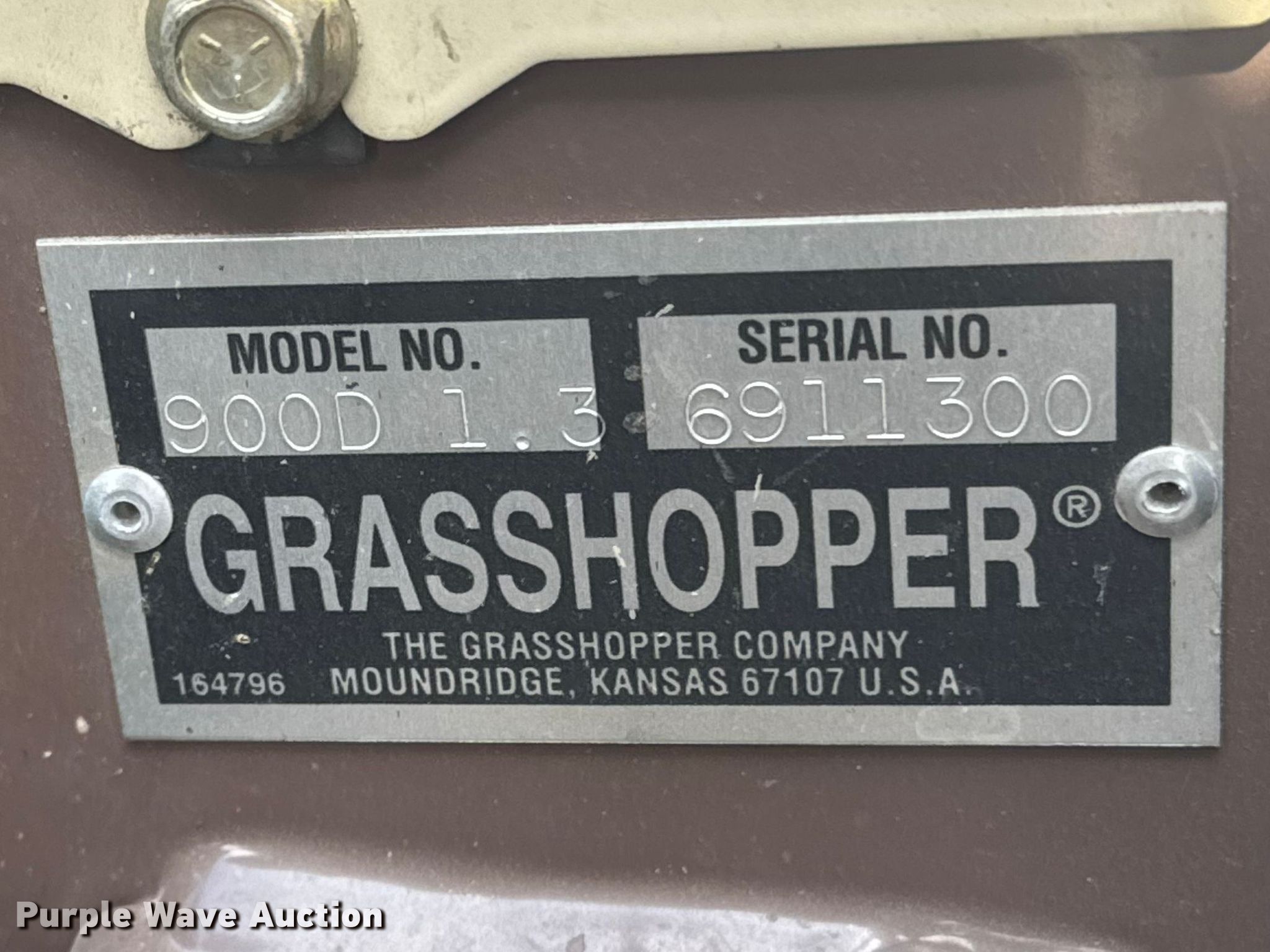Purple Wave is selling a used Commercial Turf Mower in Kansas. This item is a 2018 Grasshopper 900D 1.3 ZTR lawn mower with the following: Hours: 1,234 on meter, Cutting width: 72", Serial: 6911300
