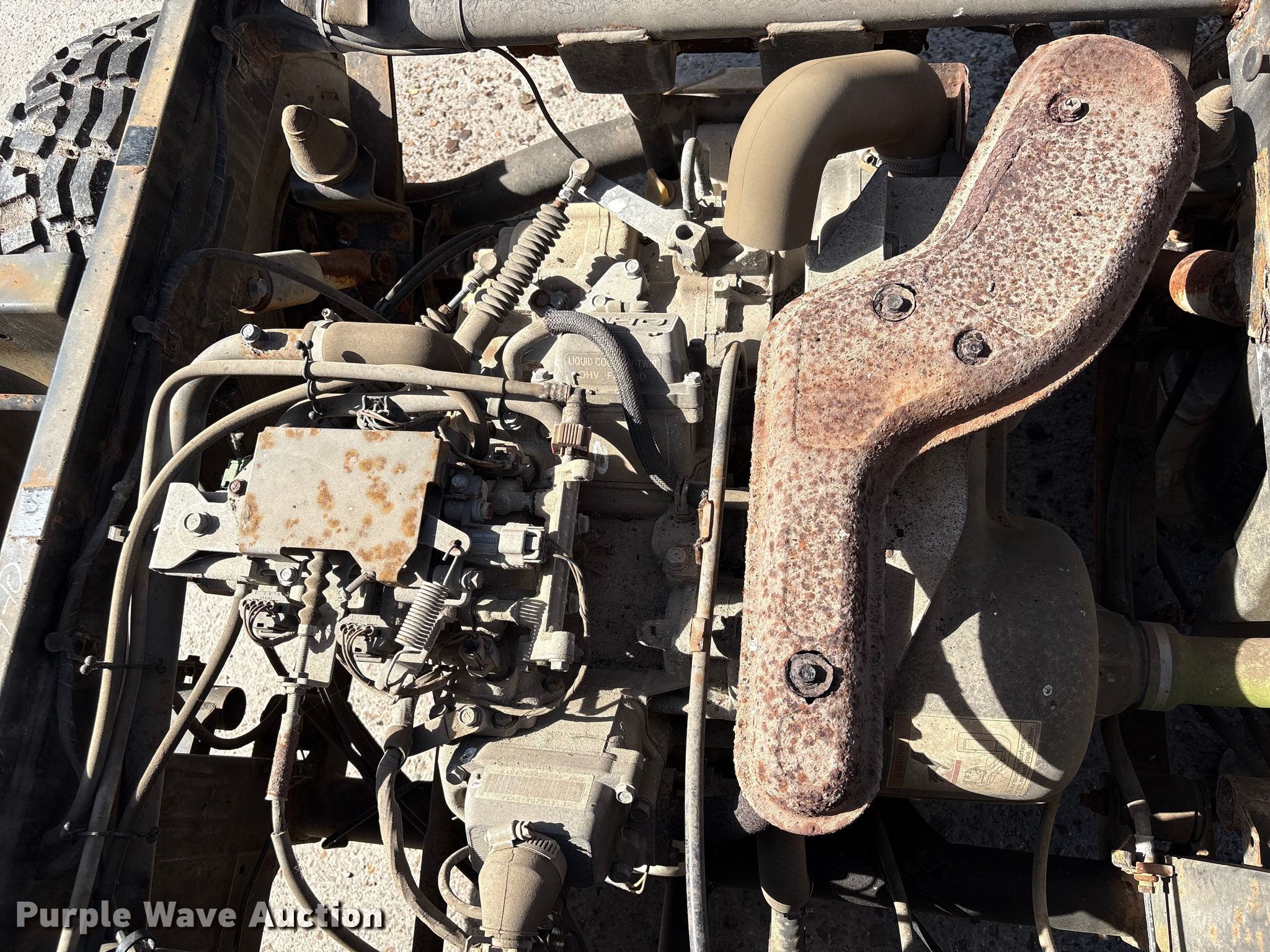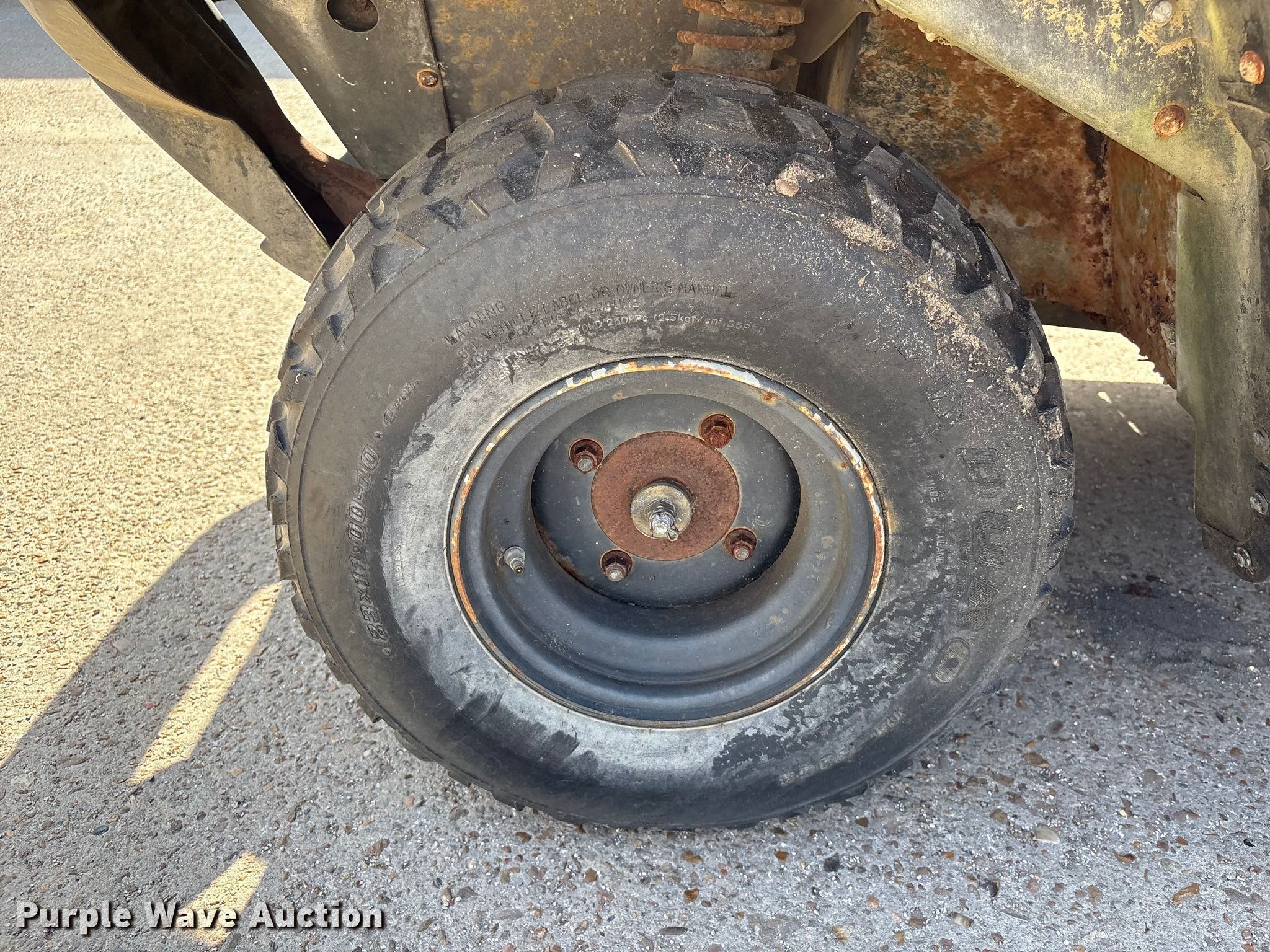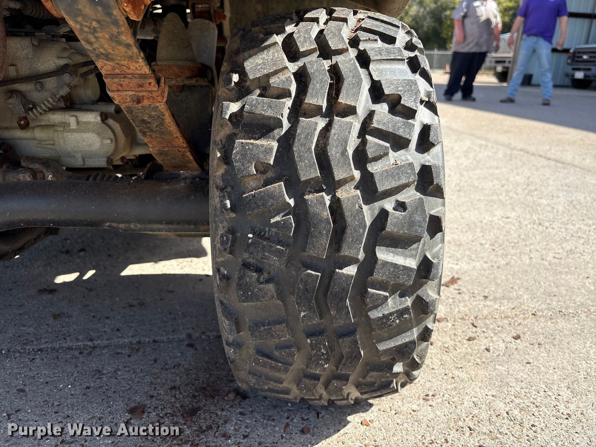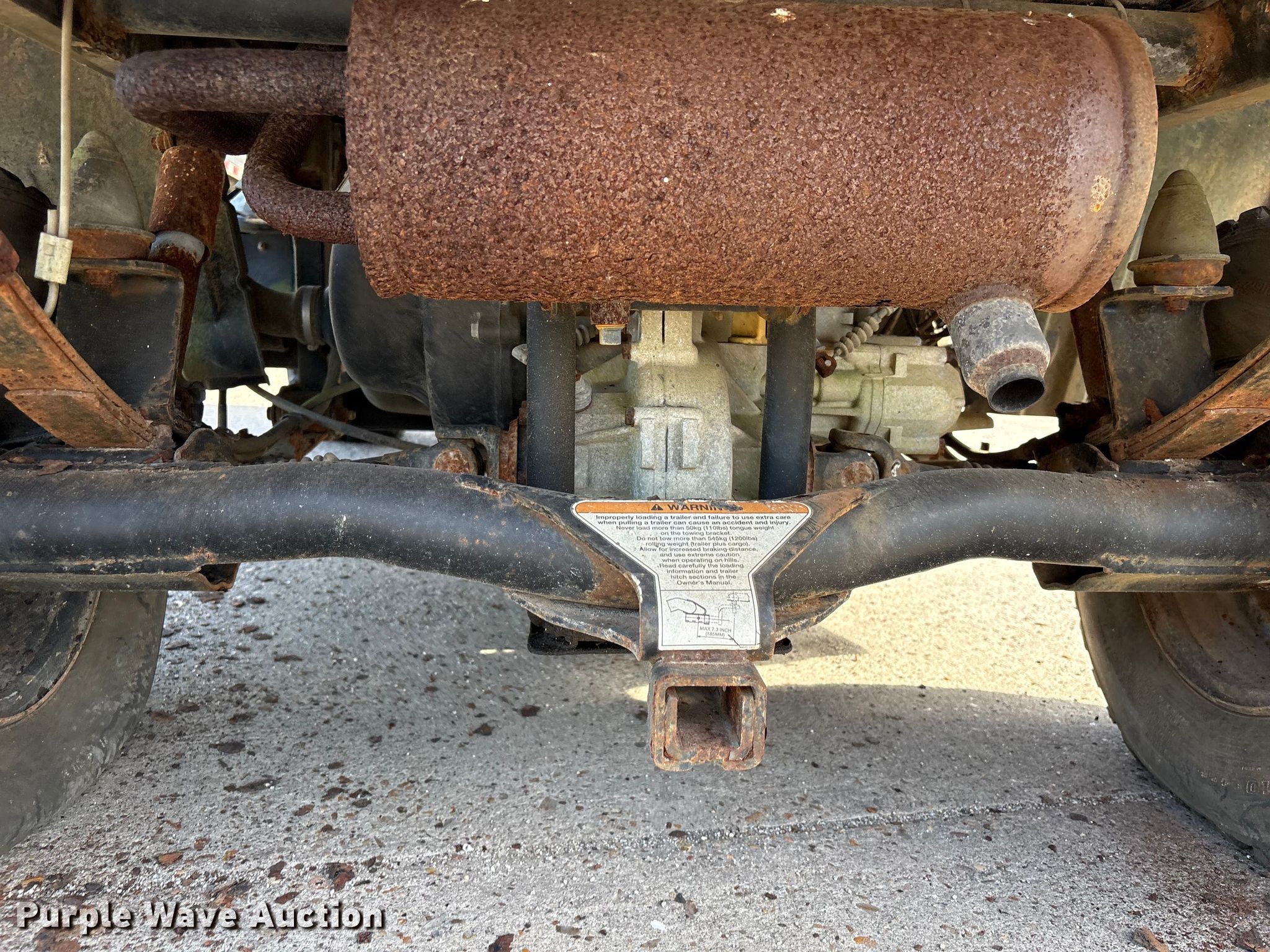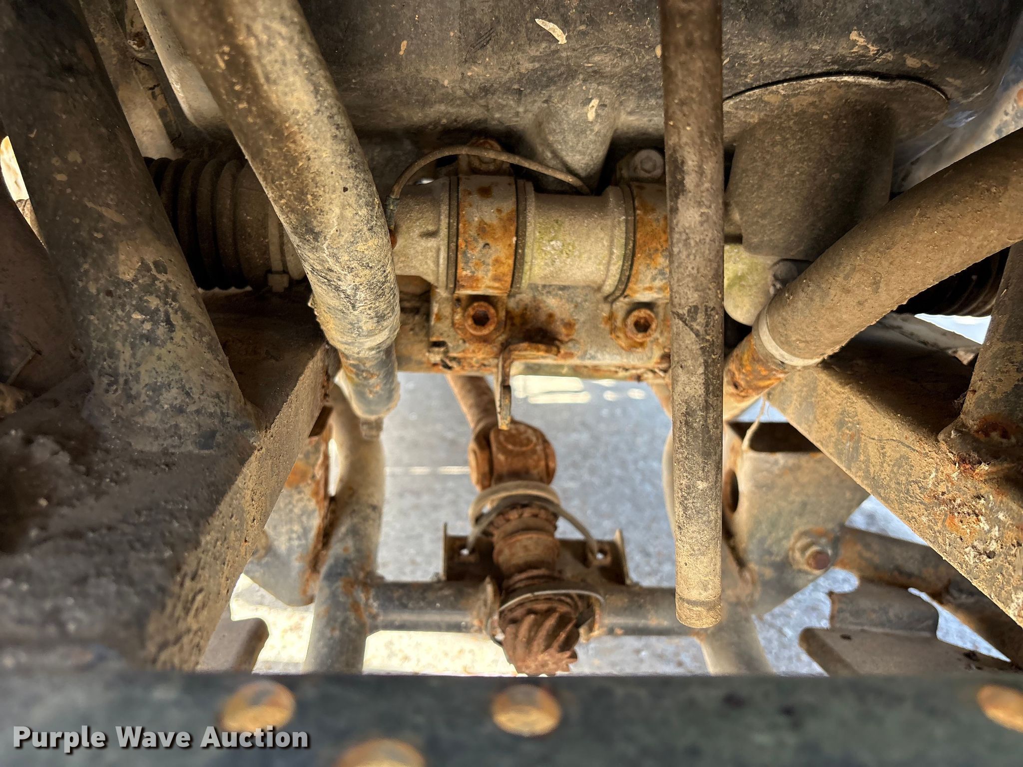 2012 Kawasaki Mule KAF620M utility vehicle. Hours: Unknown. Engine Cylinders: 1, Fuel type: Gas. Transmission Automatic. Chassis Four wheel drive/ All wheel drive. Features Receiver hitch, Dump bed 48" L x 54" W, Dump bed type: Manual. Tires Front: 23x11.00-10, Brand: Duro. Notes Flat tire, Dash warning indicator: Oil Pressure Light, Jump start required during on-site data collection, Front differential missing, Front axle missing, Non-operational steering, Non-operational brakes, Rust damage. Transfer of ownership documentation will be a bill of sale. City of Alvin. Alvin, TX 77511