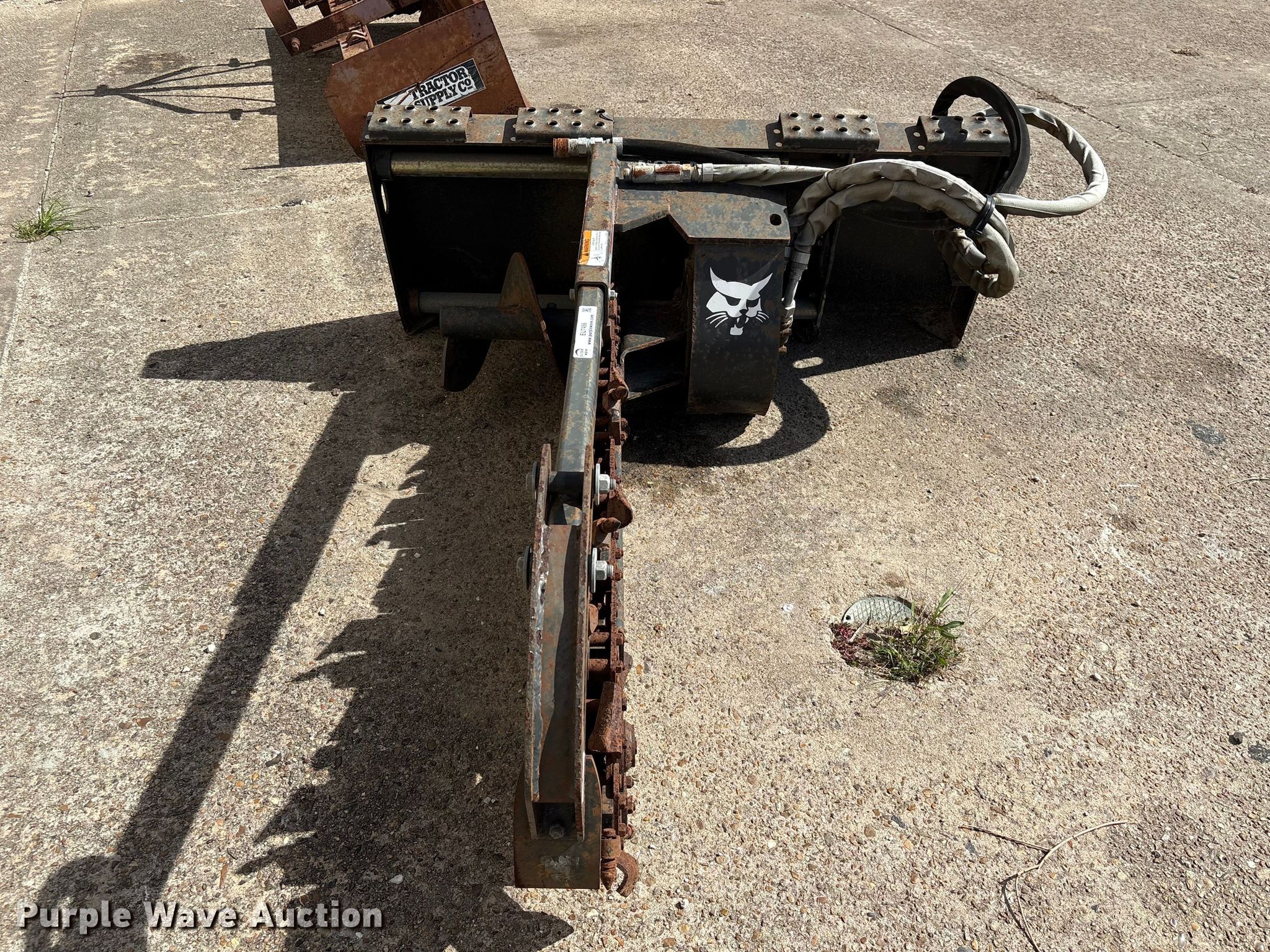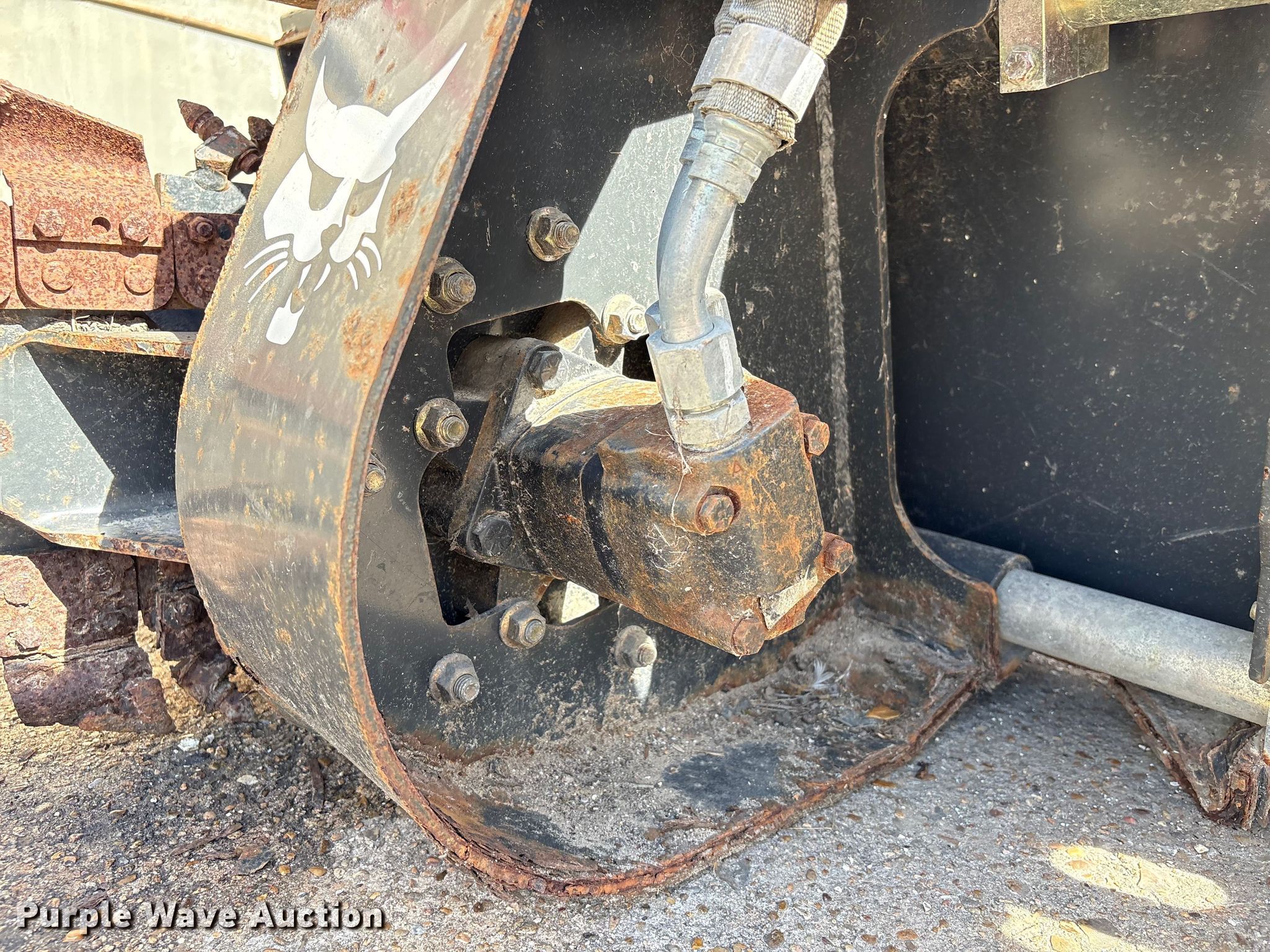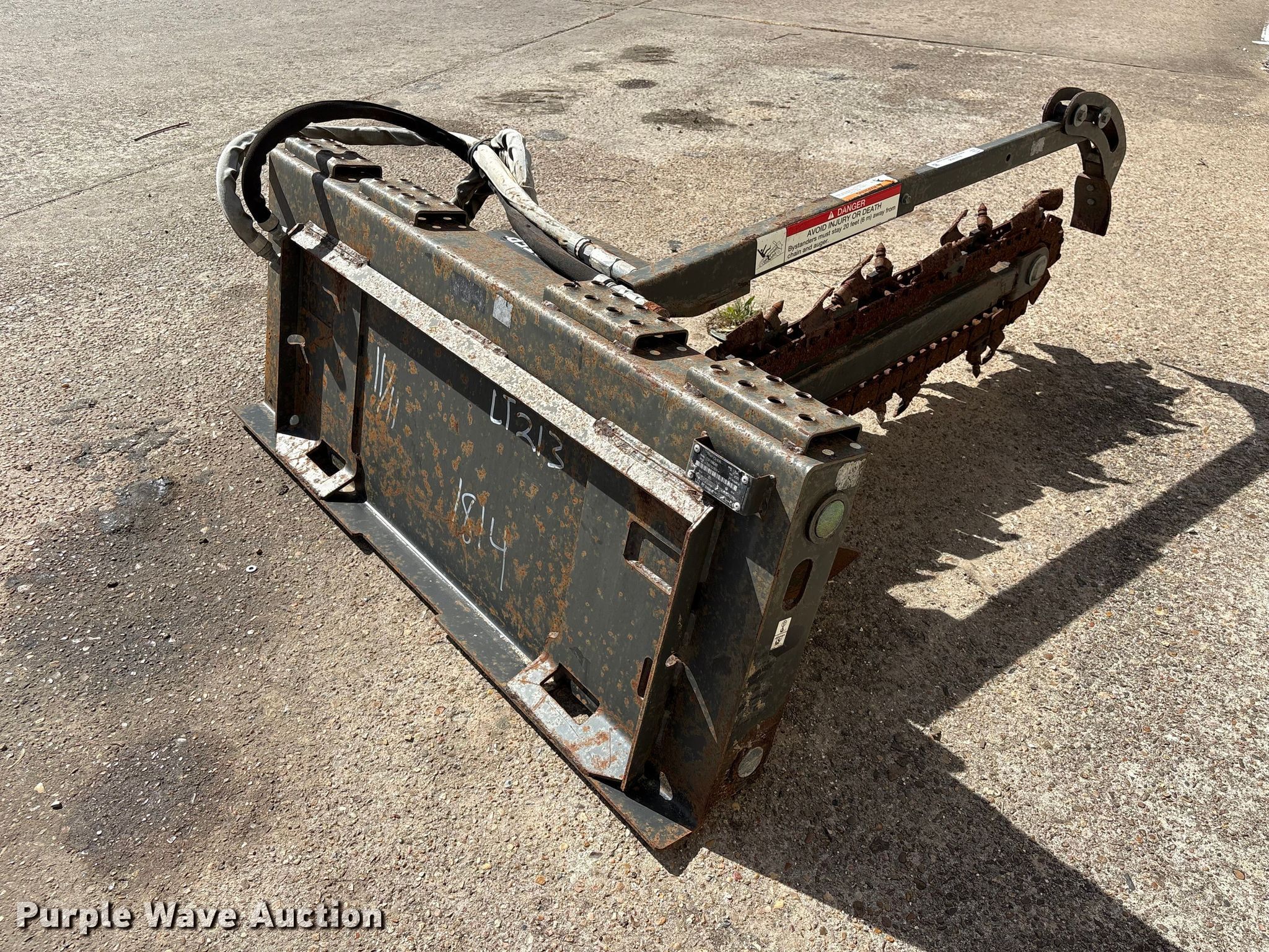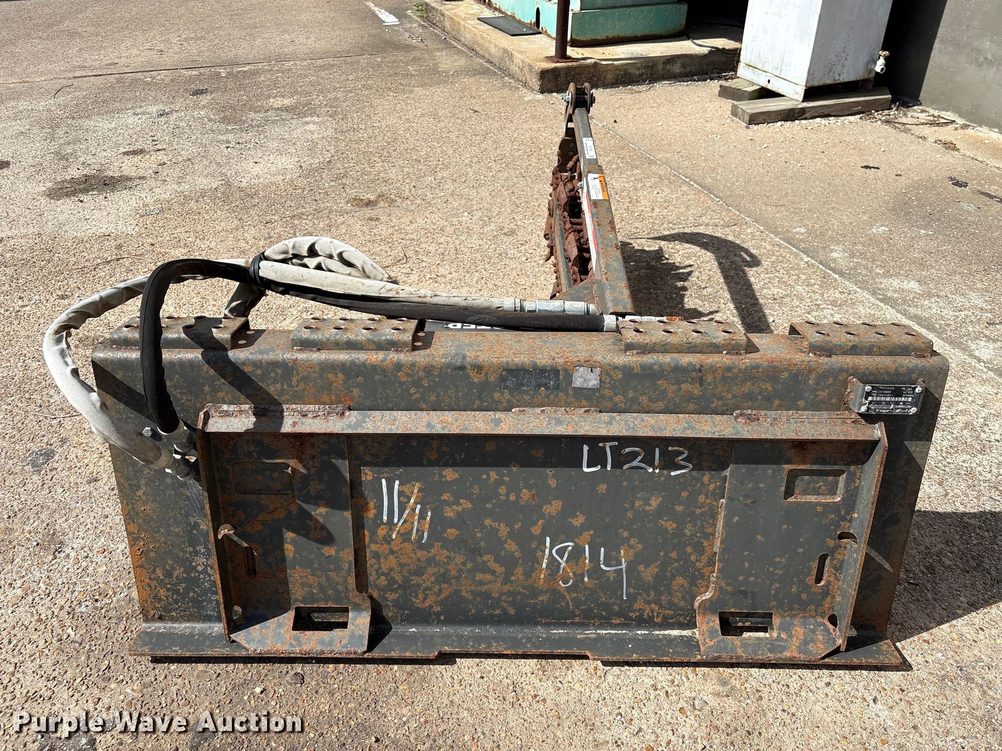 Purple Wave is selling a used Skid Steer Attach. in Texas. This item is a 2013 Bobcat LT213 skid steer trencher with the following: Serial: 045301814, Teeth: Bolt-on, Estimated dig depth: 48", Cutting width: 5", Teeth: Dirt, Manual crumber