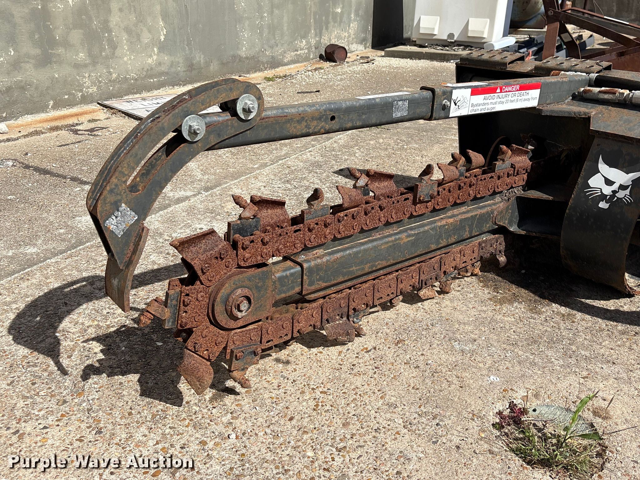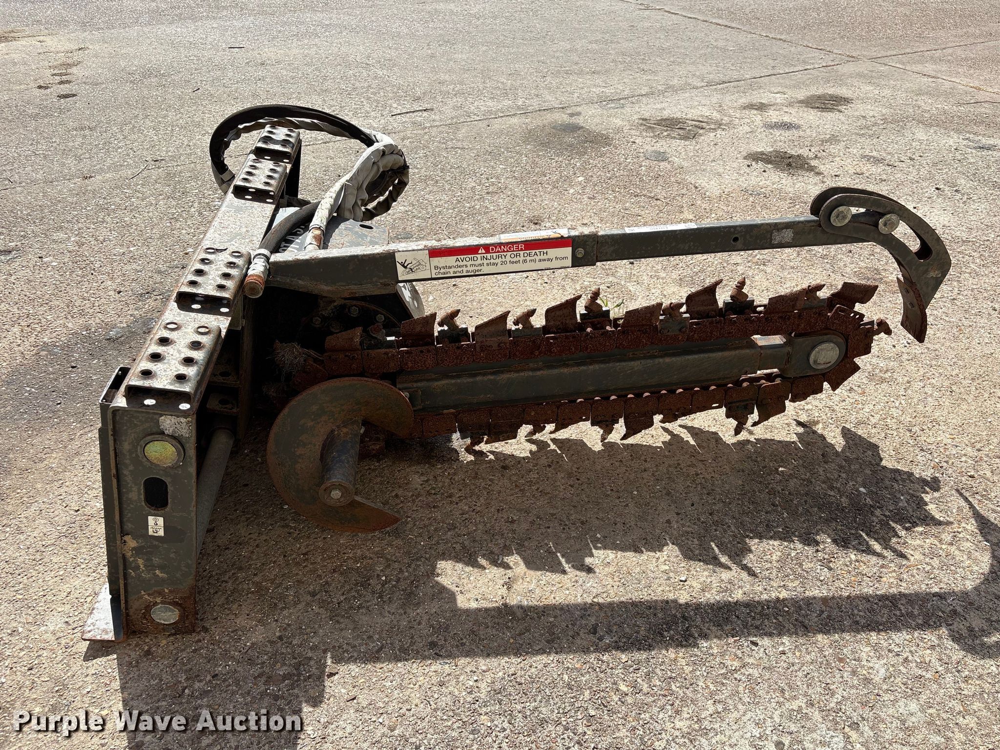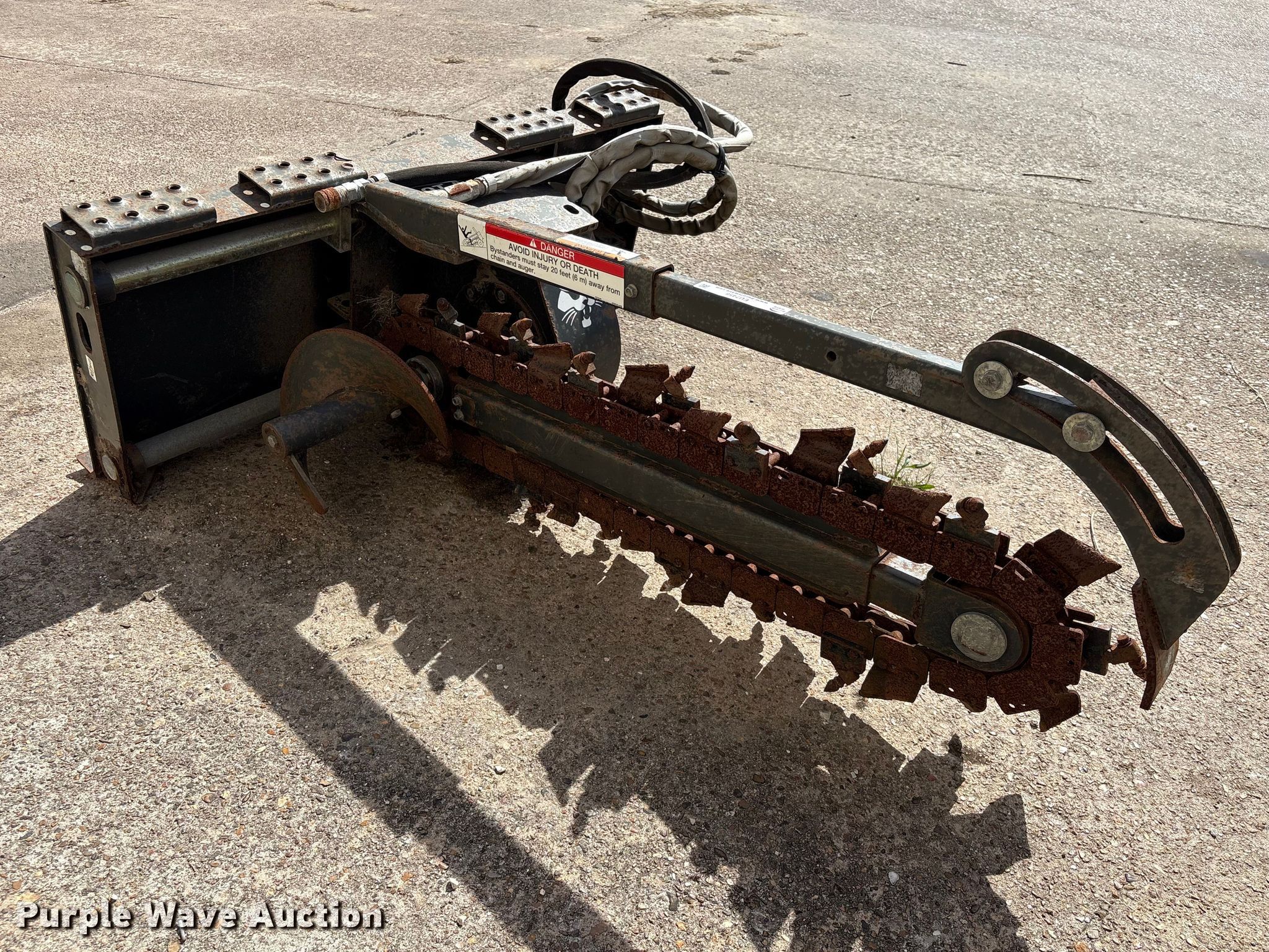 Purple Wave is selling a used Skid Steer Attach. in Texas. This item is a 2013 Bobcat LT213 skid steer trencher with the following: Serial: 045301814, Teeth: Bolt-on, Estimated dig depth: 48", Cutting width: 5", Teeth: Dirt, Manual crumber