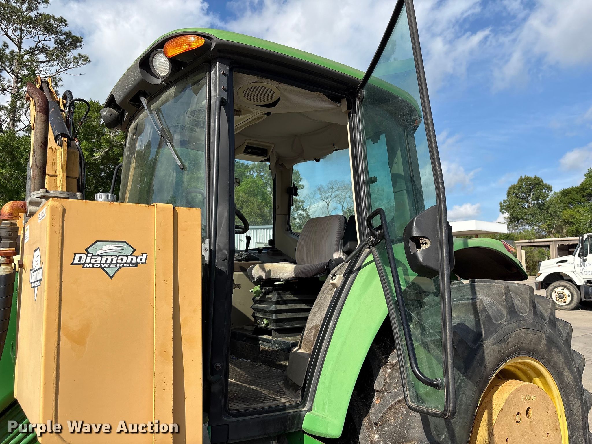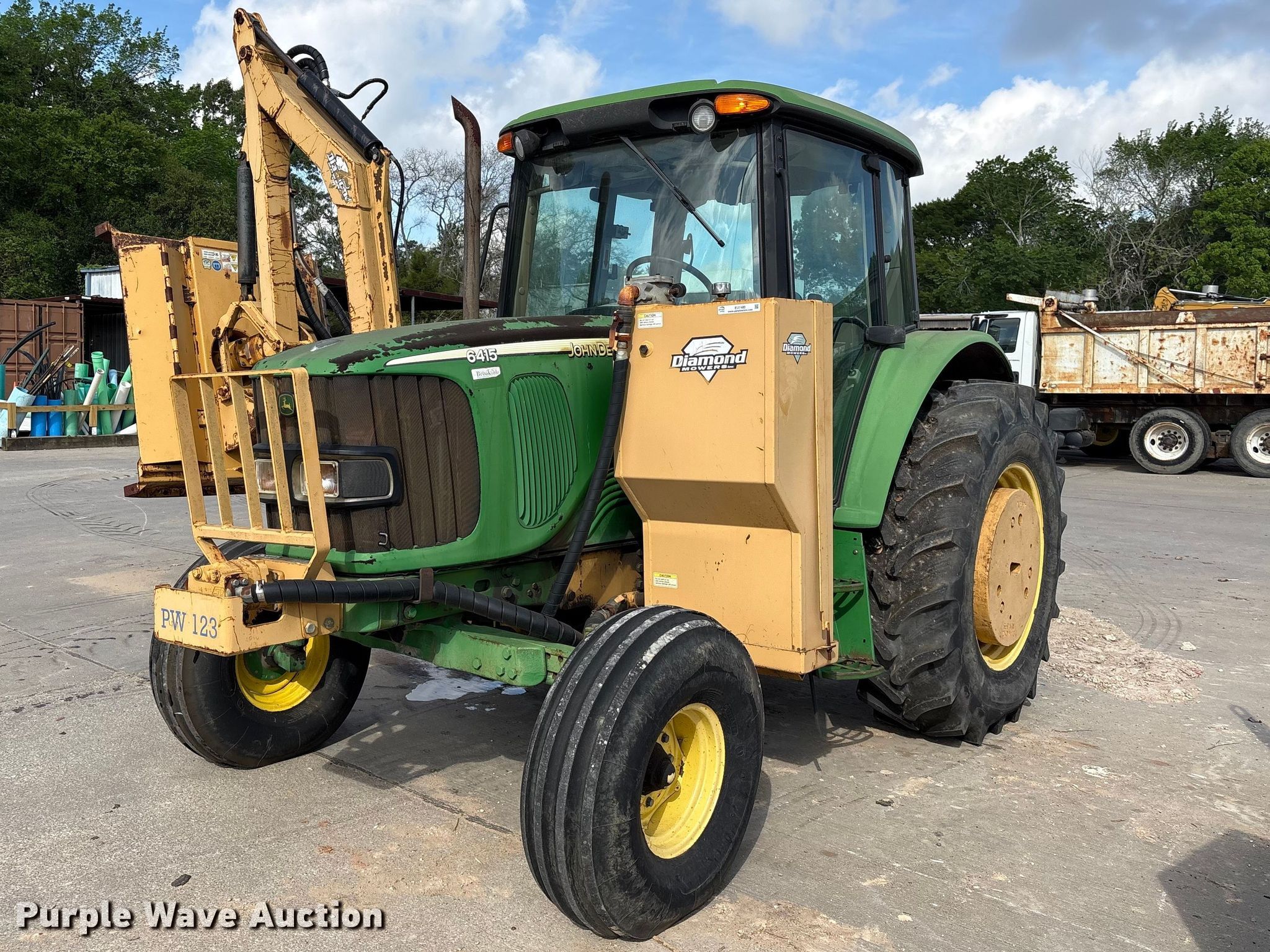 John Deere 6415 tractor. Hours: 6,312 on meter. Engine John Deere, Cylinders: 4, Fuel type: Diesel. Transmission Powershift, 16F - 16R, Left-hand reverser, Differential lock. Operators station AC, Heat. Features PTO: 540, Three point, Rear: 1, Diamond side boom rotary mower Width: 48". Tires Front: 11.00-16, Rear: 460/85R34, Wheel weights: 3. Notes AC issues, may need recharged, Hydraulic leak. City of Friendswood. Friendswood, TX 77546