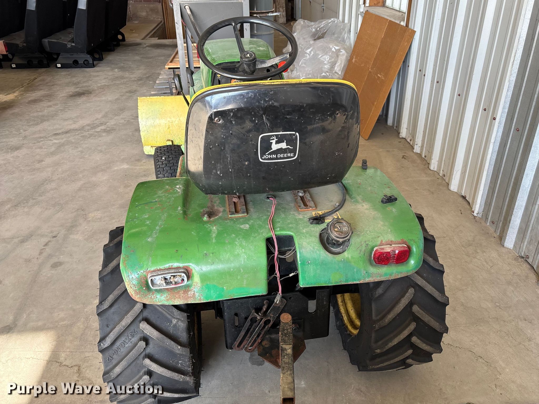 John Deere 317 lawn tractor. Serial: C317L 192138 M, Unit #: 509. Engine Fuel type: Gas. Transmission Hydrostatic. Features Front blade Width: 54", John Deere U054K, John Deere 50 wagon Tire size: 13x5.00-6. Tires Front: 16x6.50-8, Rear: 23x10.50-12, Wheel weights. Topeka, KS 66603