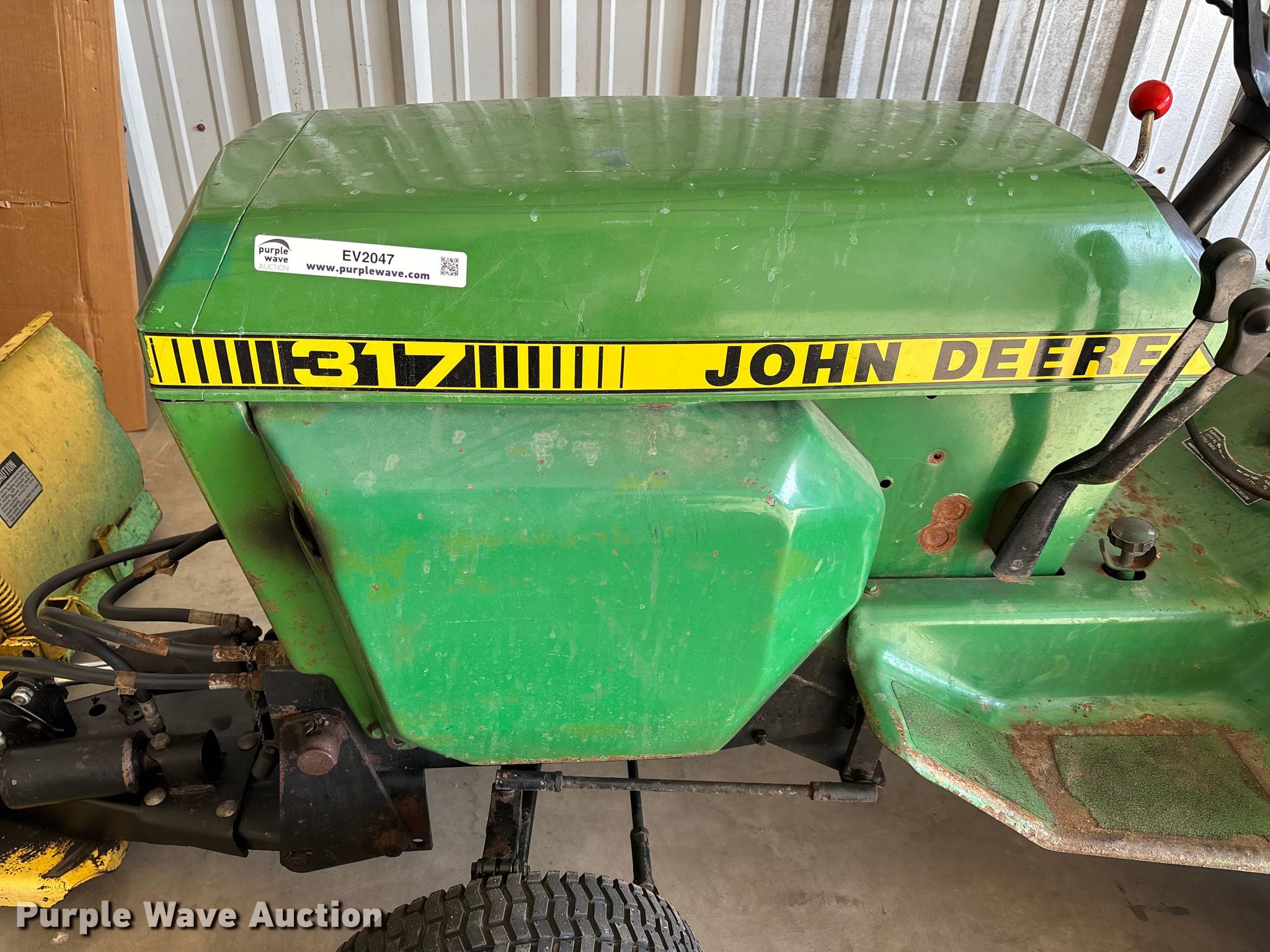 John Deere 317 lawn tractor for sale in Topeka, Kansas. Item EV2047 will sell on April 28th, 2026.