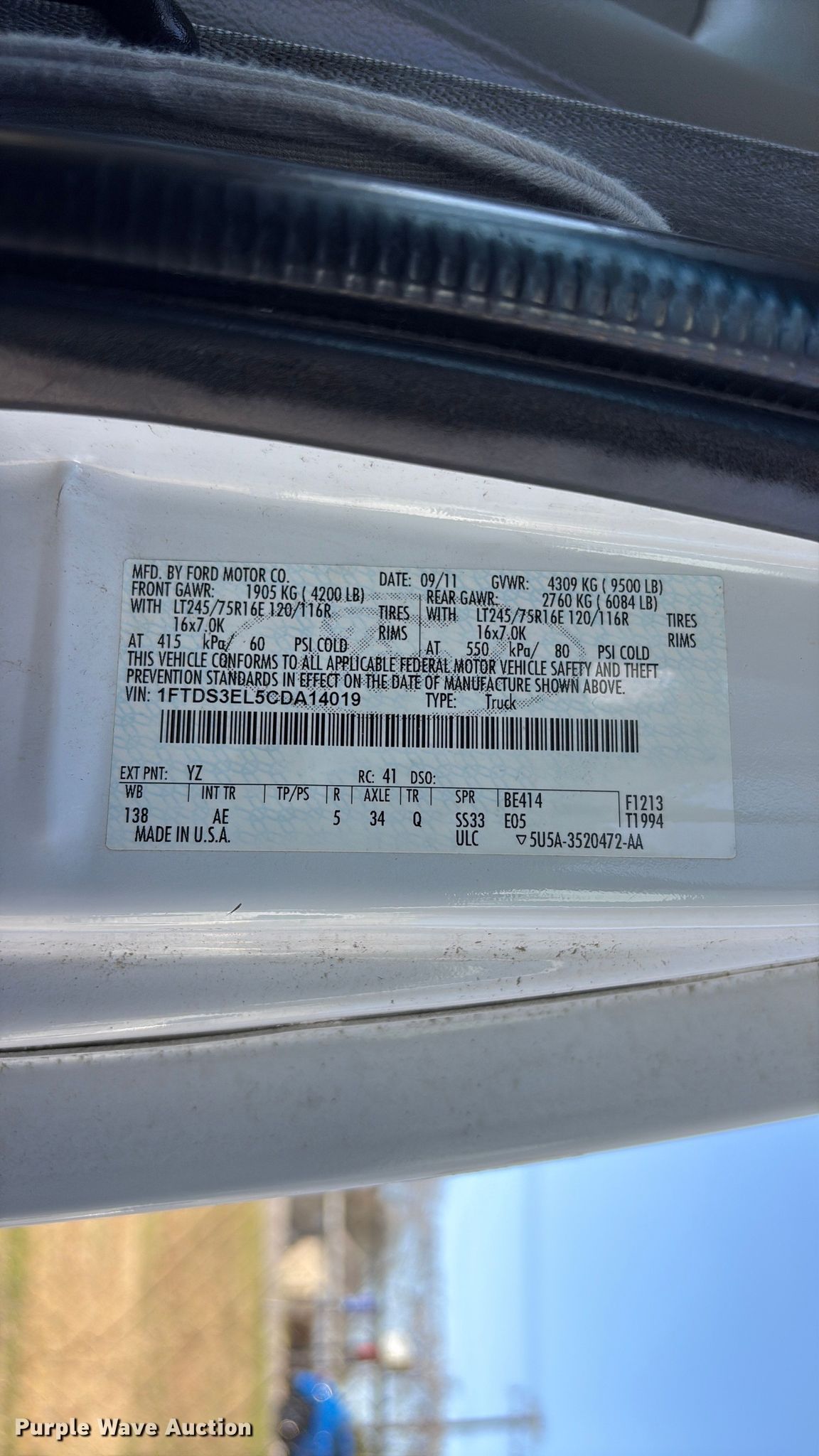 - VIN: 1FTDS3EL5CDA14019
