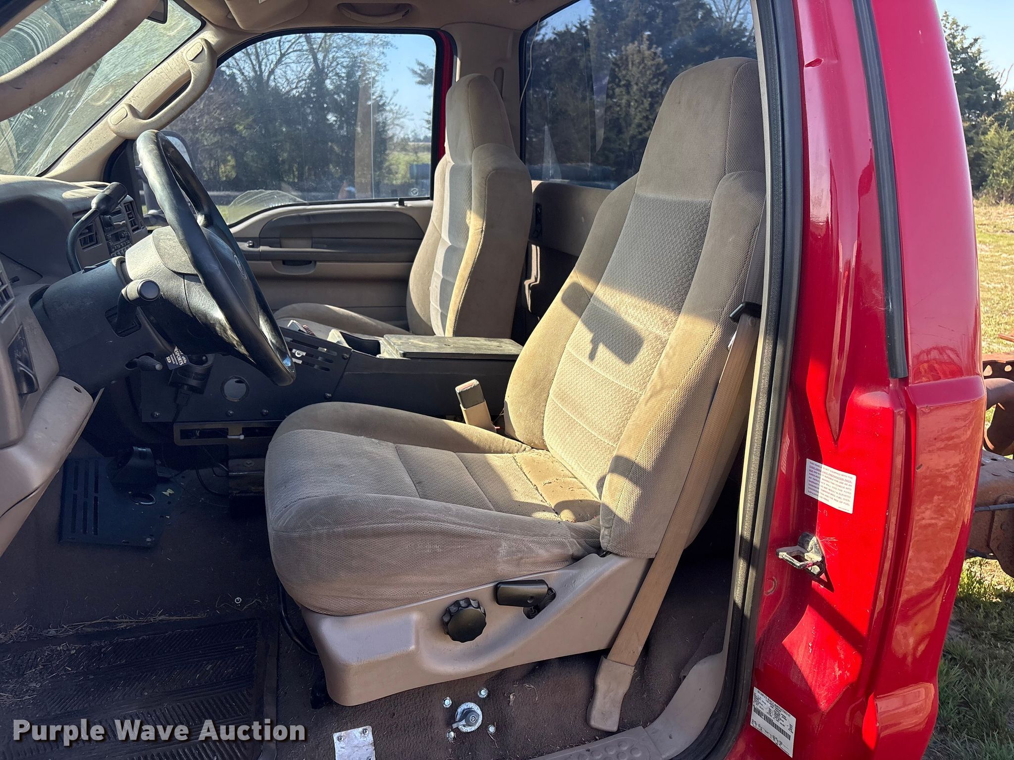 This 2003 Ford F350 Super Duty pickup truck cab and chassis will sell to the highest bidder regardless of price.