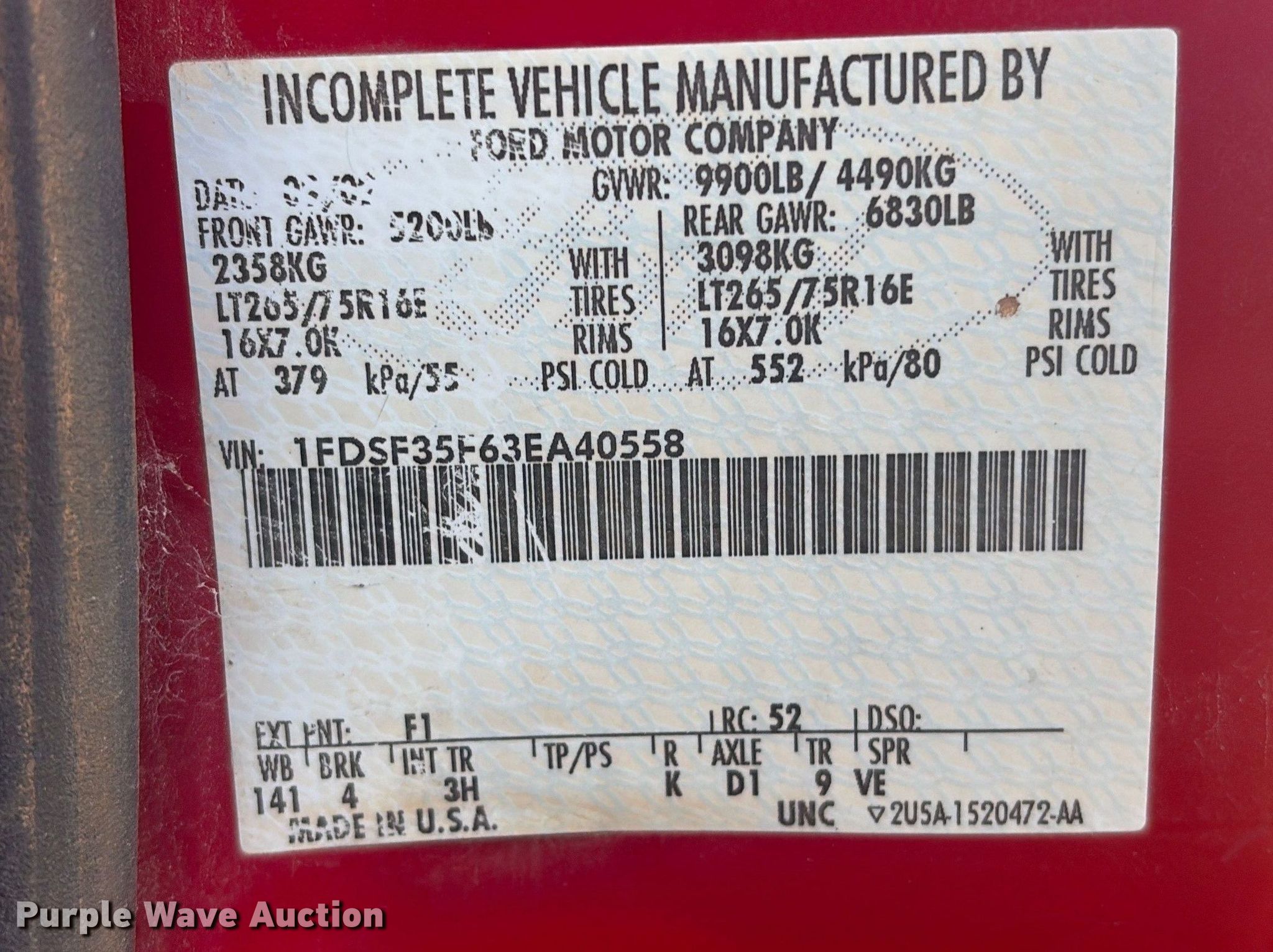 - VIN: 1FDSF35F63EA40558