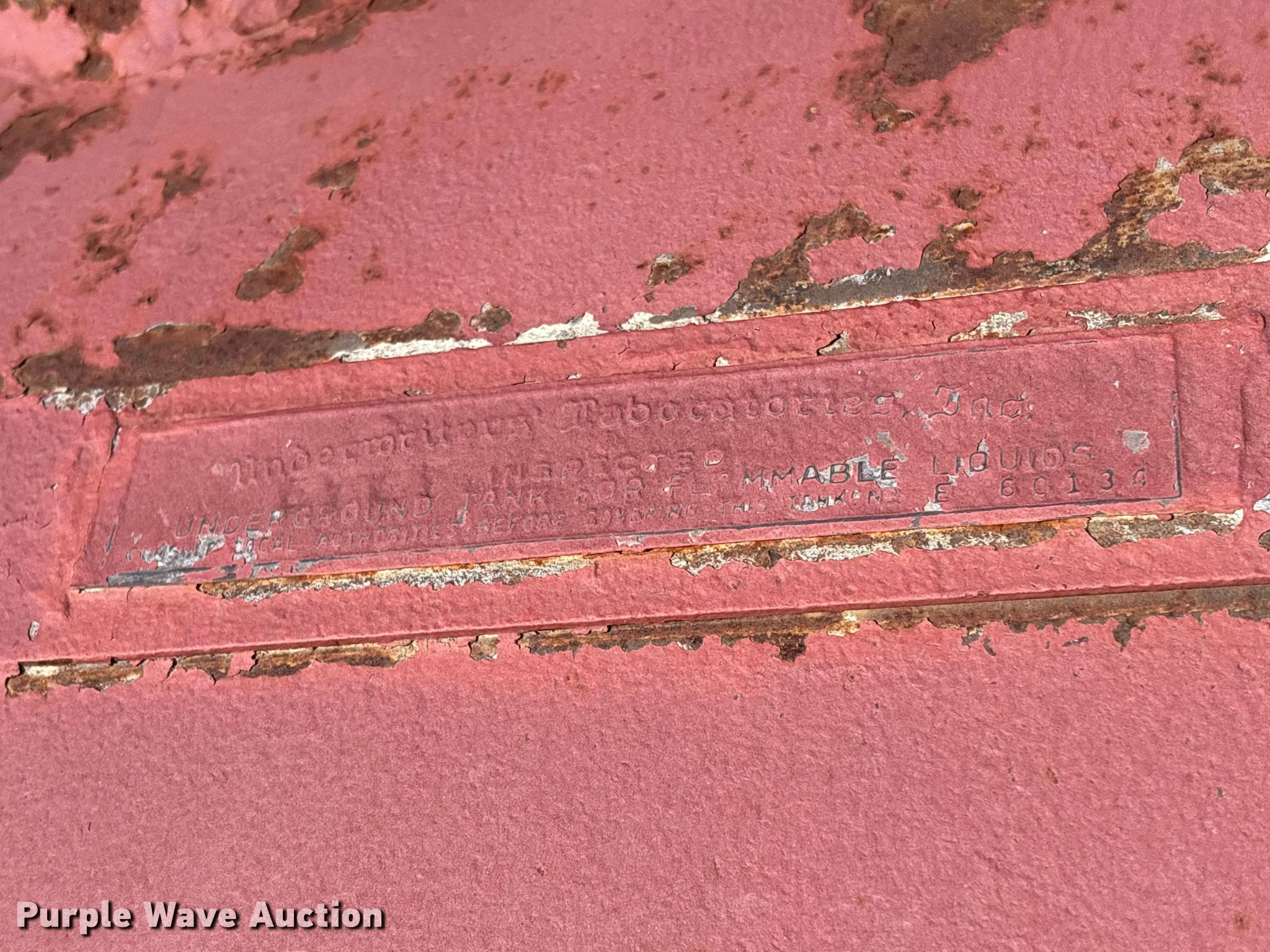 Purple Wave is selling a used Tanks in Oklahoma. This item is a Underground Laboratories Inc. tank with the following: Serial: 60134, Dimensions: 12' 2" L x 5' 4" diameter